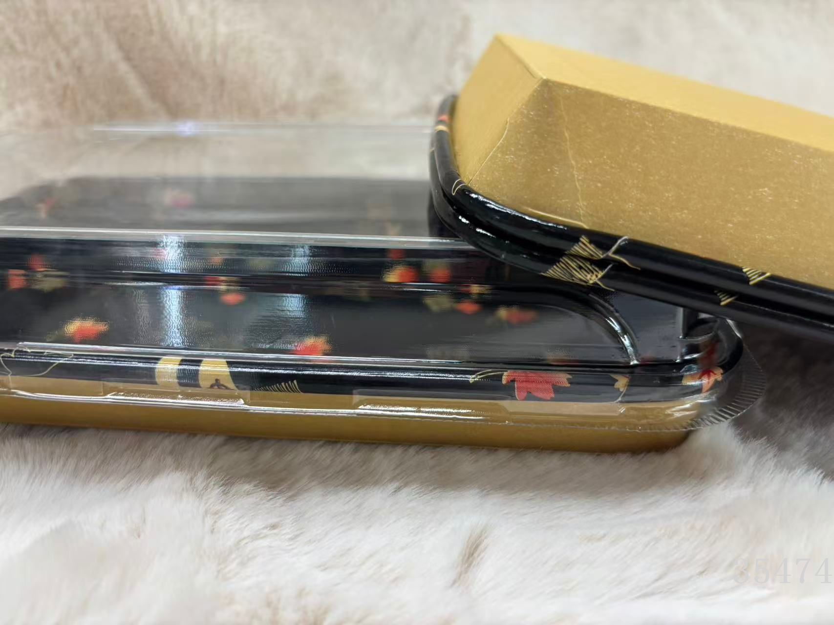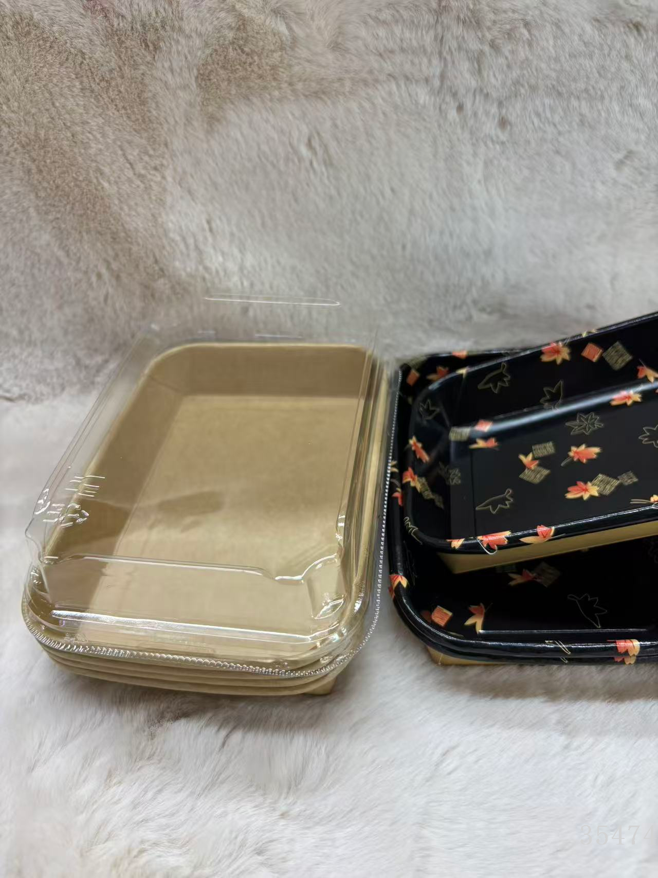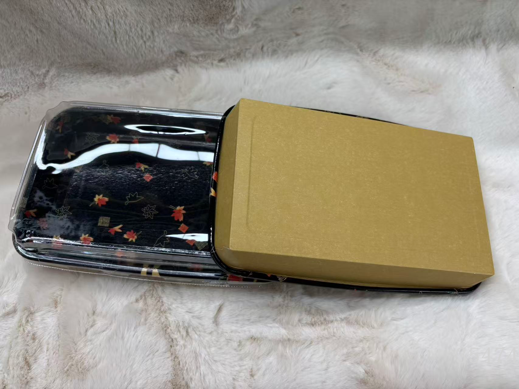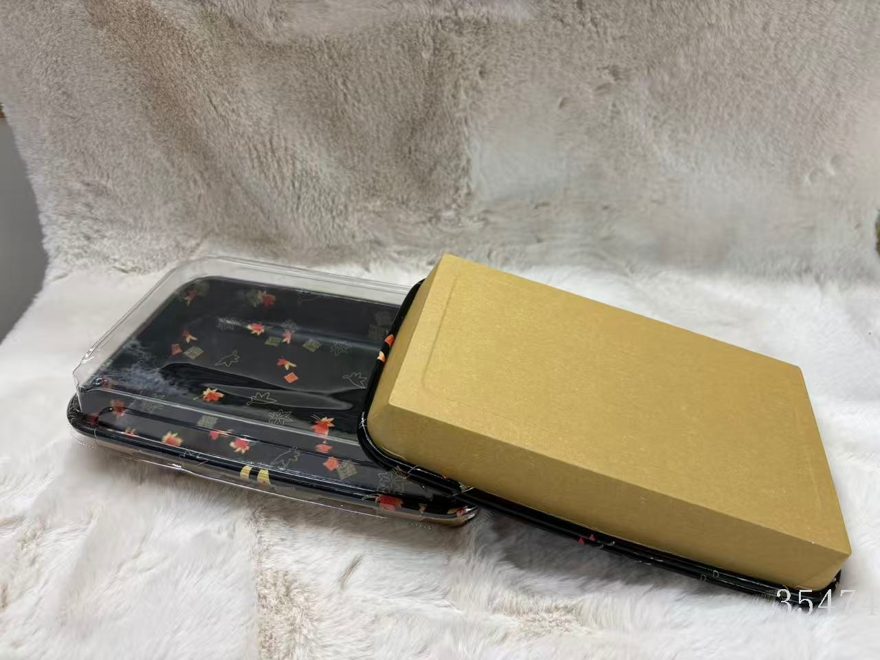 disposable sushi to-go box square plate bathy to-go box sushi slash with golden leaf sushi with lid 中文版