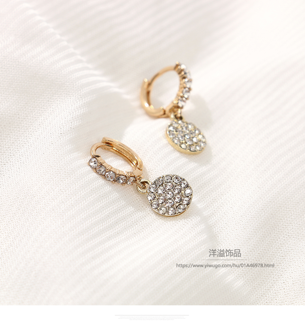 europe and america cross border advanced simple micro inlaid zircon ear hanging round full diamond ear clip earrings temperamental earrings earrings jewelry 中文版