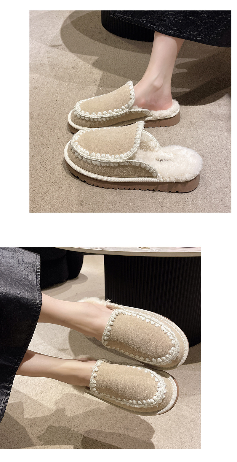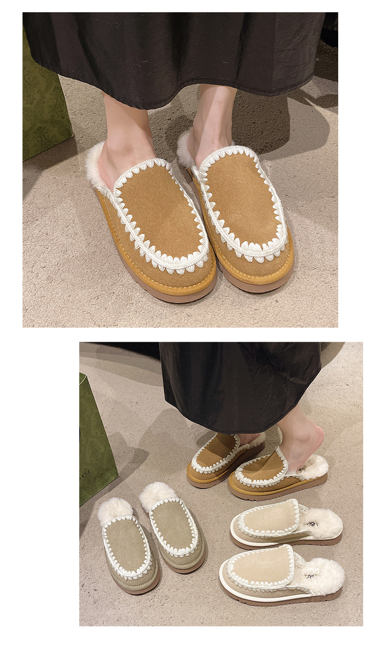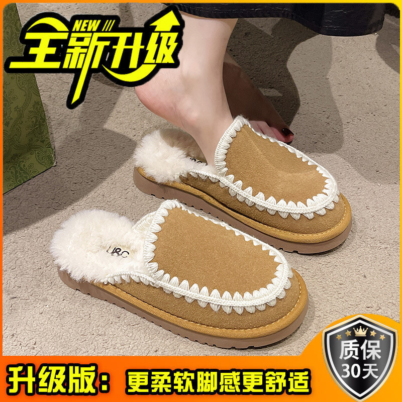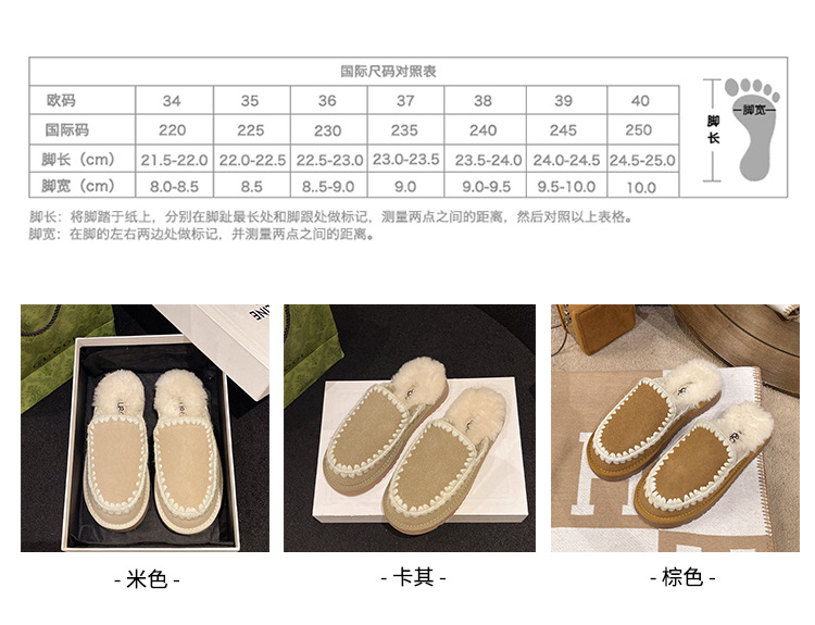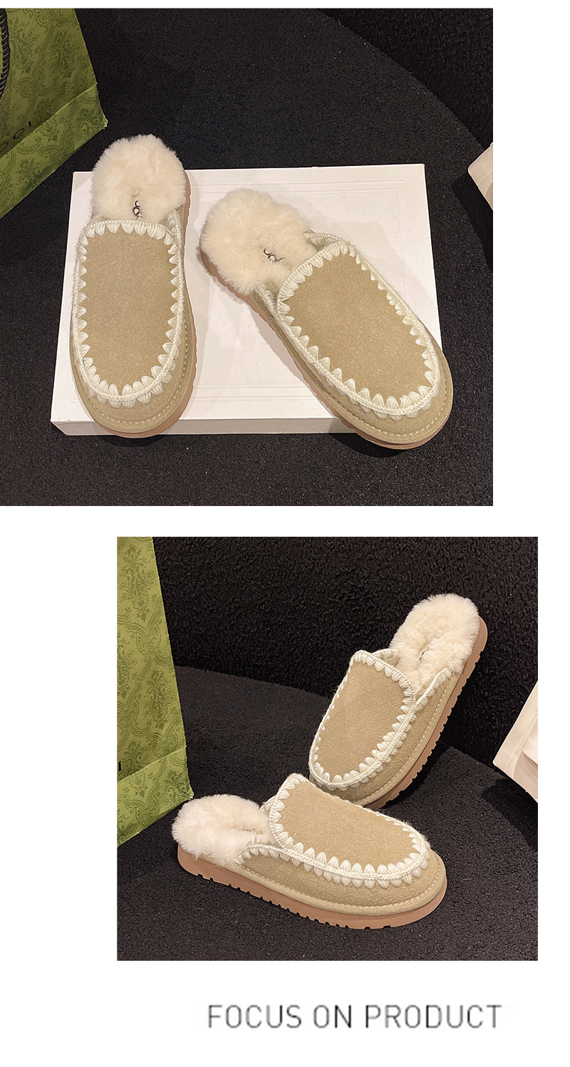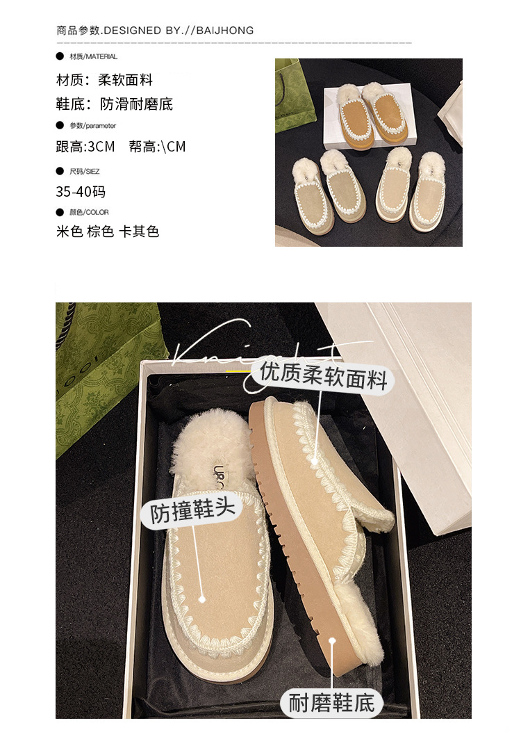 autumn and winter new closed toe wool woven fur integrated women's slippers casual lady half slippers snow boots cotton shoes 中文版