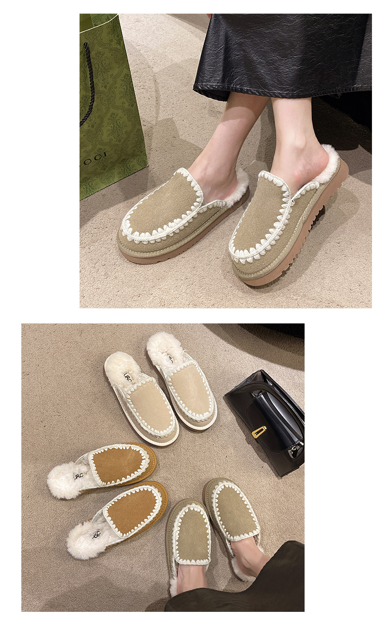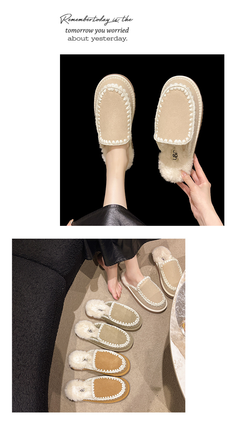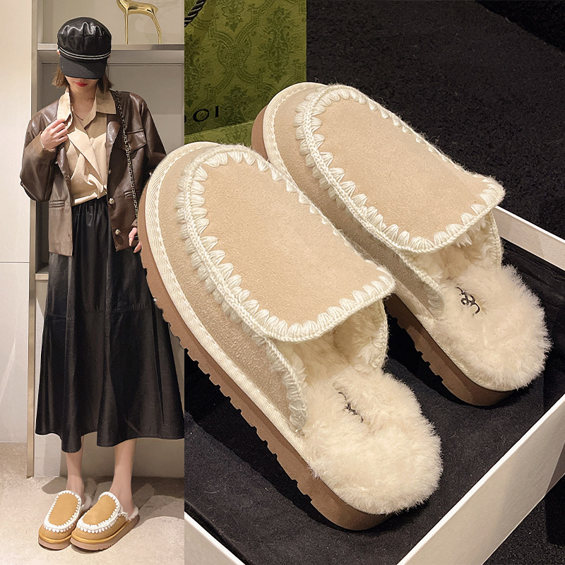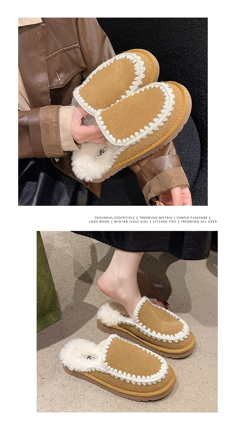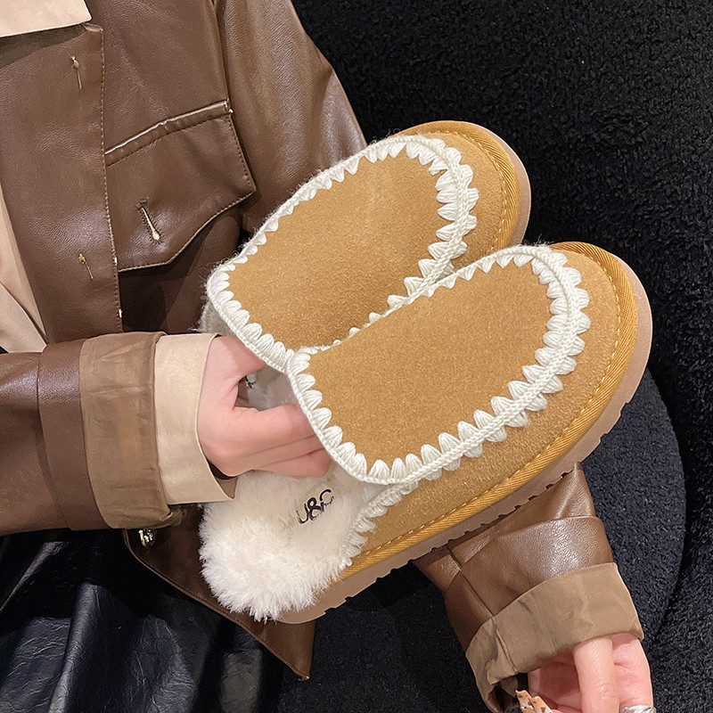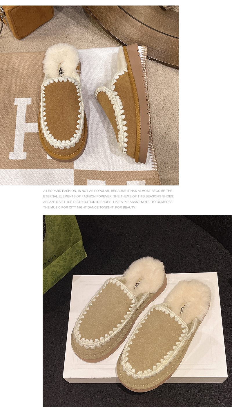 autumn and winter new closed toe wool woven fur integrated women's slippers casual lady half slippers snow boots cotton shoes 中文版