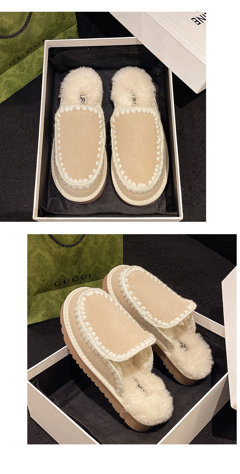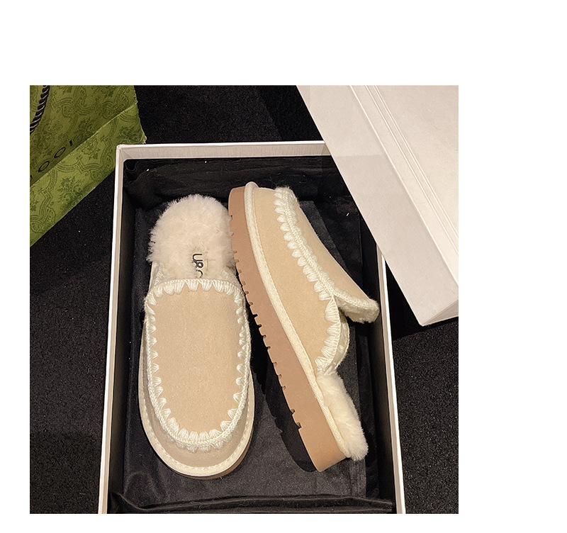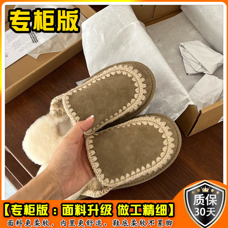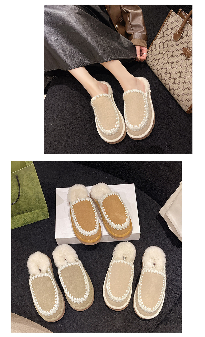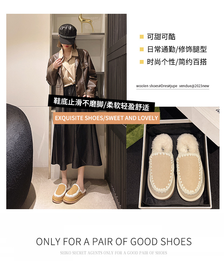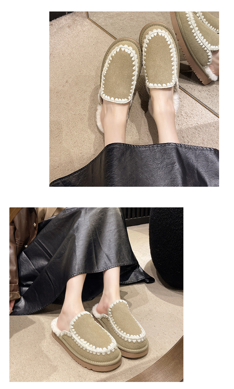 autumn and winter new closed toe wool woven fur integrated women's slippers casual lady half slippers snow boots cotton shoes 中文版