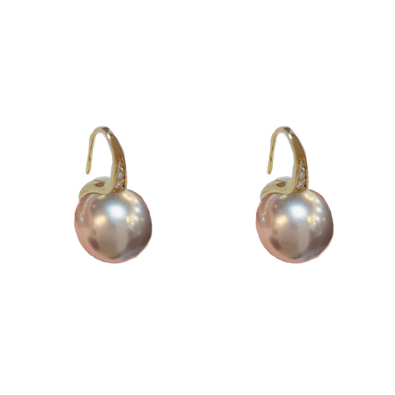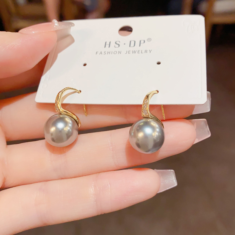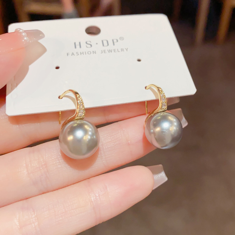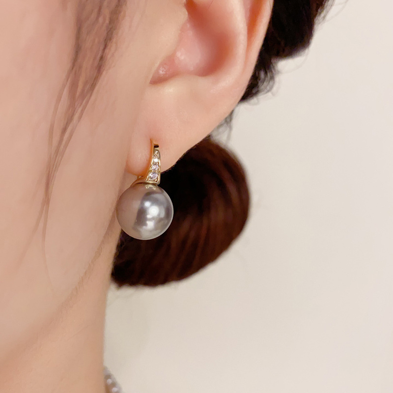 zircon high heels silver gray pearl ear hook (thick real gold plating)