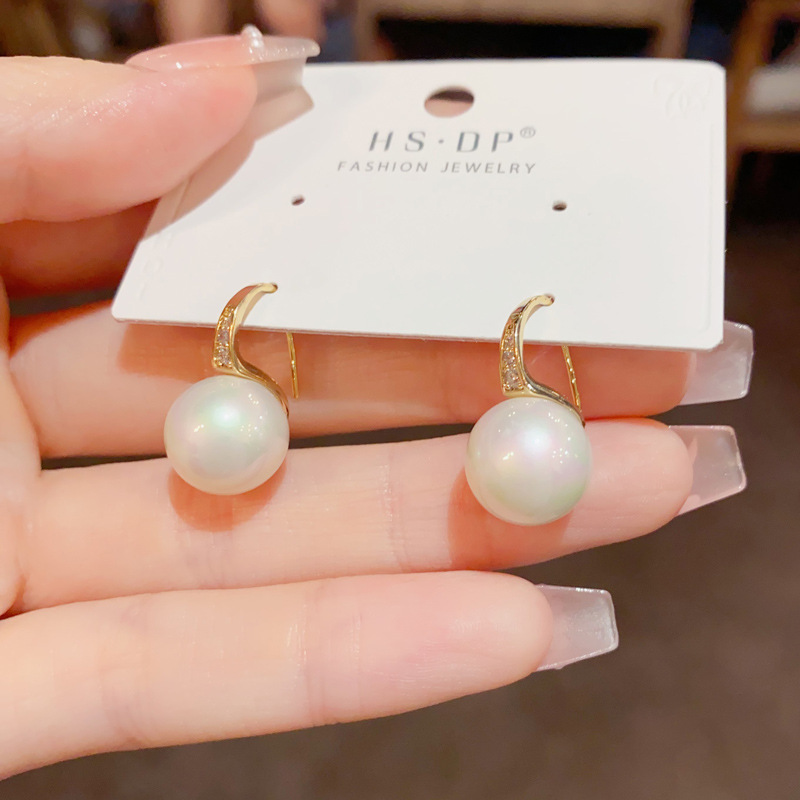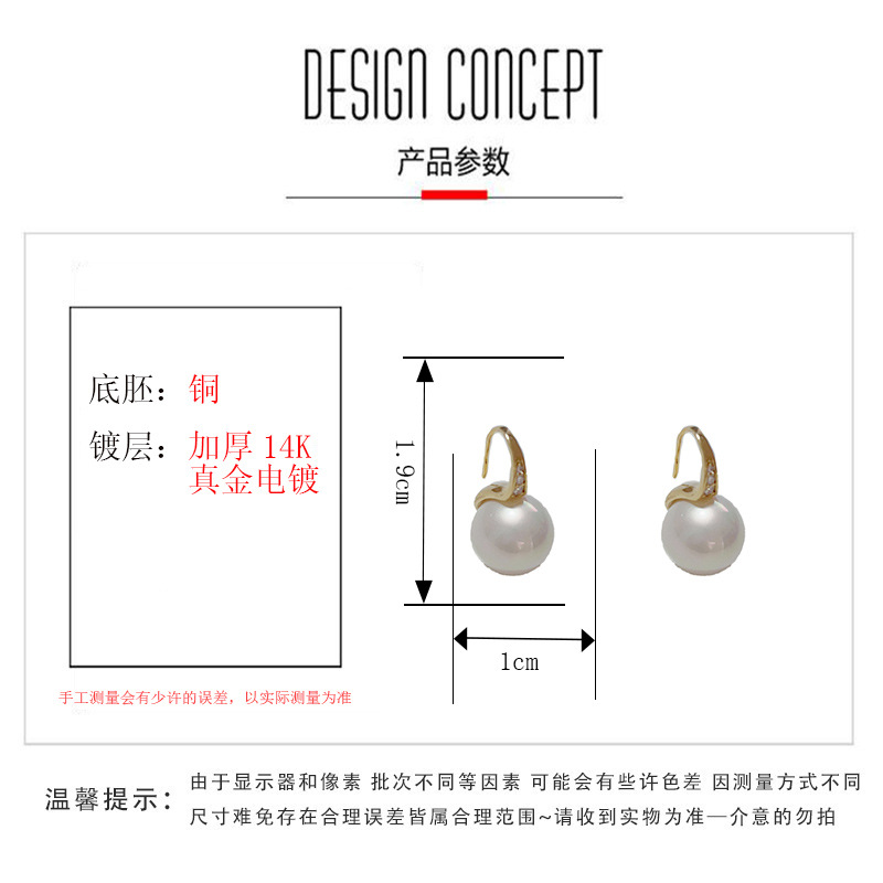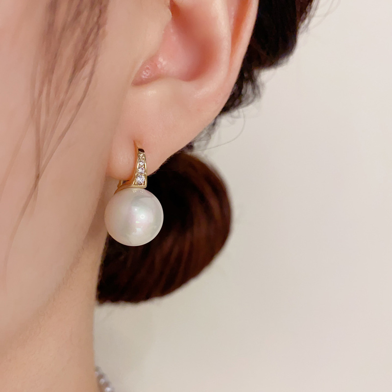 zircon high heels white pearl ear hook (thick real gold plating)