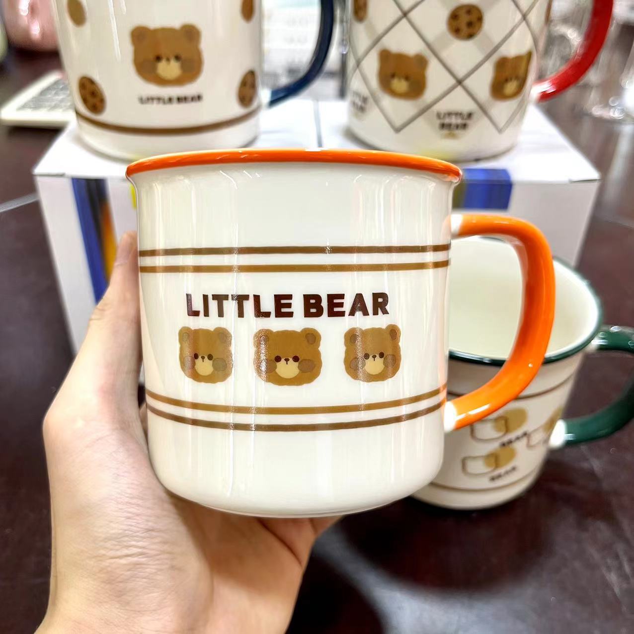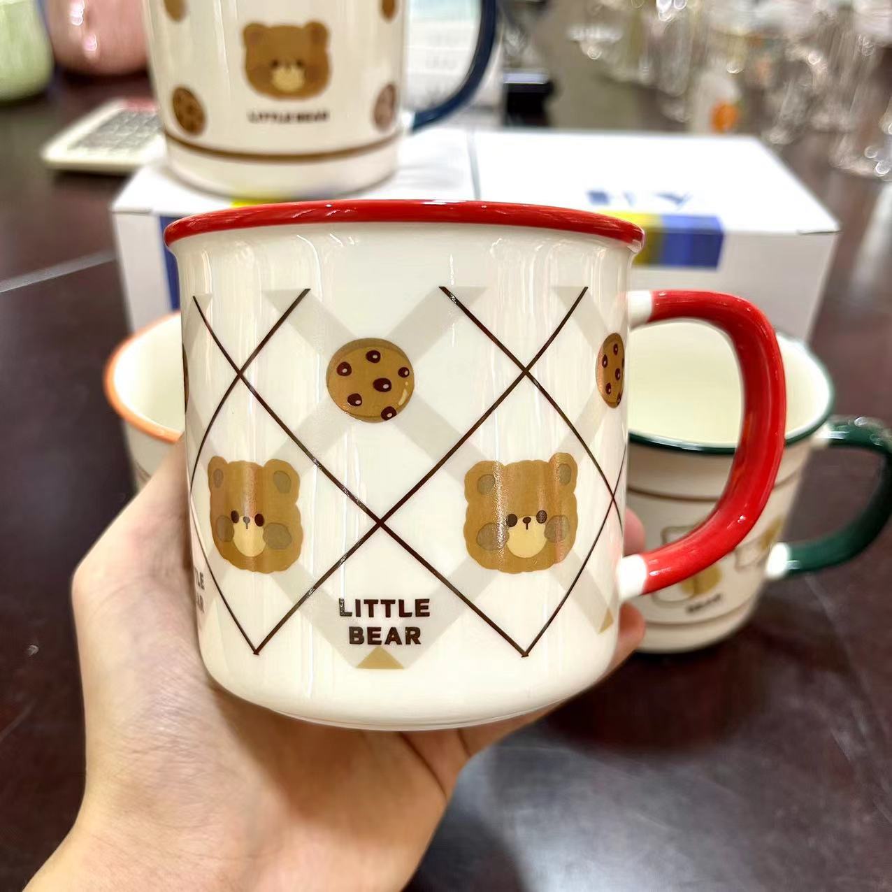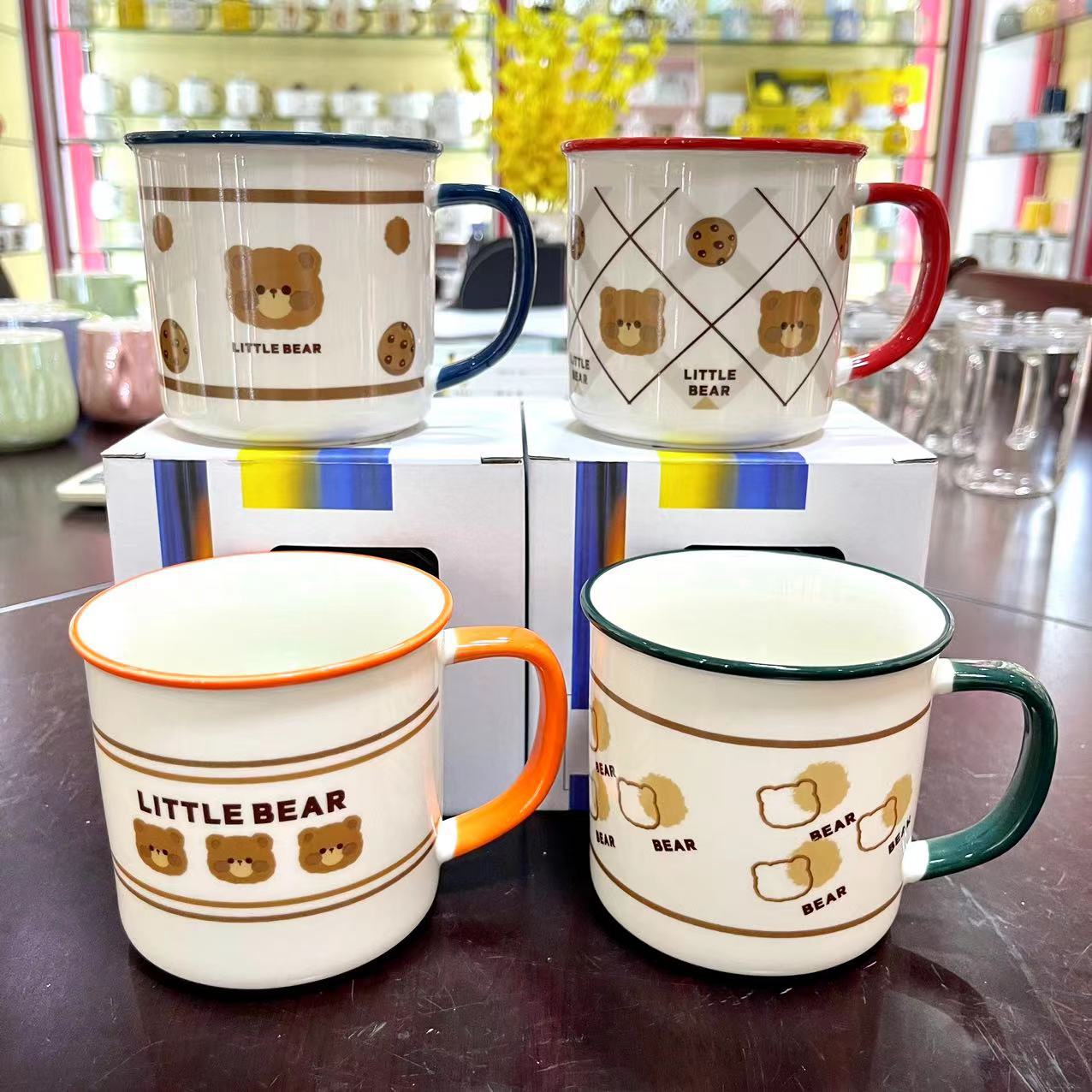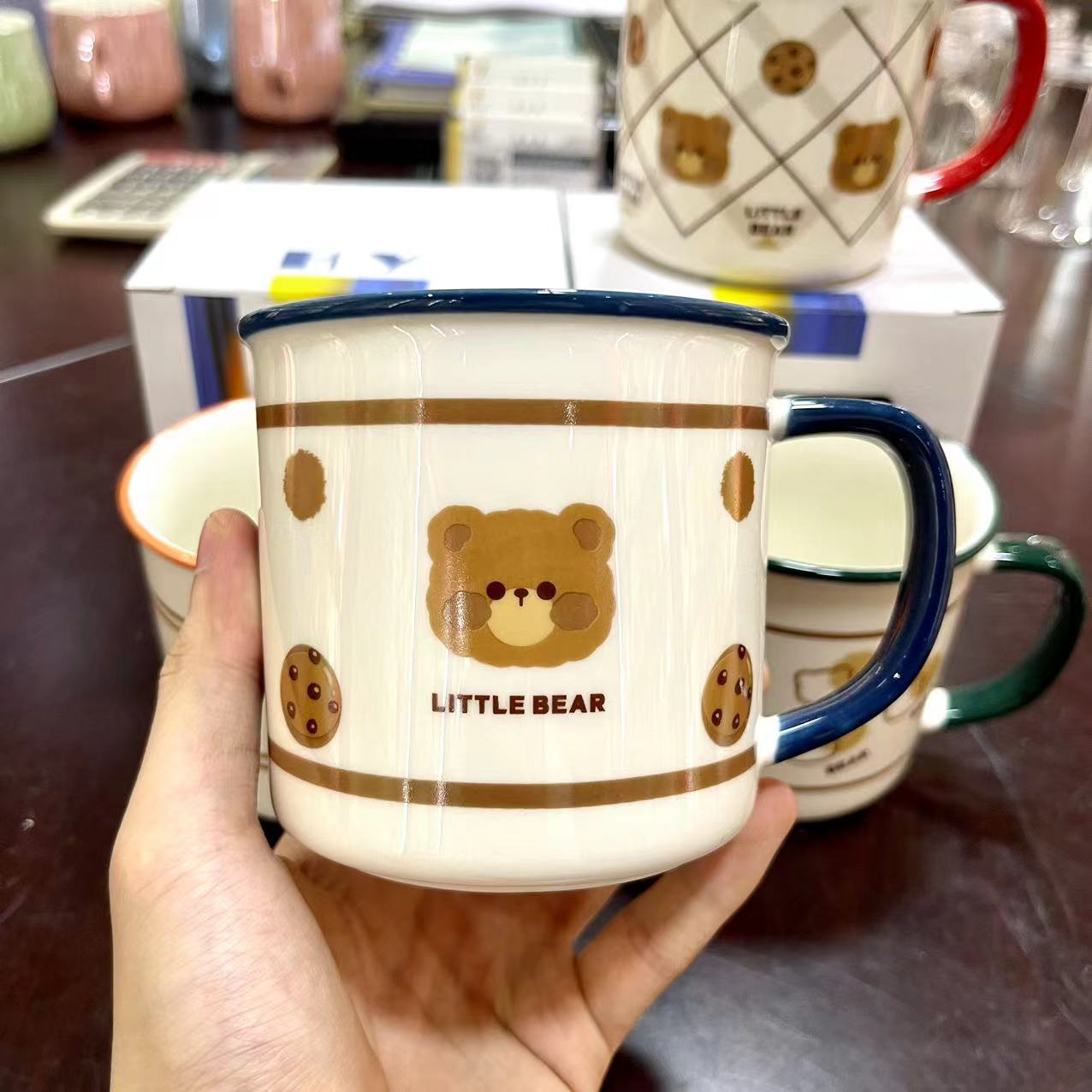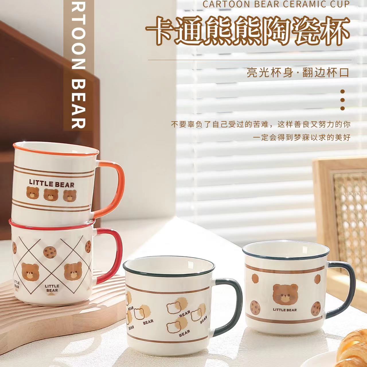 creative bear mug cute cartoon ceramic cup good-looking student water cup couple home coffee cup 中文版
