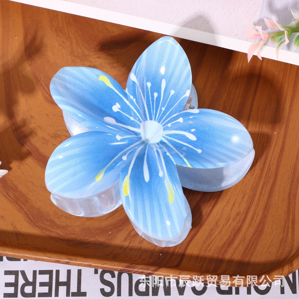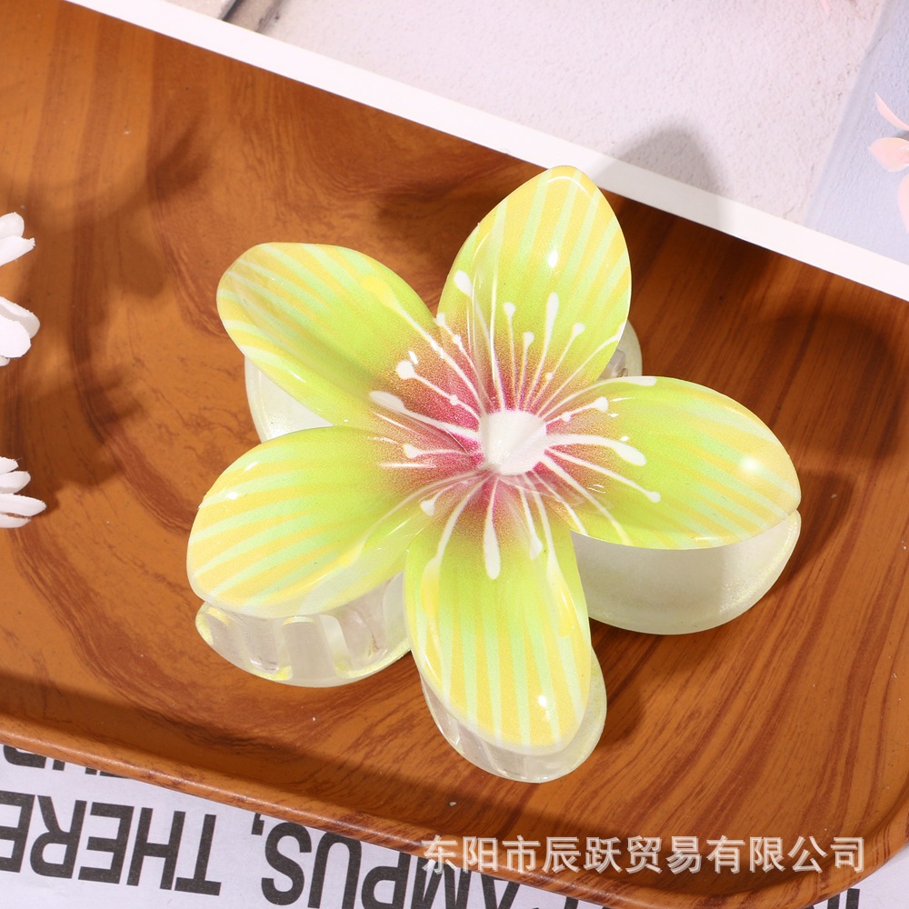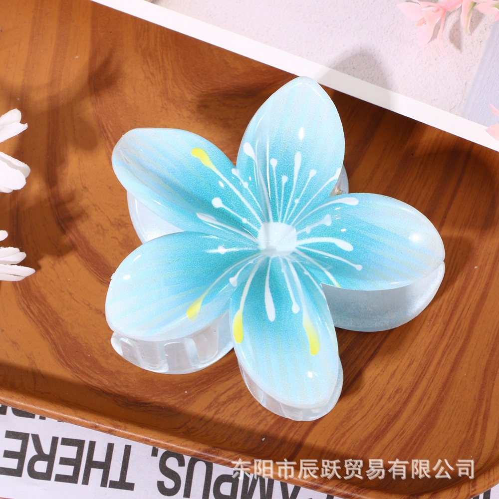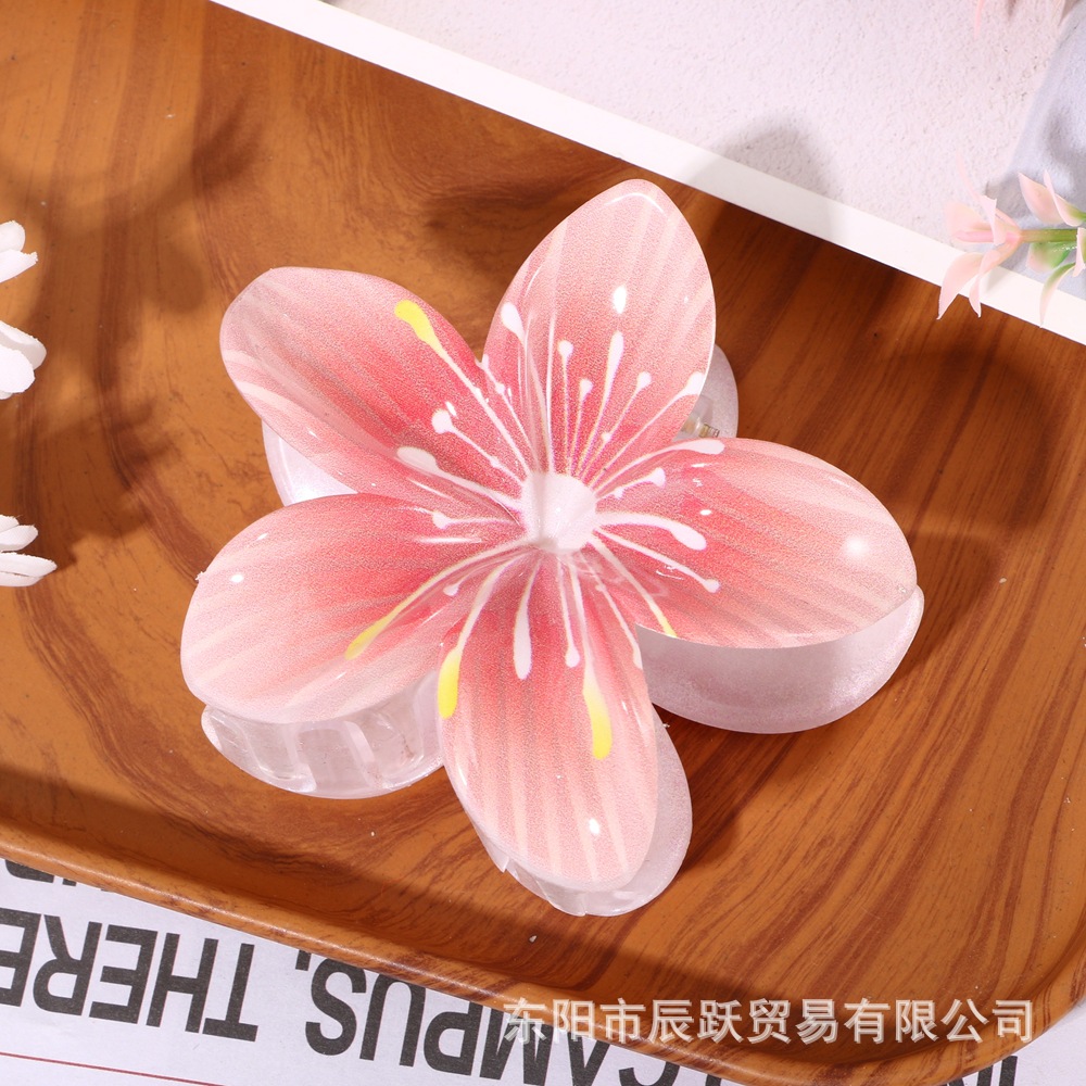 amazon hot selling uv printing plumeria rubra flower stamen grip fashion all-match back head updo big shark clip hair accessories