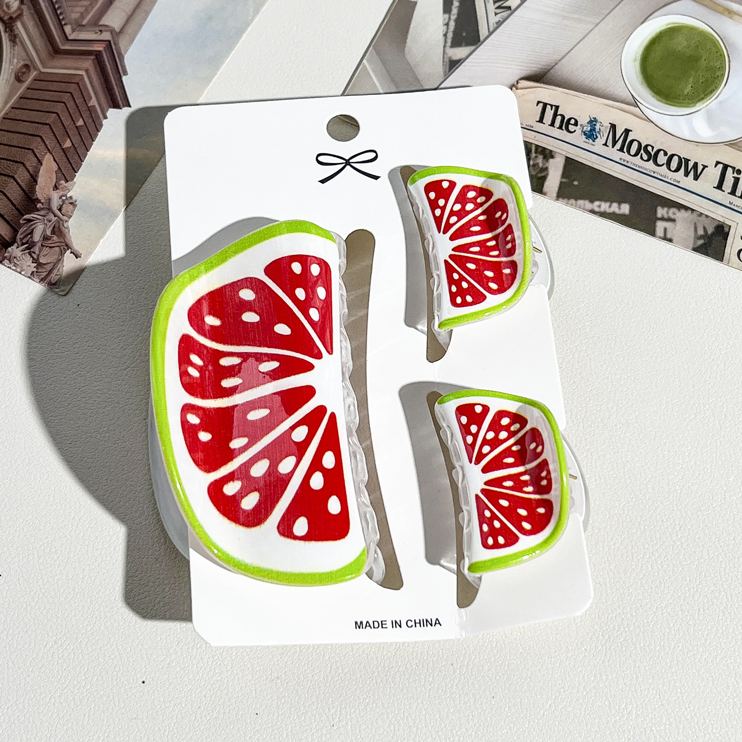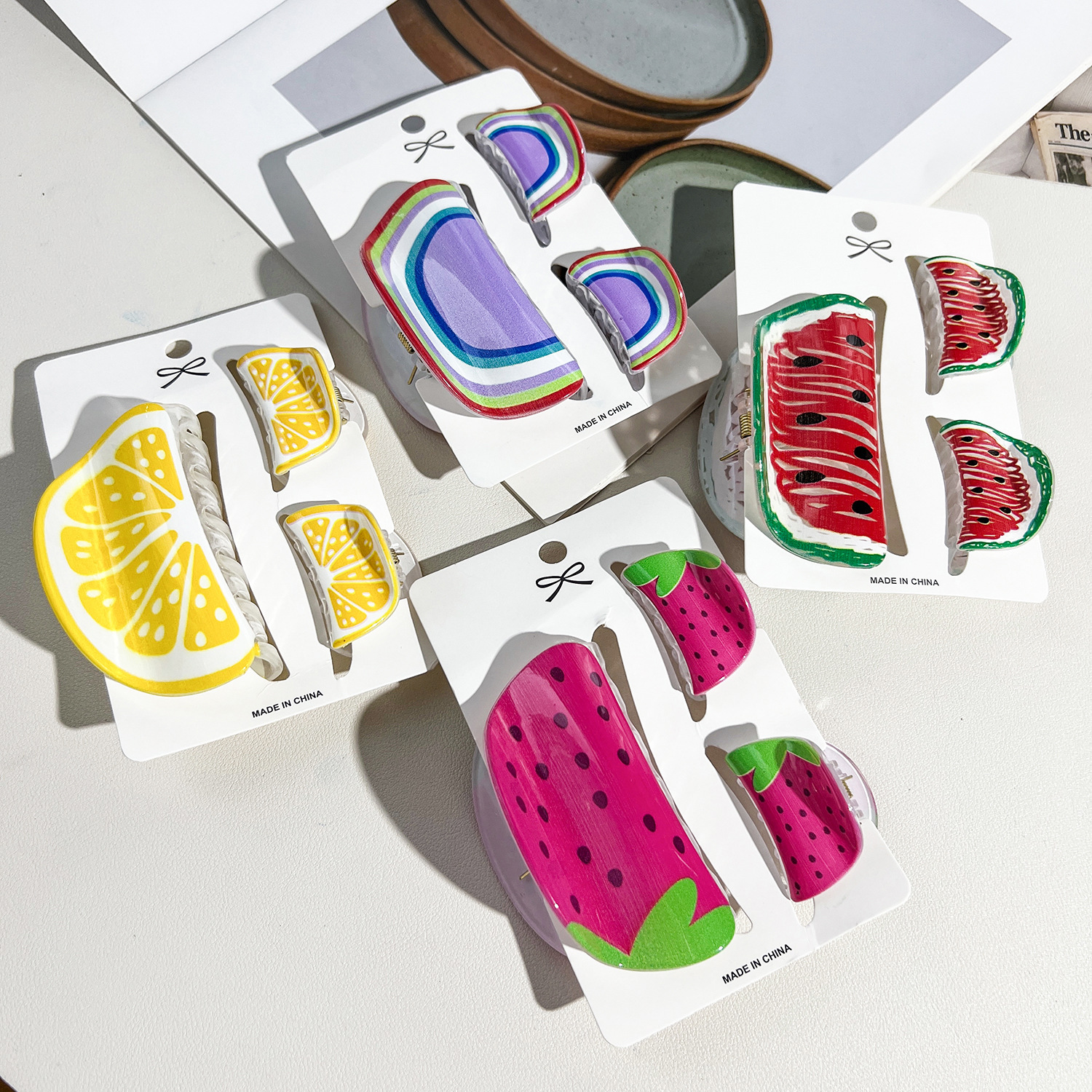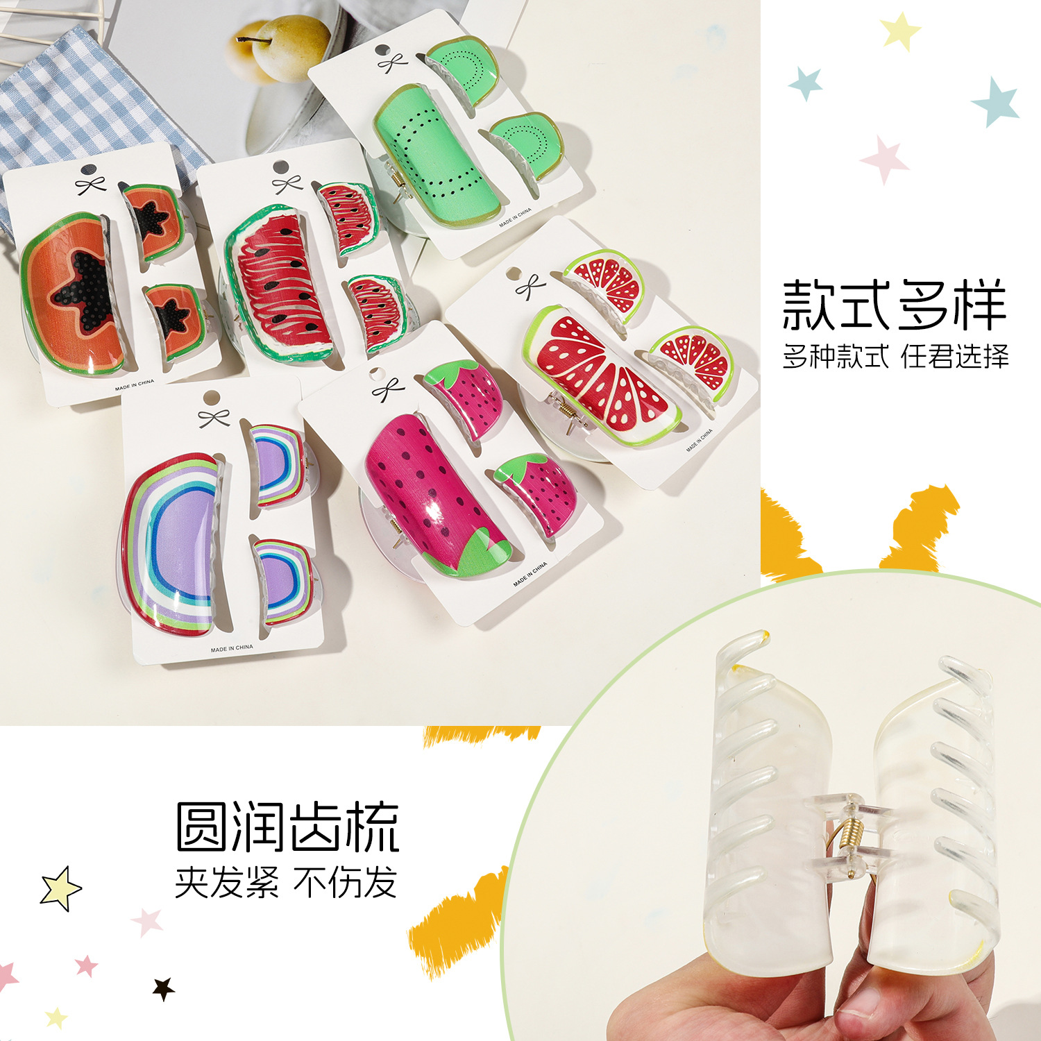 summer new fruit barrettes women's cute watermelon avocado set grip back head updo shark clip hair accessories