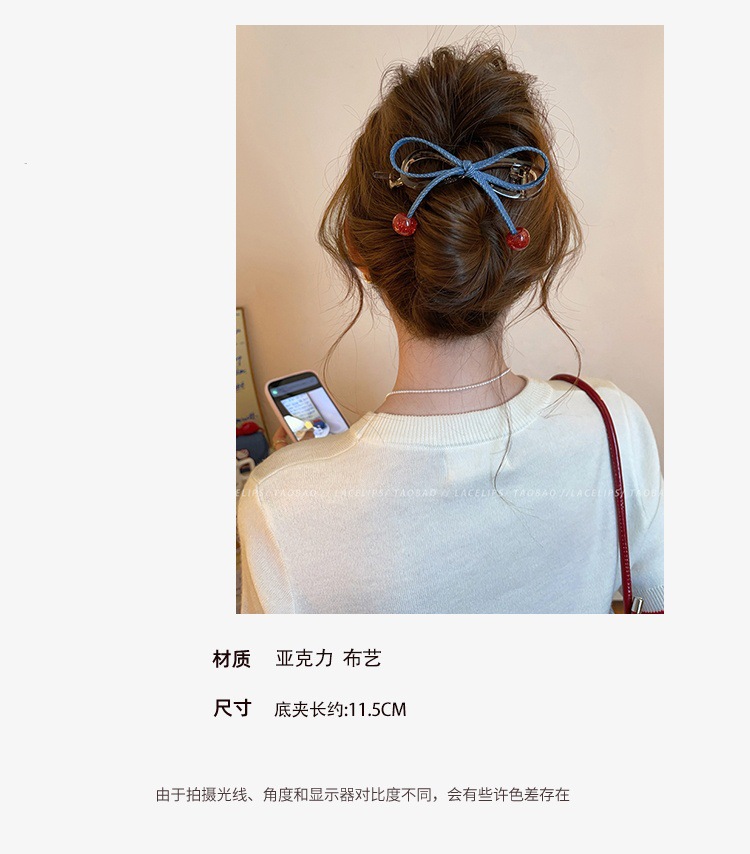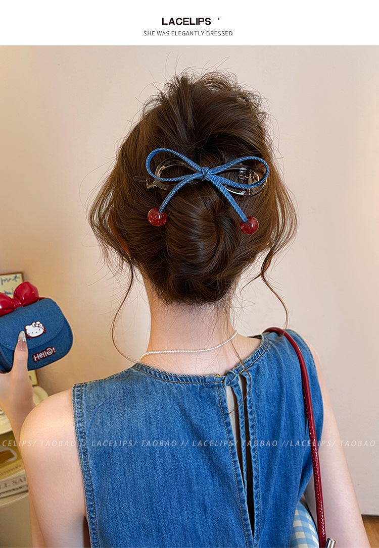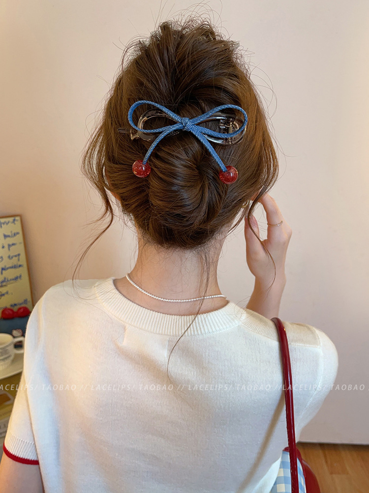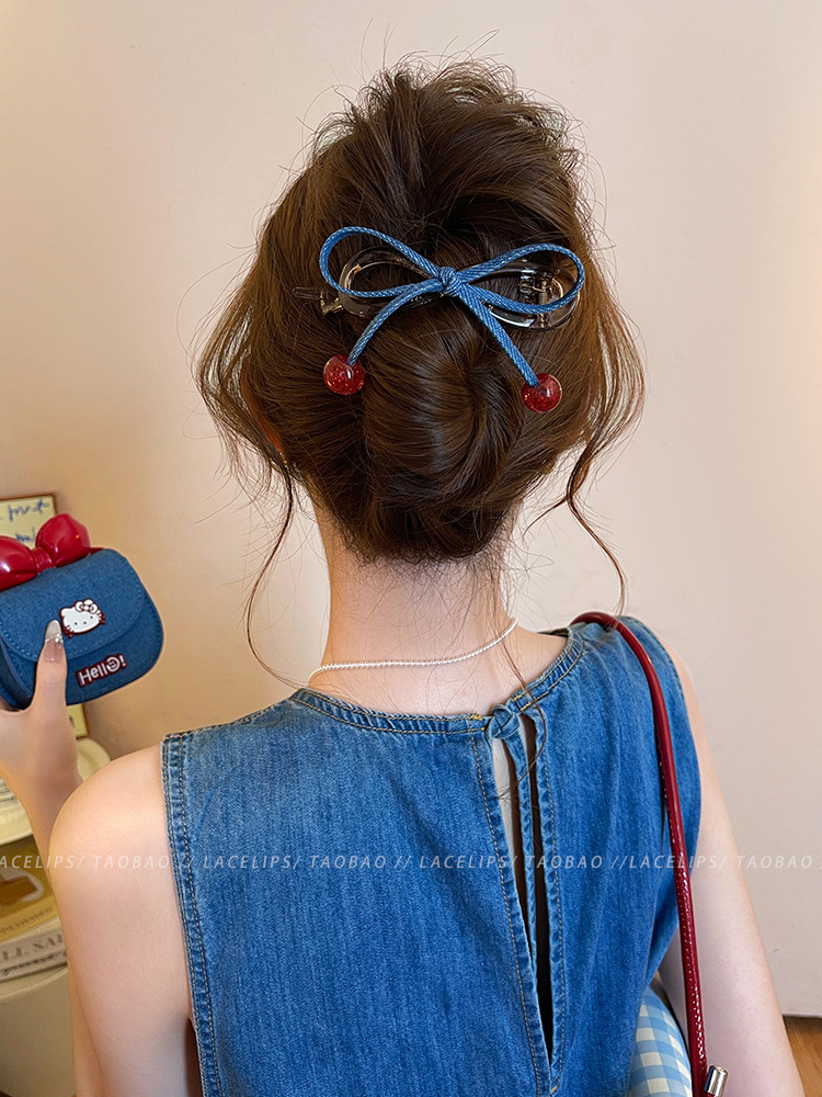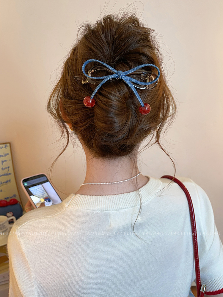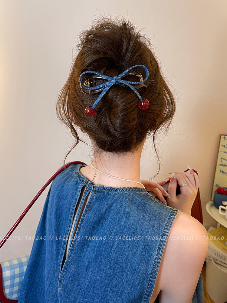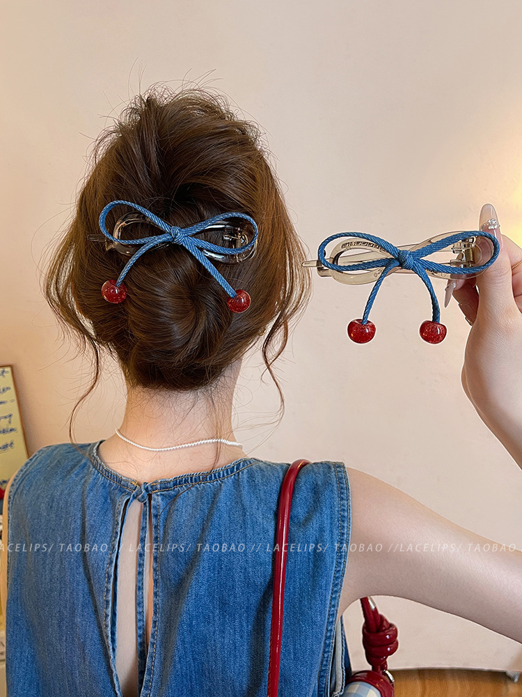 cherry red bead ~ banana clip denim bow word grip women's high sense hair clip 2025 new hair accessories