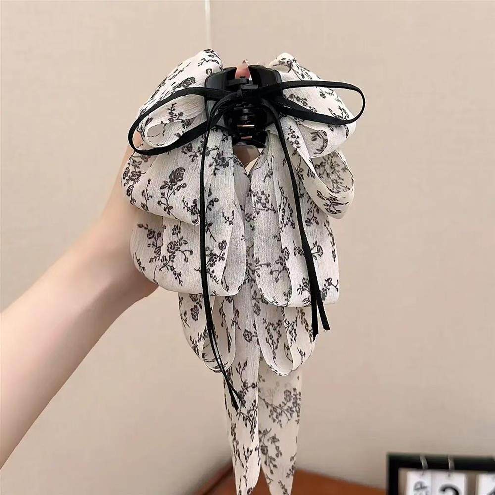 floral ribbon grip female 2025 new bow temperament loose clip ponytail clip head updo shark clip