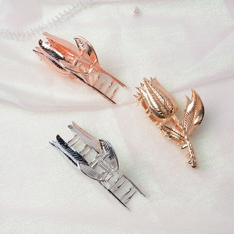 cross-border sweet tulip hair barrettes temperament wild large updo alloy grip back head shark clip female 中文版