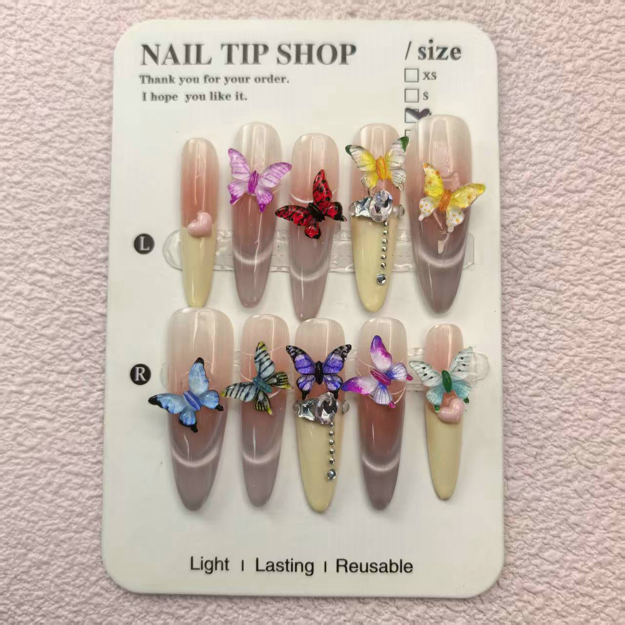 尺寸灵活:树脂蝴蝶结可制成微型款式(适合短甲或单指点缀)或夸张造型(适合艺术甲),满足从日常到宴会的全场景需求。