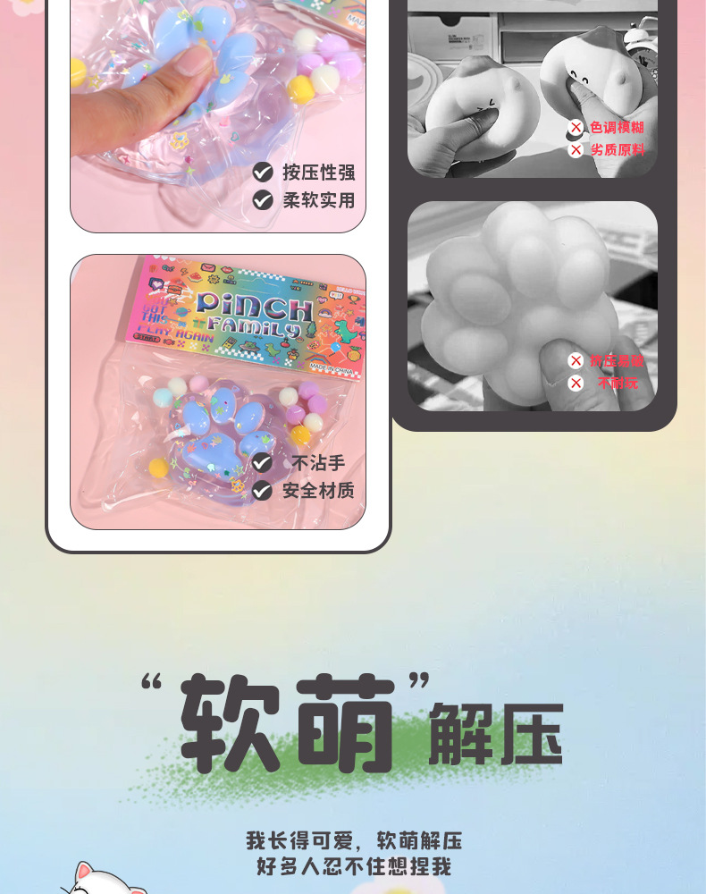 xiaohongshu cat's paw tpr super soft pinch music blind box blind bag pinch decompression toy transparent cat's paw useful tool for pressure reduction 中文版
