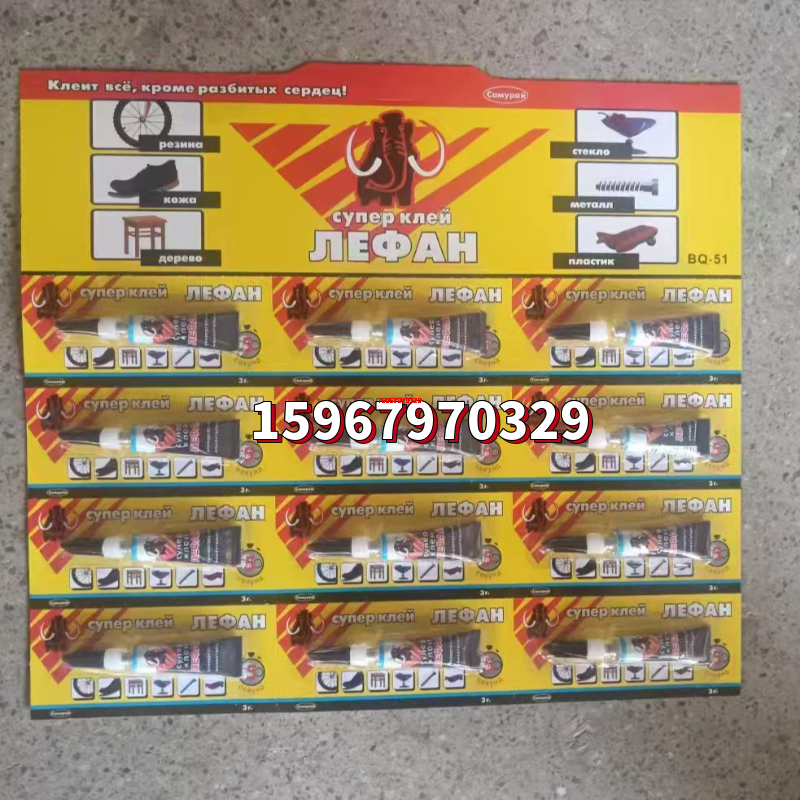foreign trade hot selling russian yellow card elephant aluminum tube 12 pcs suction card glue 3g original glue strong instant glue 中文版