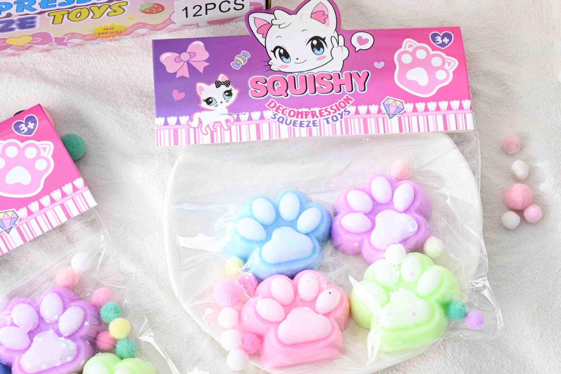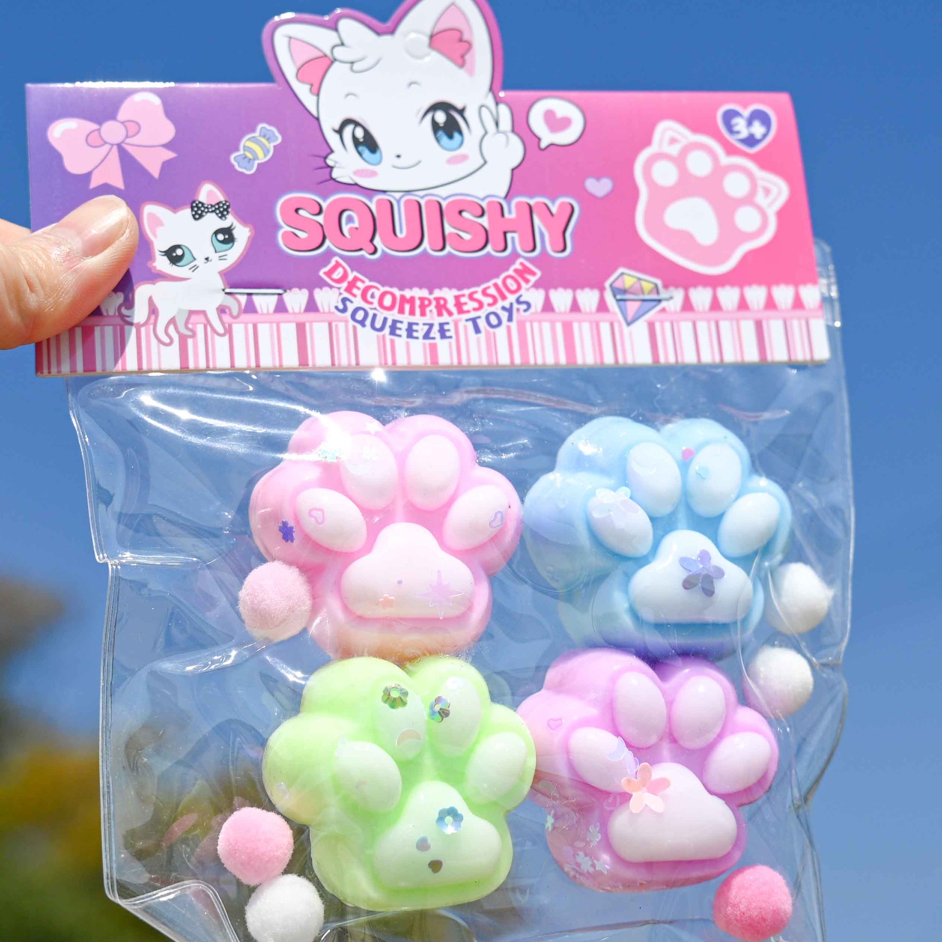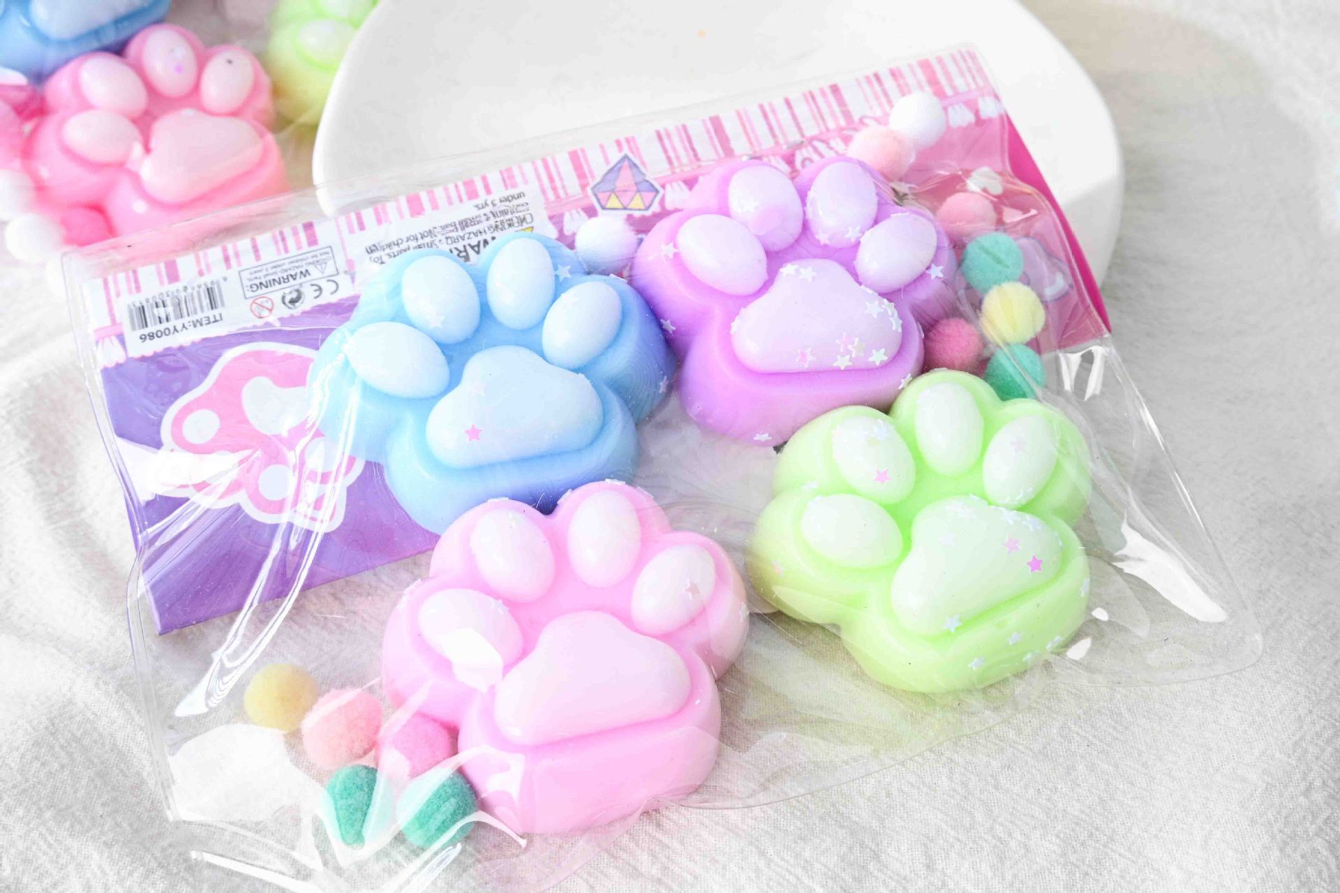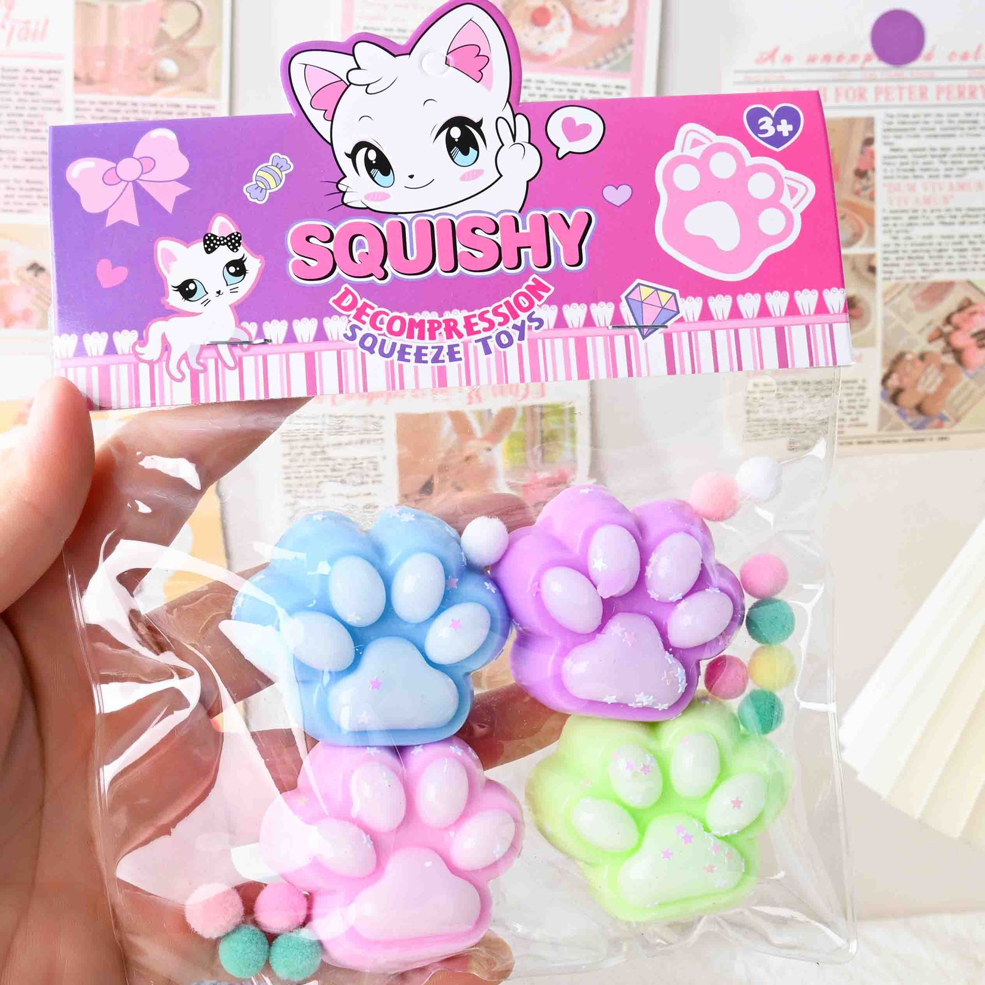 tiktok hot sale simulation four-piece cat's paw squeezing toy tpr soft stress relief decompression toys for children wholesale 中文版