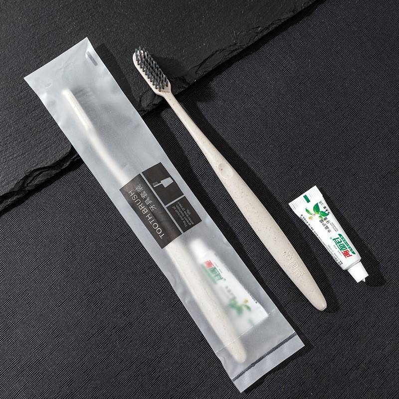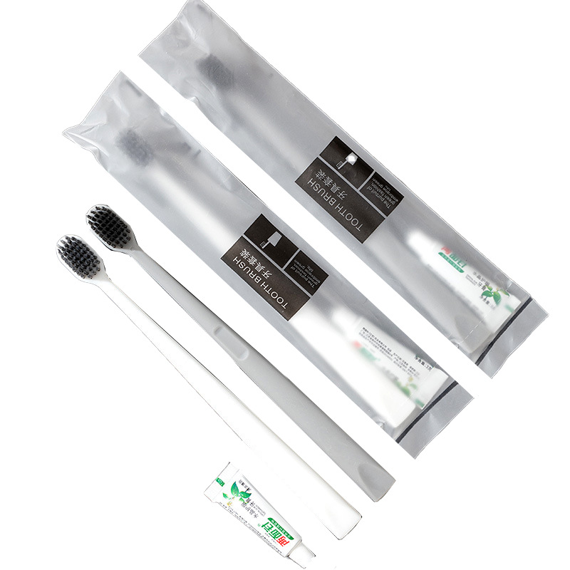 [tooth-cleaners] pp gray toothbrush handle bamboo charcoal bristle flat tail toothbrush +3g toothpaste
