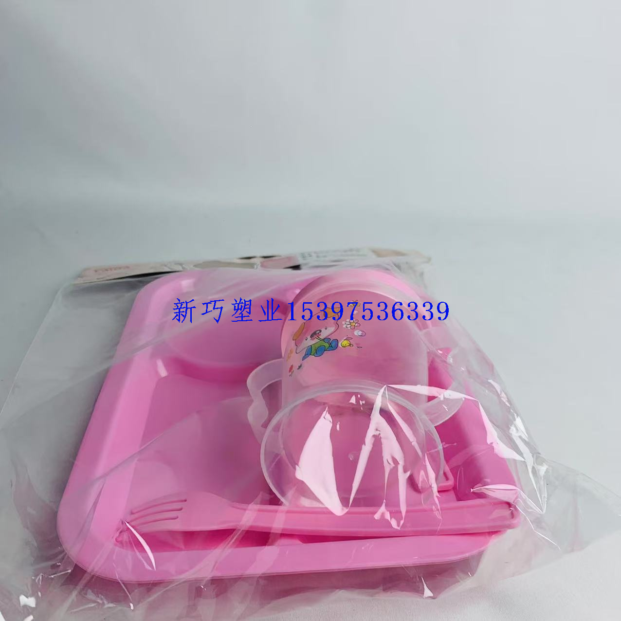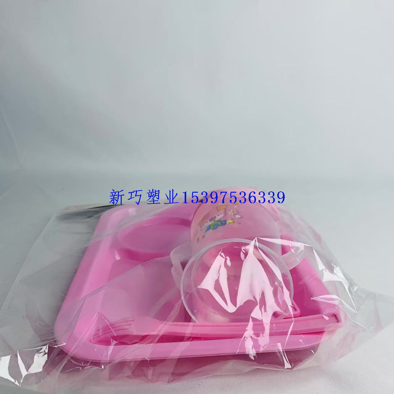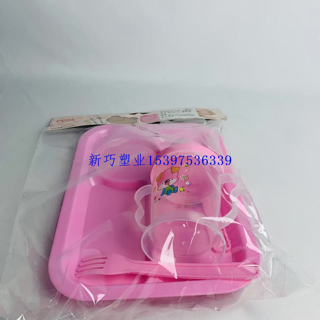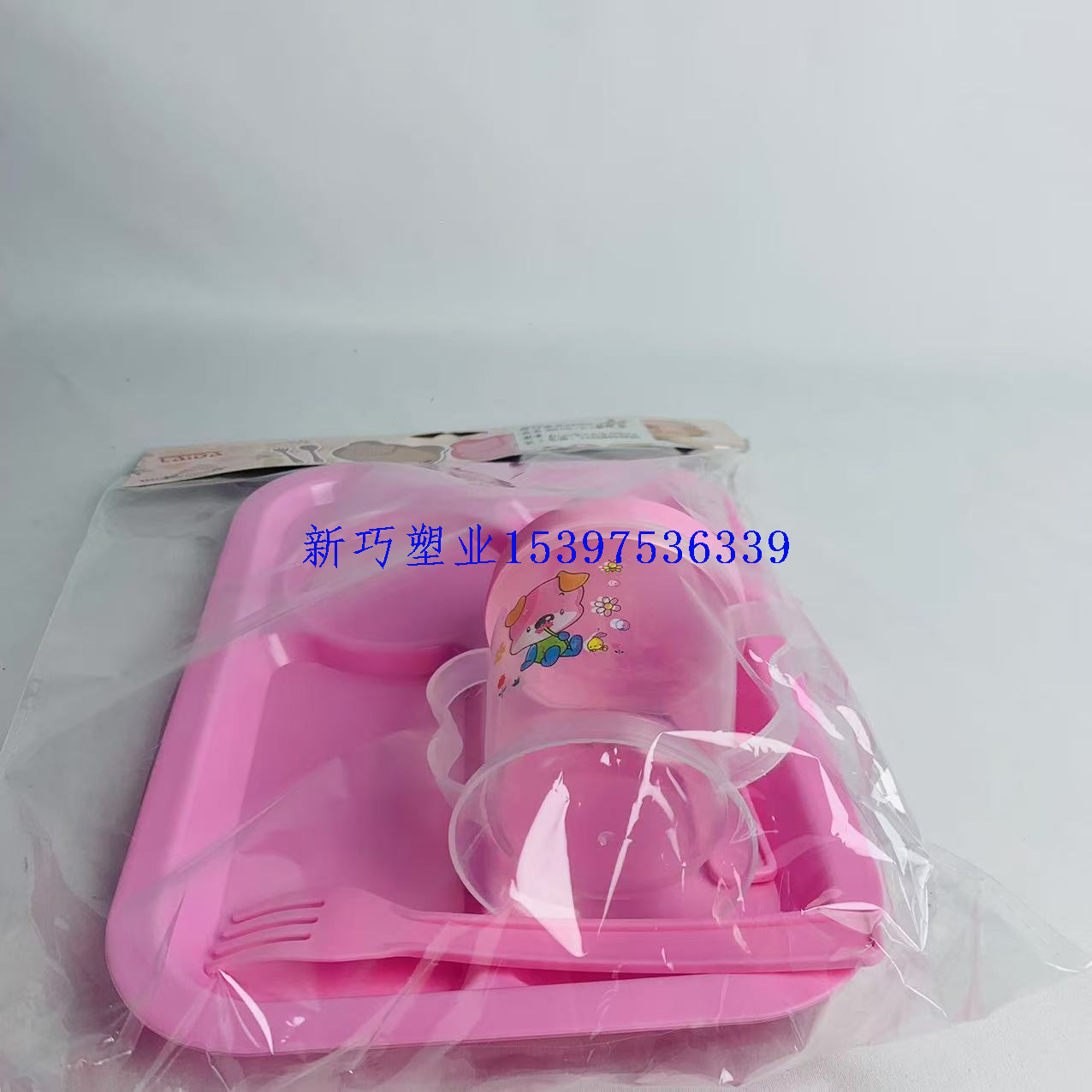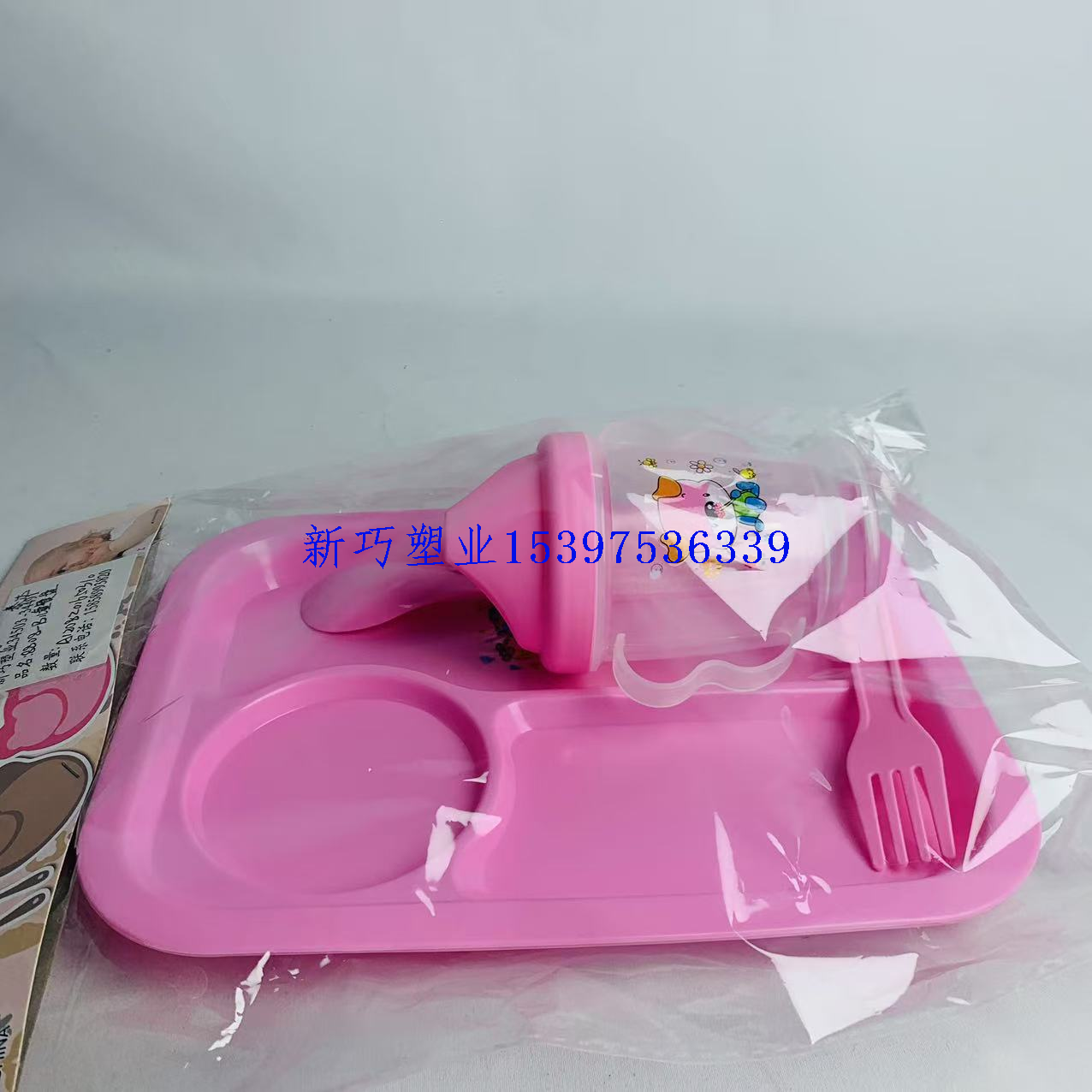 children's suit plate with drinking cup grid plate fork baby baby bowl household eating plate kindergarten plate 中文版