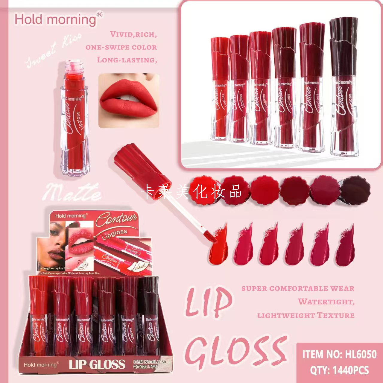 exclusive for cross-border new six-color longlasting lip gloss, long-lasting lock color non-stick cup, say goodbye to frequent makeup troubles 中文版