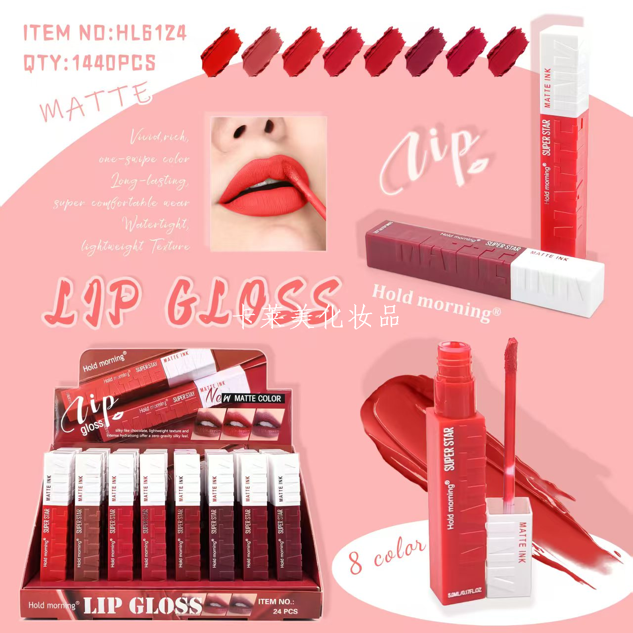 Six-color lipstick that doesn't stain the cup, long-lasting color retention without staining the cup, saying goodbye to the trouble of frequent touch-ups! Select six popular color numbers to meet the needs of daily and party makeup. Using innovative formulas, it is light and not heavy, moisturizing the lips without drying. Waterproof and sweat-proof, it does not fade when eating and drinking, maintaining a perfect lip makeup all day. Solution to user pain points: solve the problem of easy lipstick fall-off and embarrassing staining, providing lasting beauty. Emotional resonance: confident blooming, showing my charm, letting every moment shine. Highly praised, join the beautiful ranks!