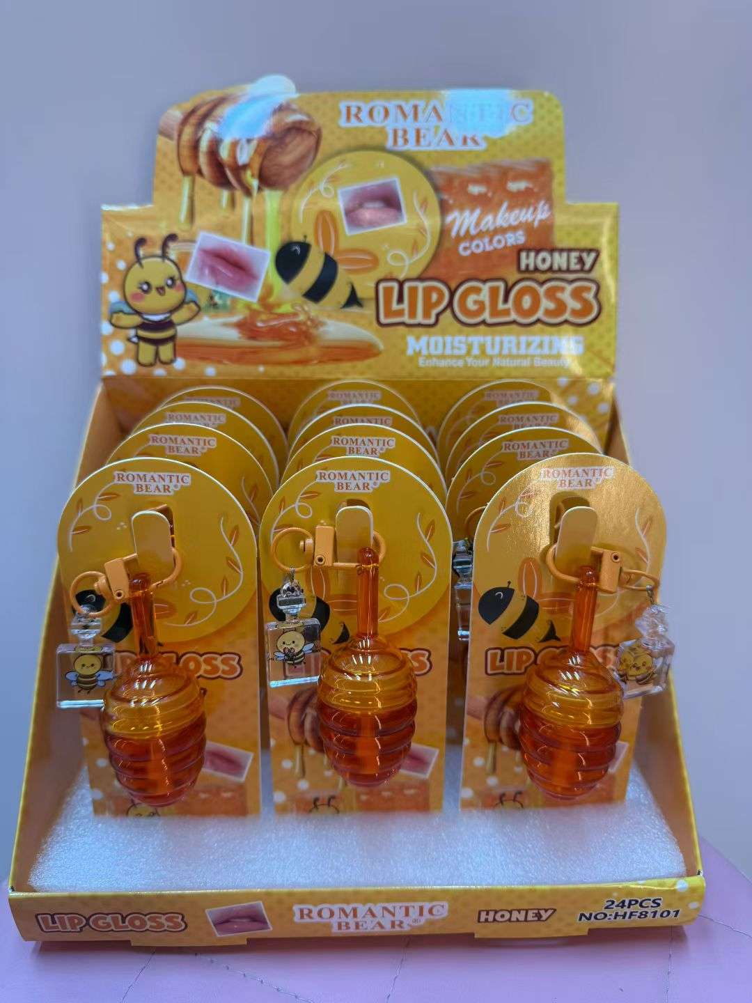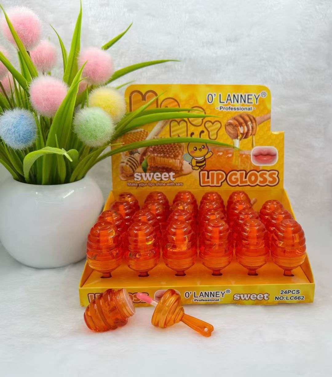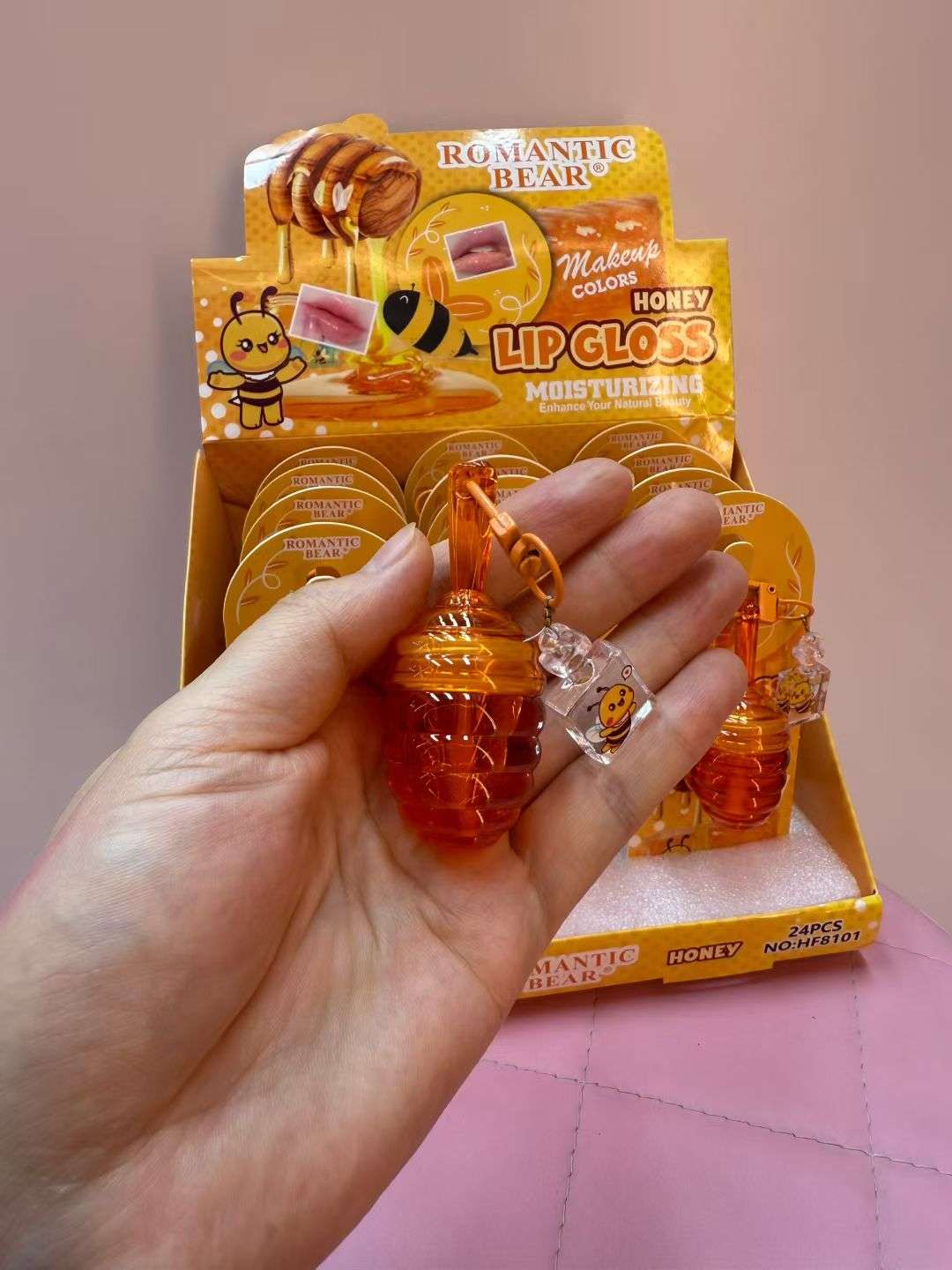 cross-border new arrival portable honey pot lip lacquer honey moisturizing lip gloss lip lipstick lip balm keychain lip gloss 中文版
