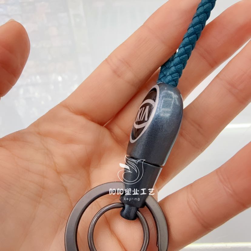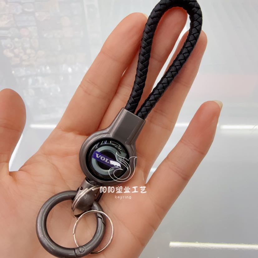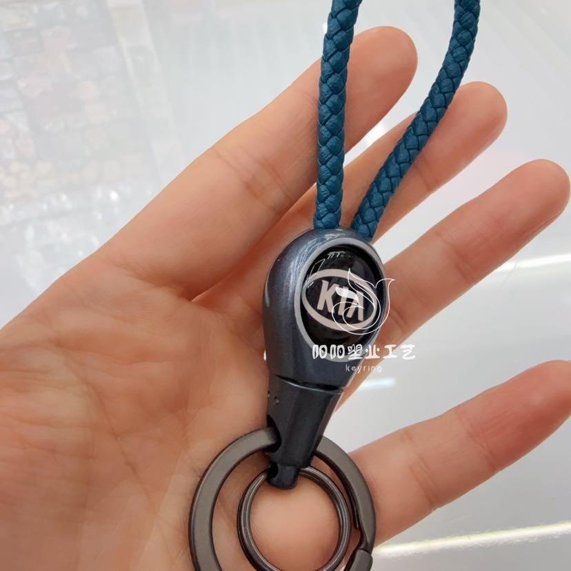 handmade braided leather keychain pendant genuine leather embossed logo high quality lanyard anti-lost car key ring 中文版
