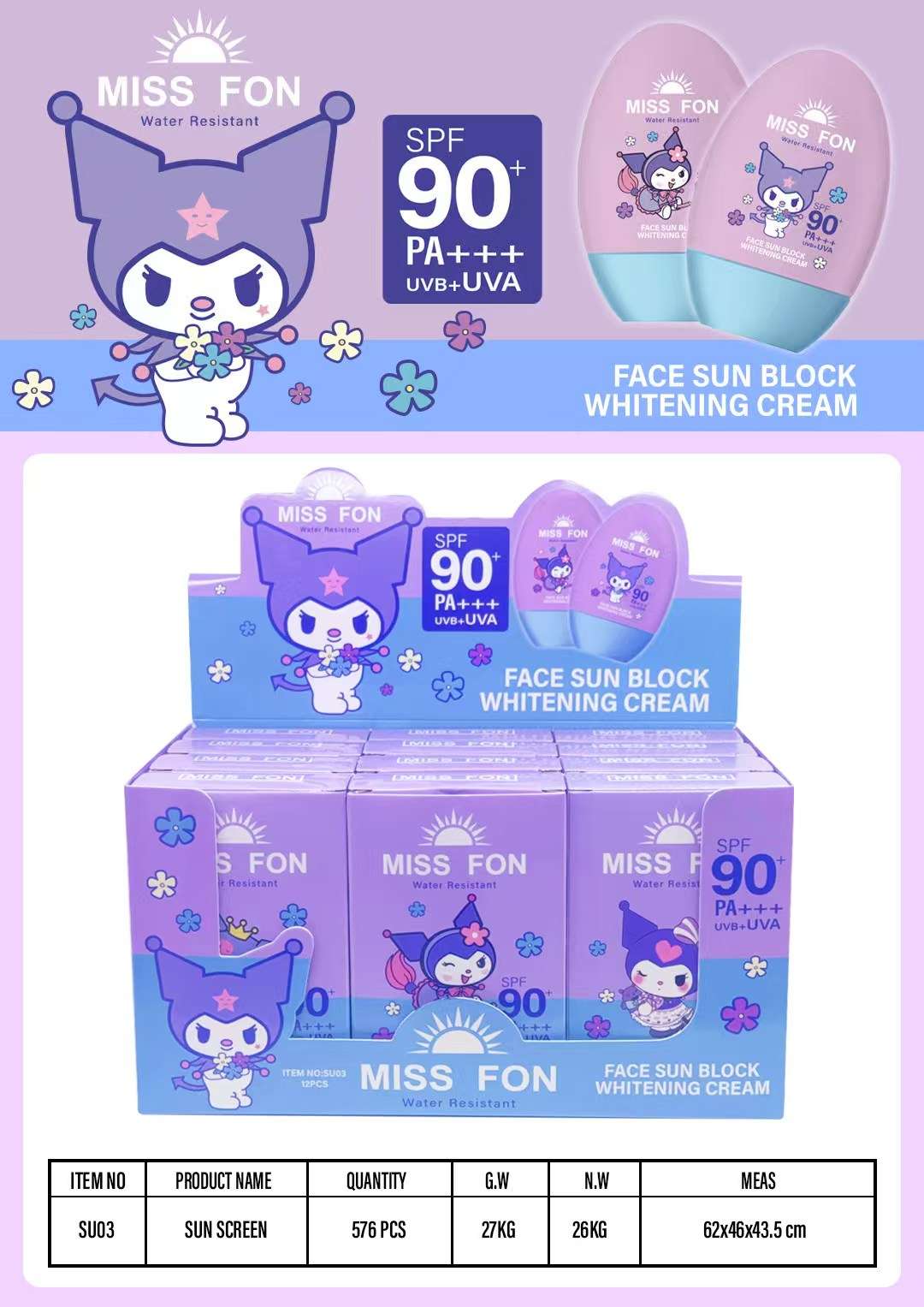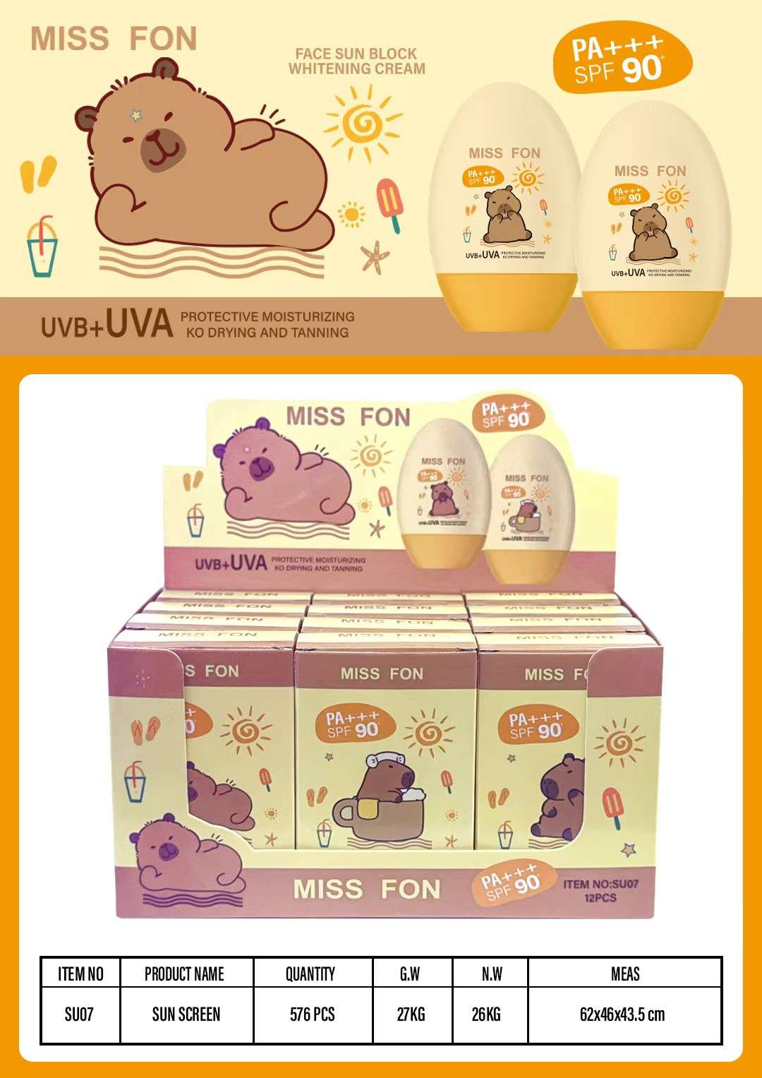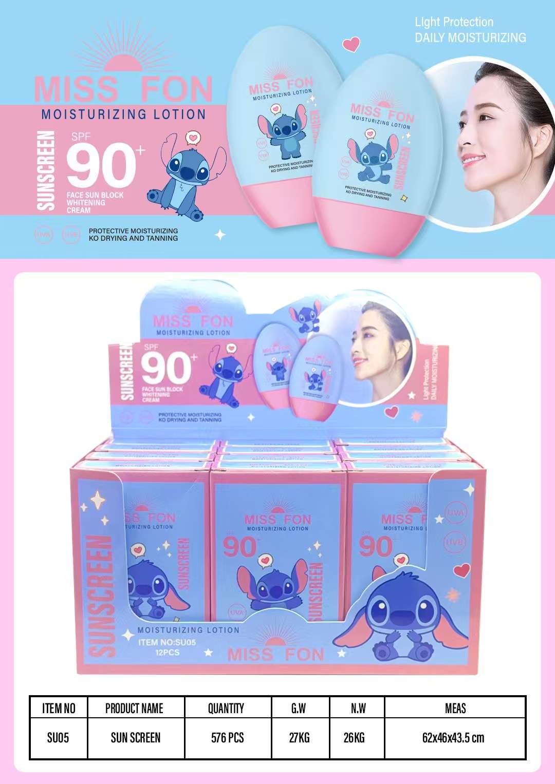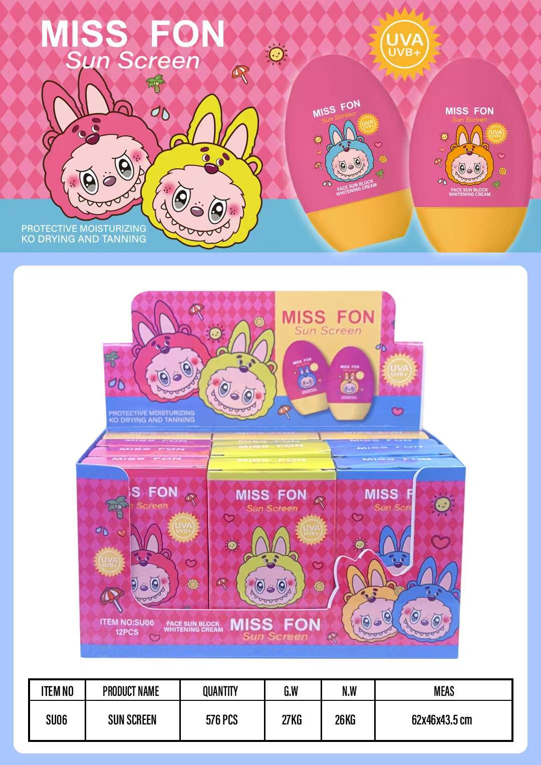 cross-border miss fon uv protection sunscreen cream makeup primer refreshing nourishing long-lasting protection fast film forming 中文版