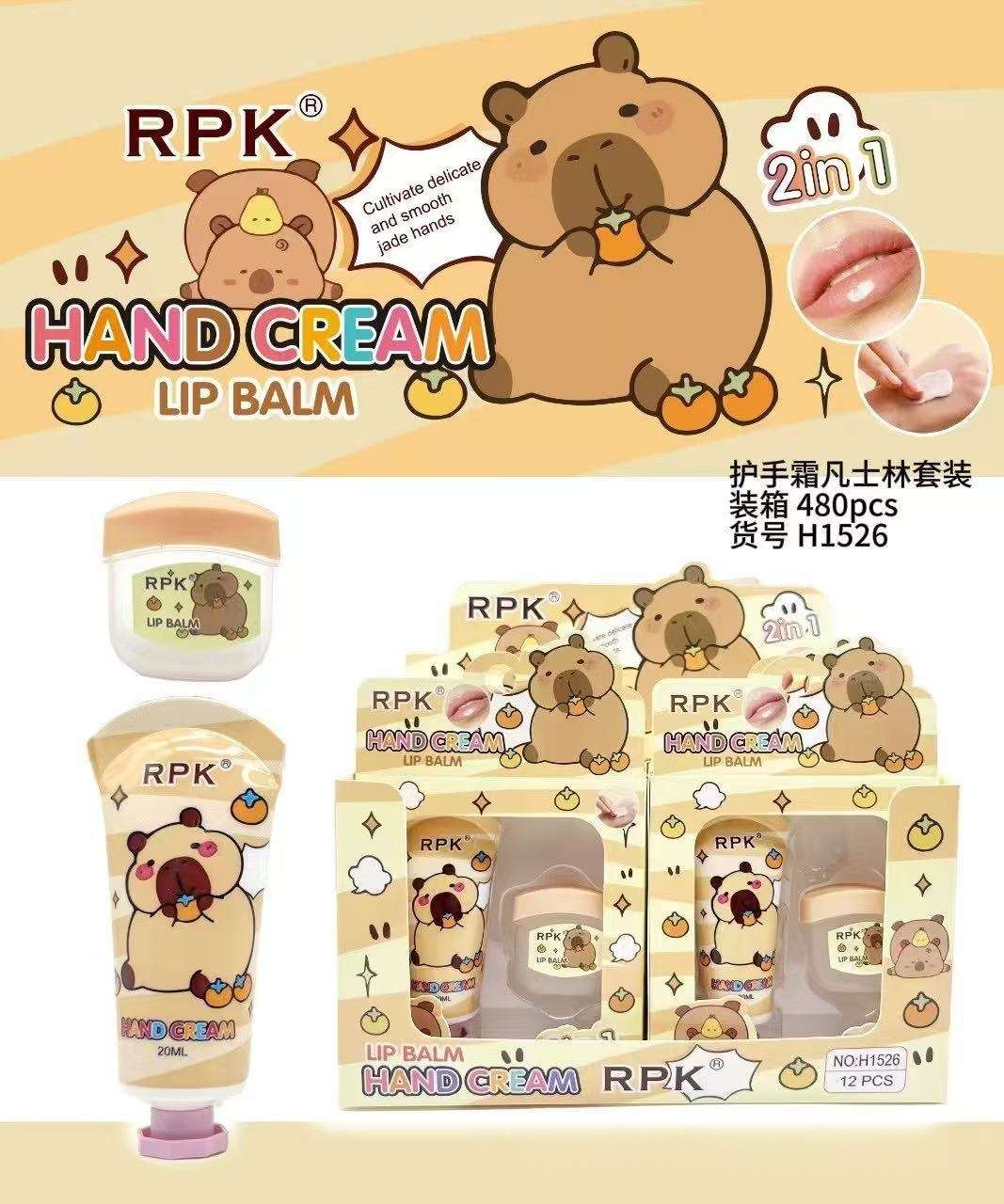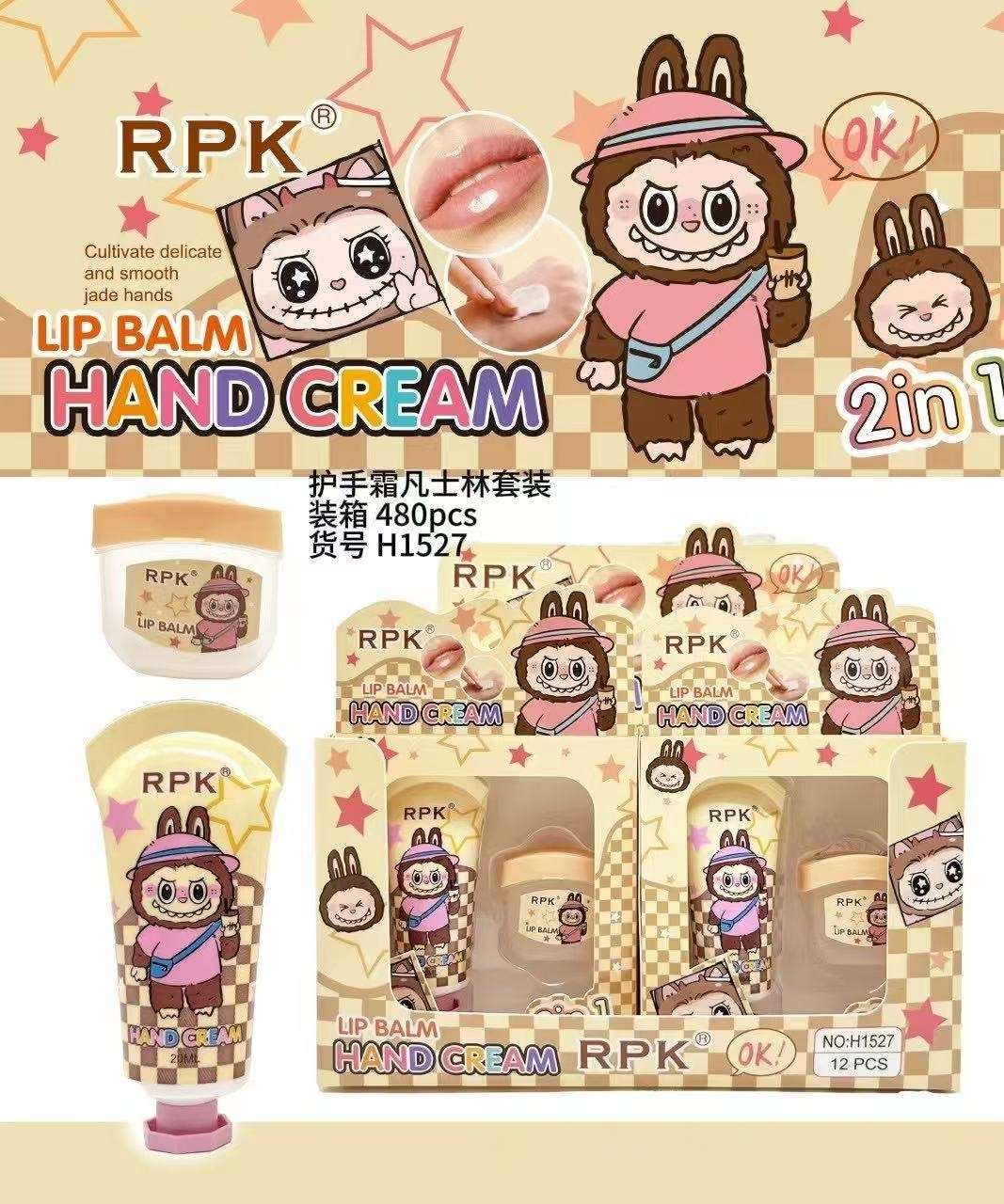 cross-border rpk cute cartoon moisturizing and nourishing lipstick exfoliating anti-chapping moisturizing hand cream 2-in-1 package 中文版