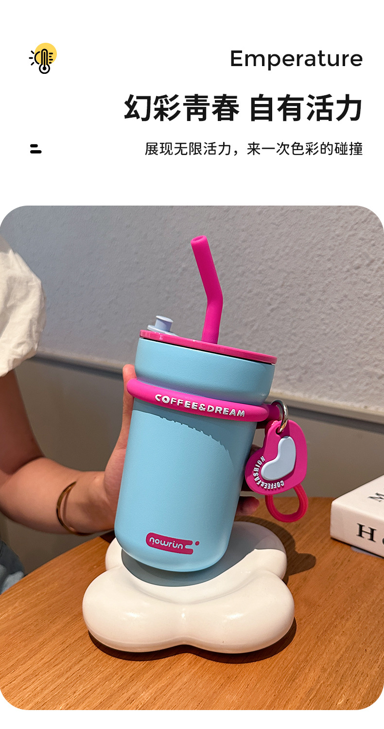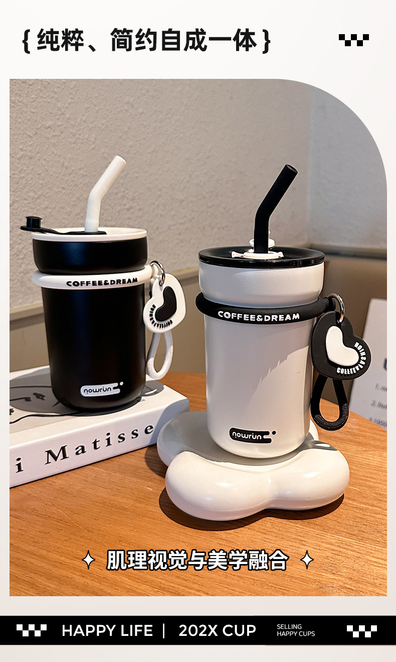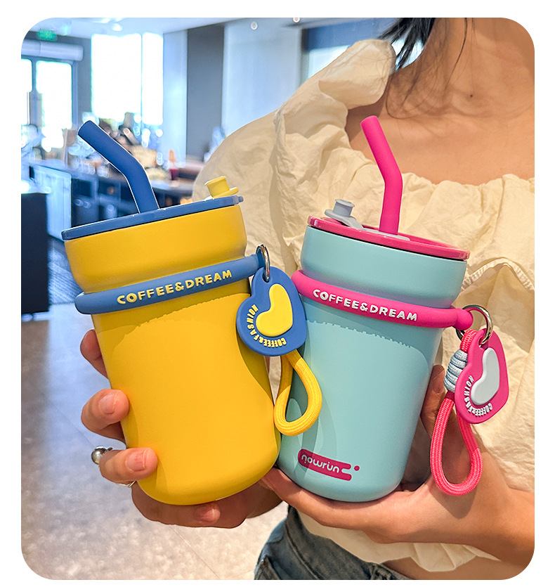 love heart simplicity stainless steel cup with straw couple vacuum thermos cup portable water cup straw coffee cup