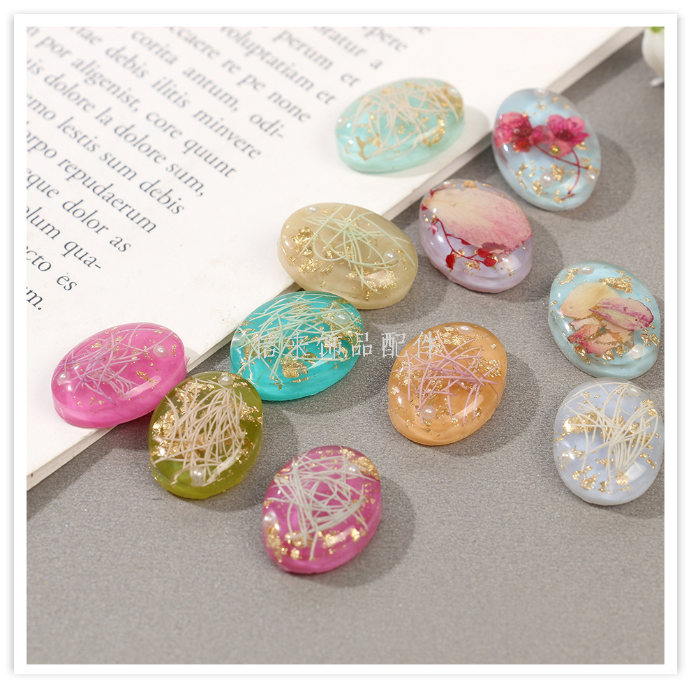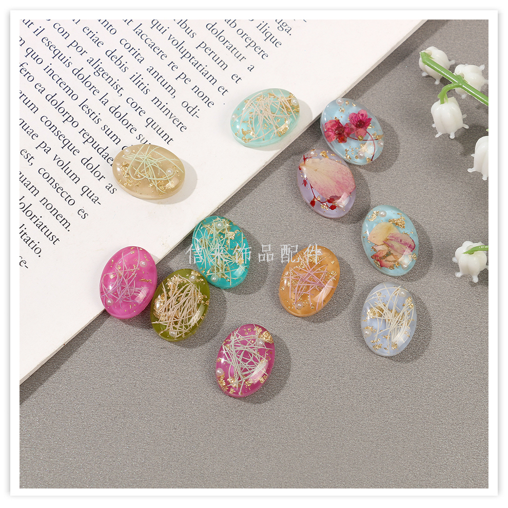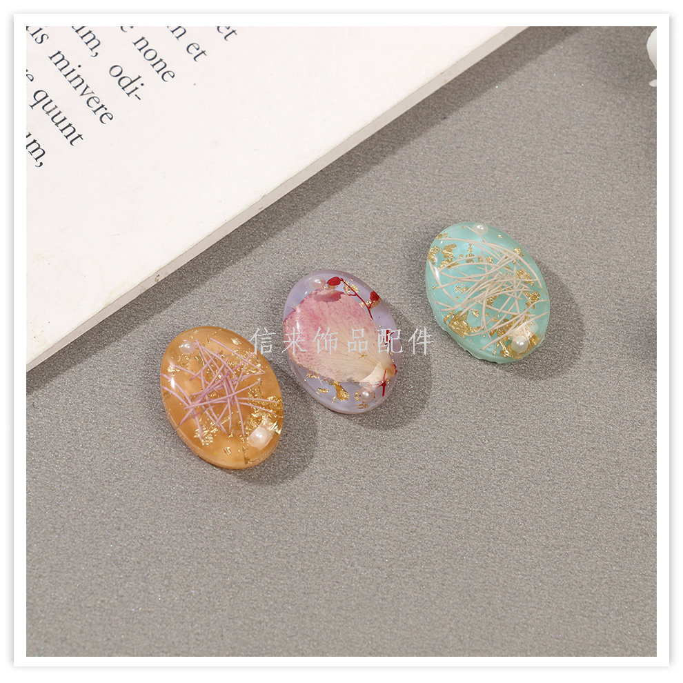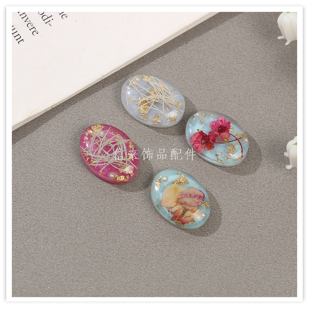 cross-border retro japanese dried flower oval patch pendant diy handmade jewelry earrings ear stud necklace accessories material 中文版