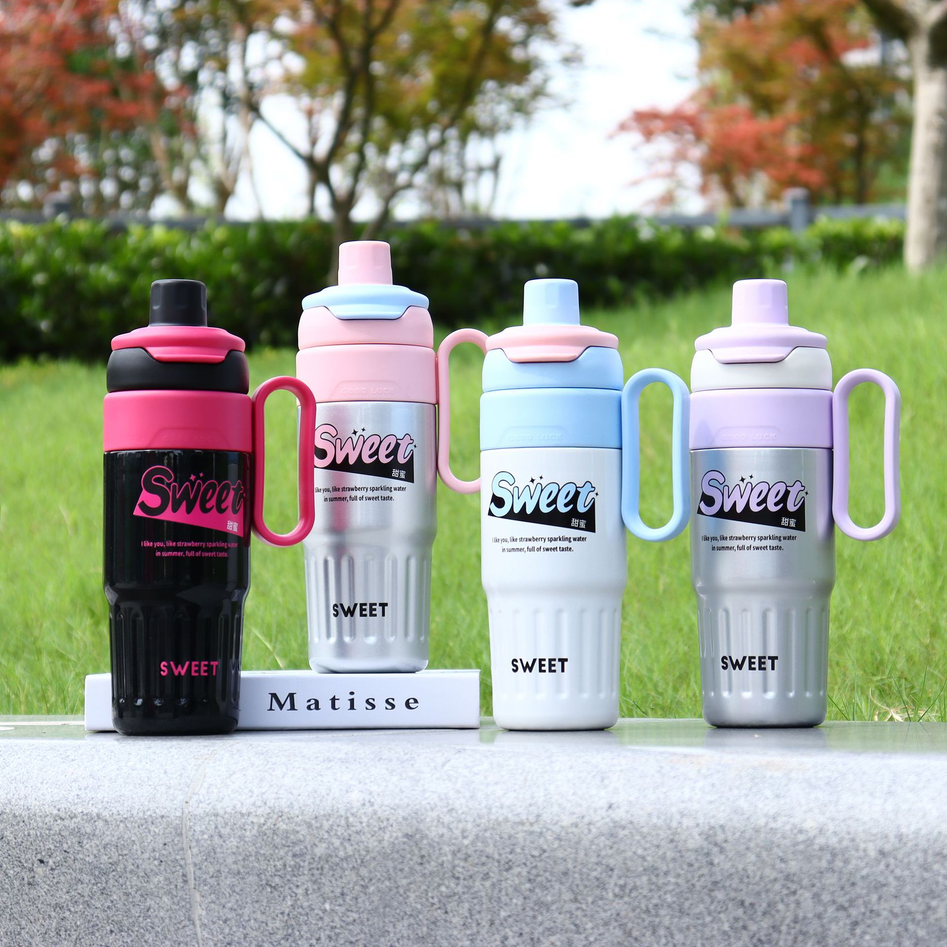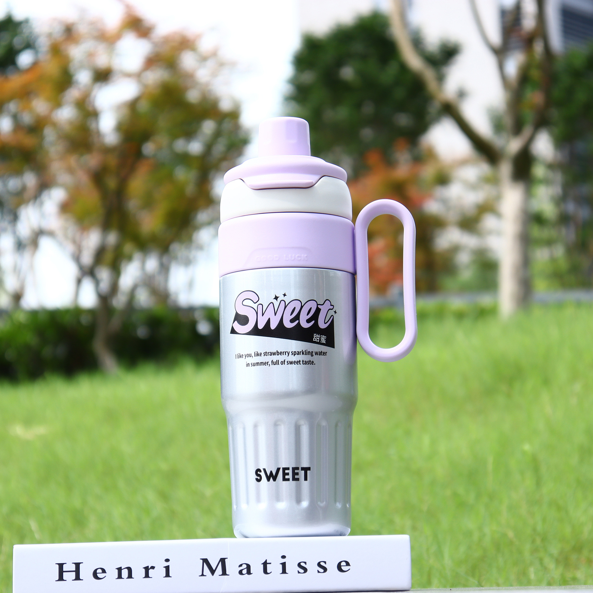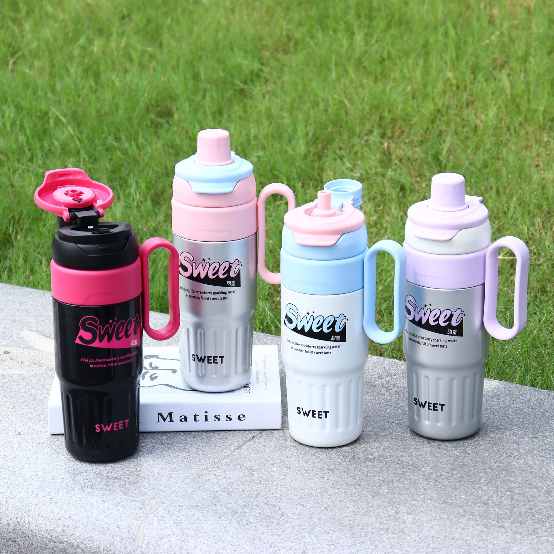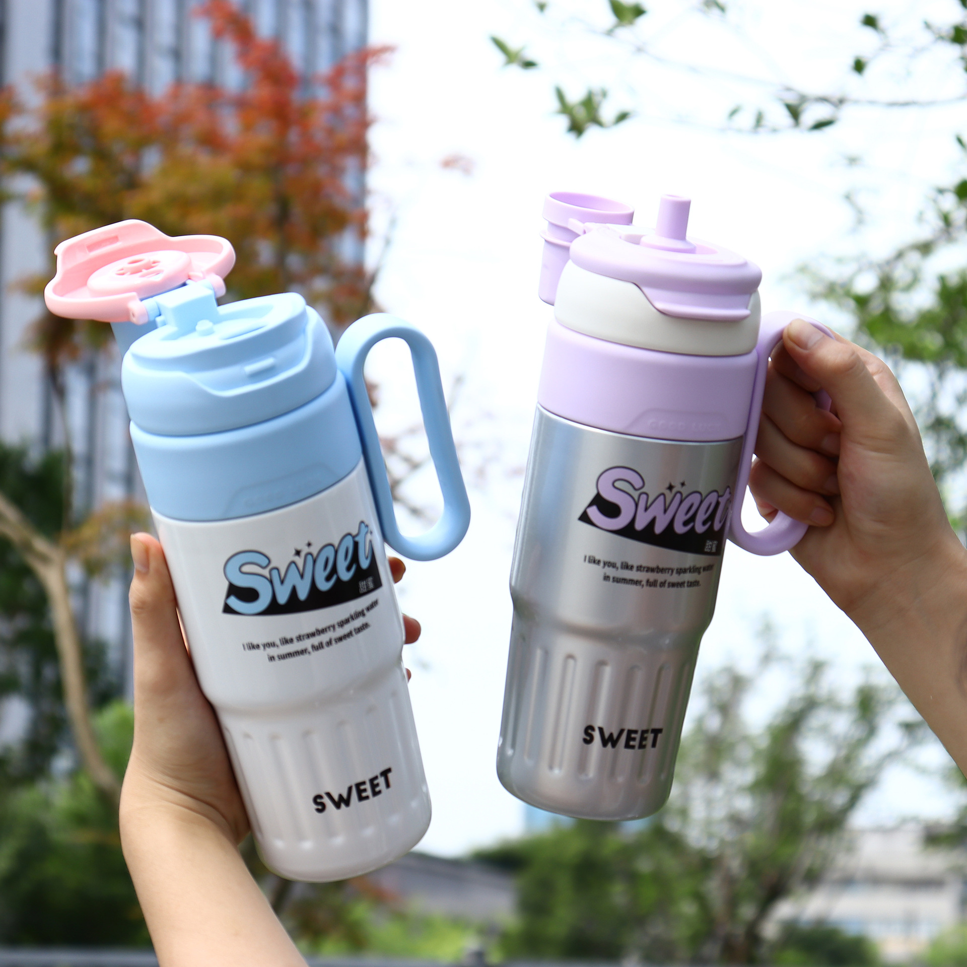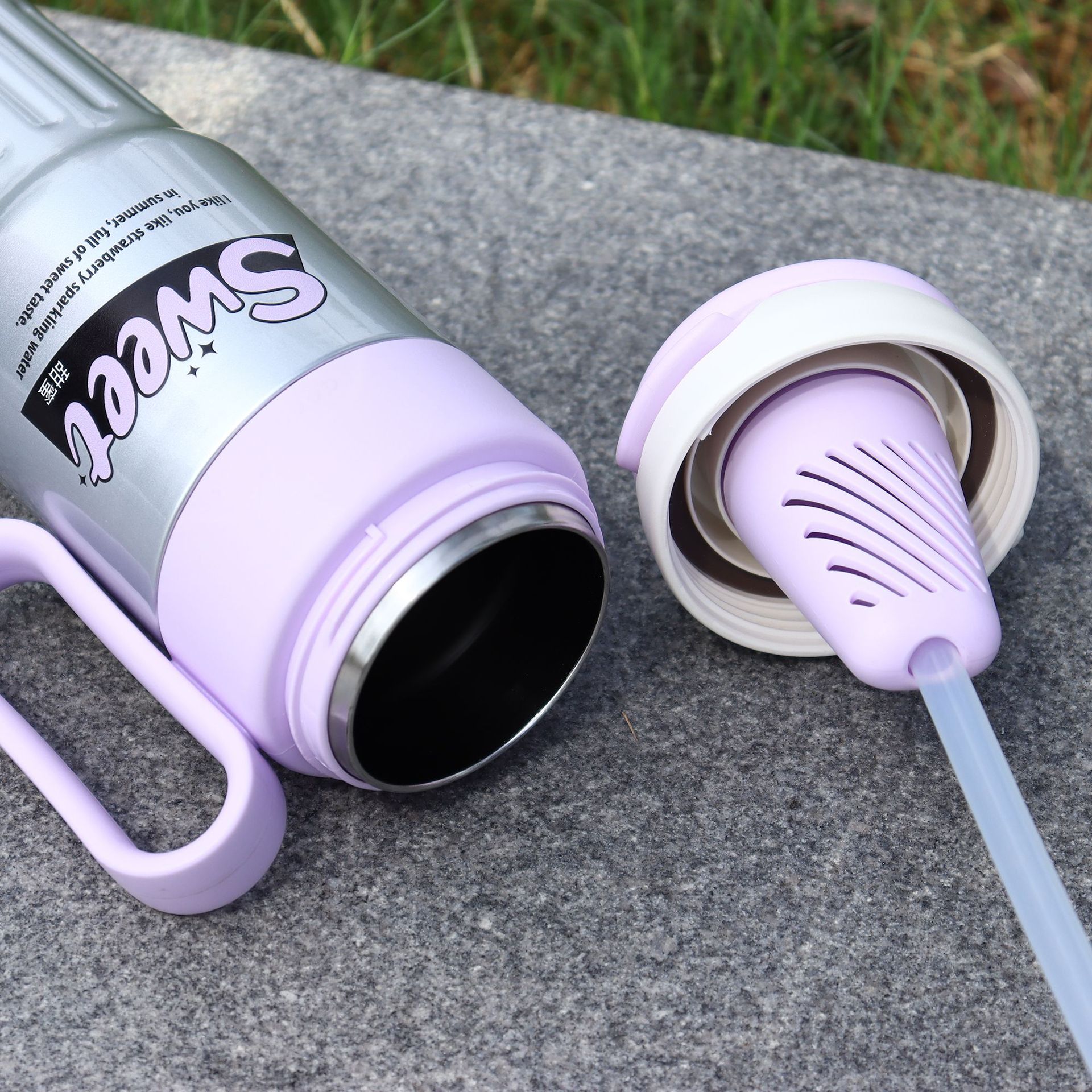 new large capacity double drink scented tea cup 316 stainless steel vacuum cup with scale tea water separation handle large ice cup 中文版