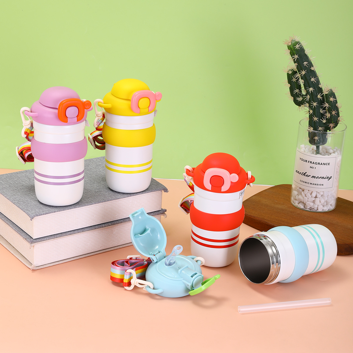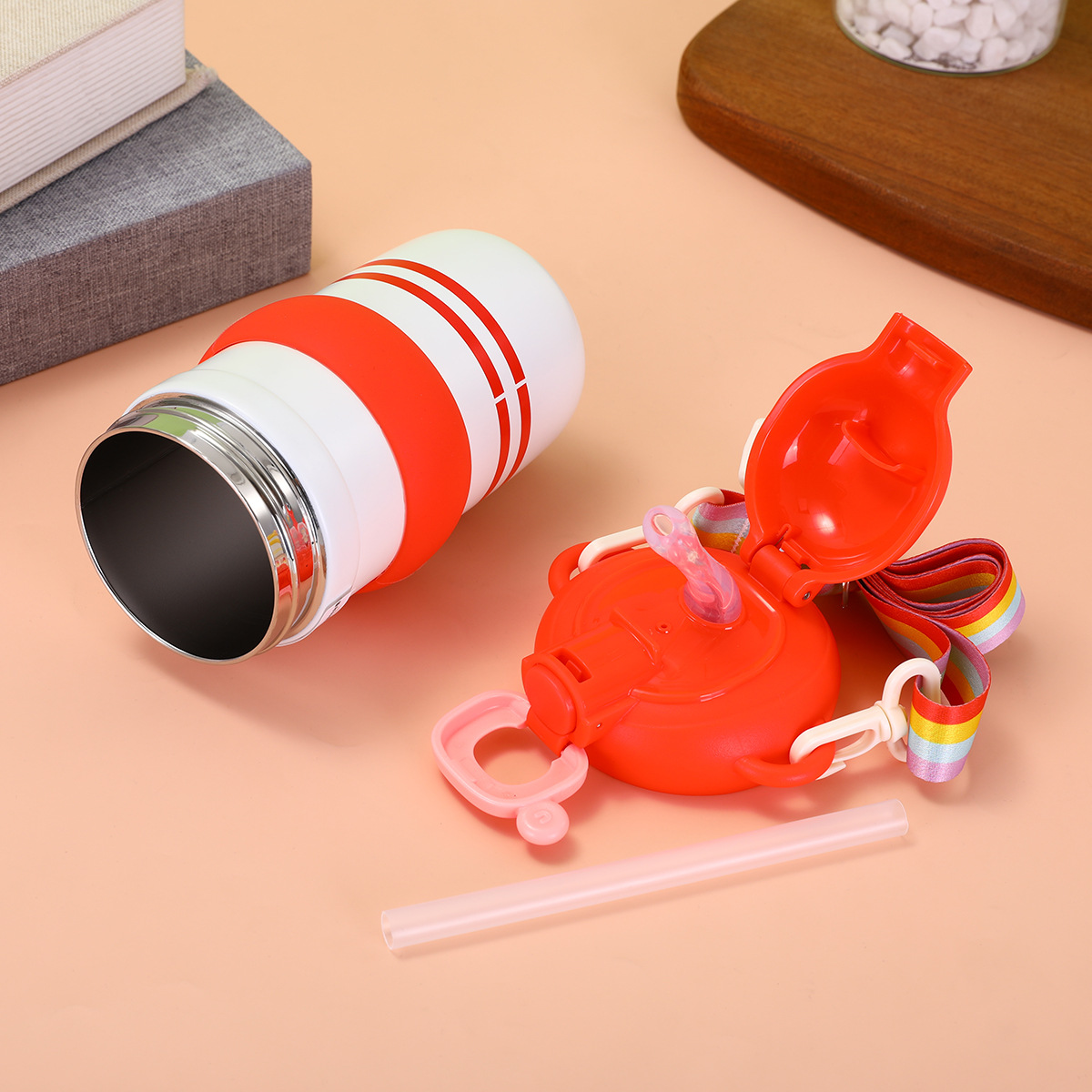 316 stainless steel thermos cup girl cute good-looking coffee cup traveling portable straw cup simple circle cup 中文版