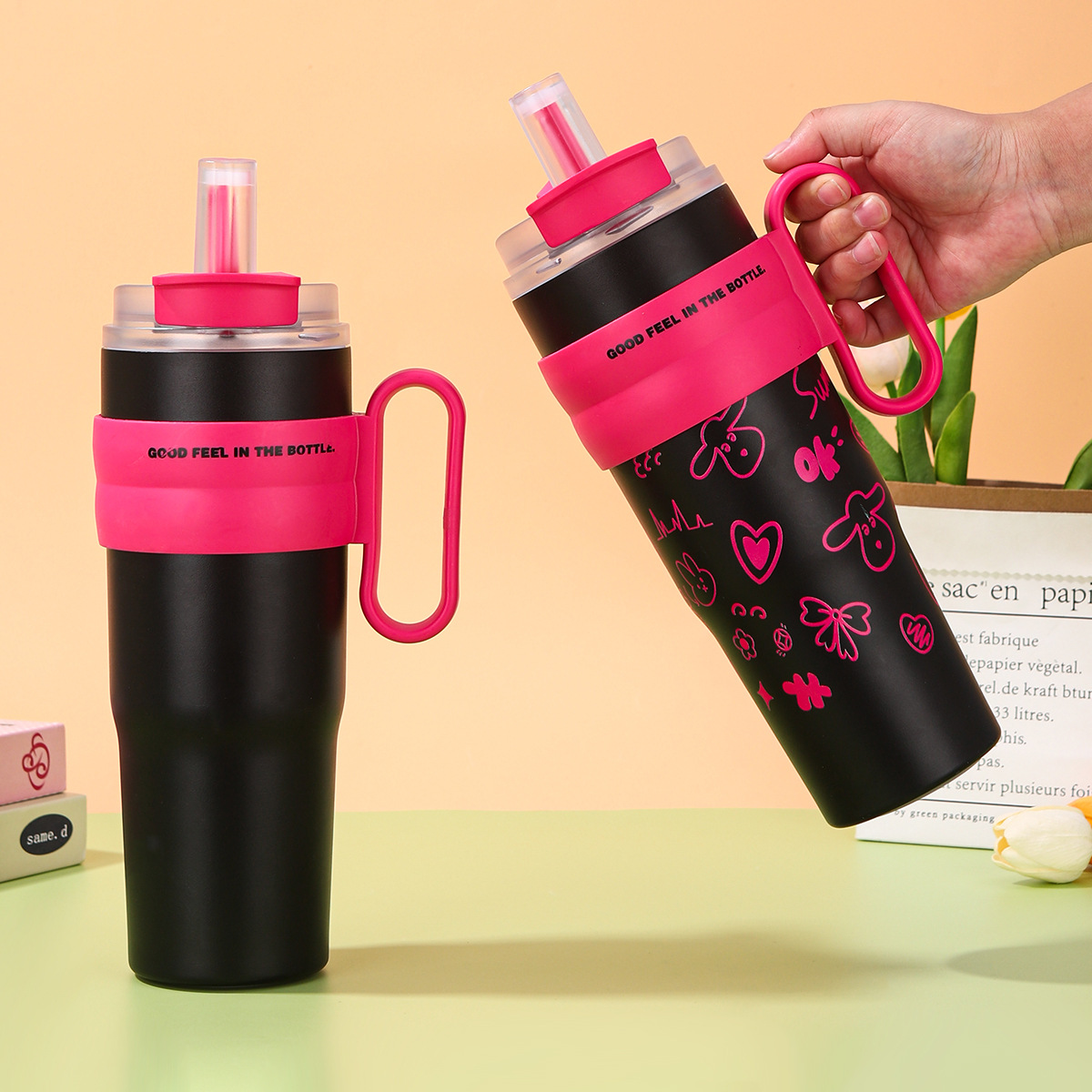 cross-border 304 stainless steel vacuum big mac large ice cup 40oz handle cup outdoor portable cold insulation cup