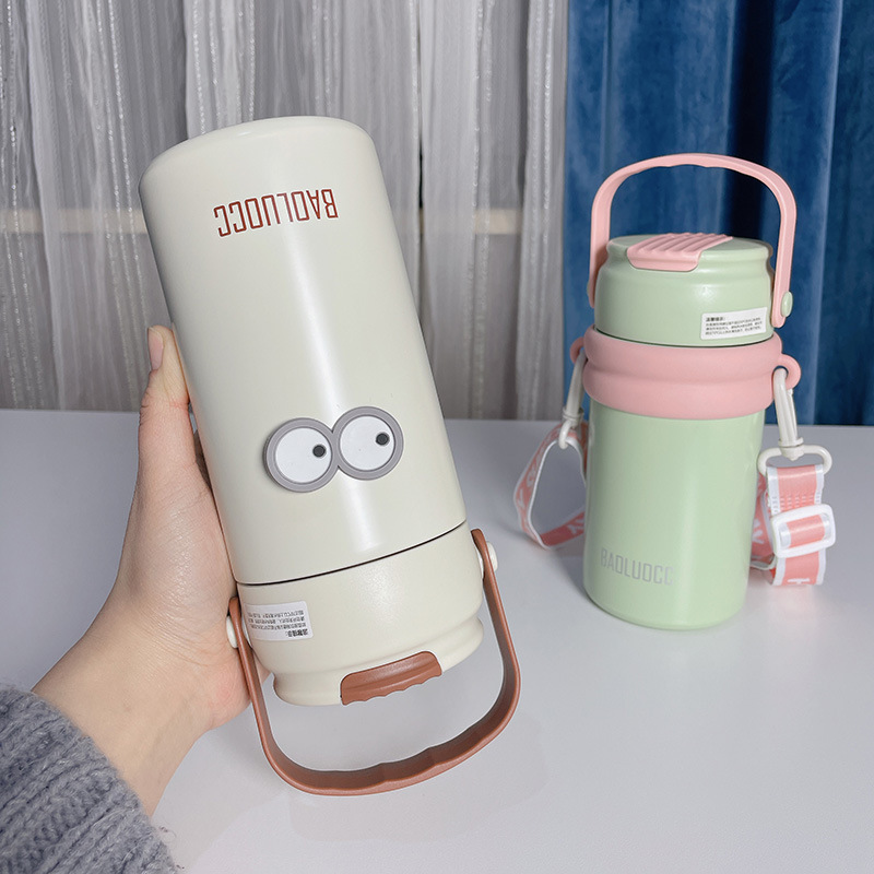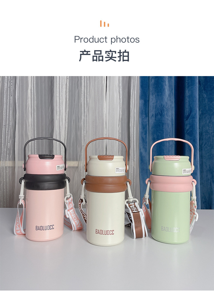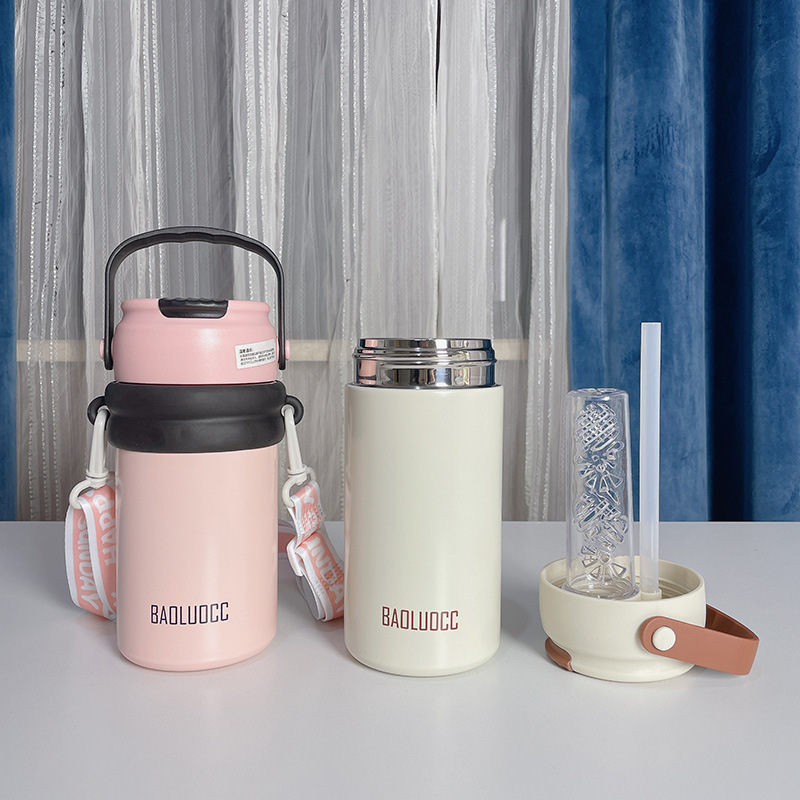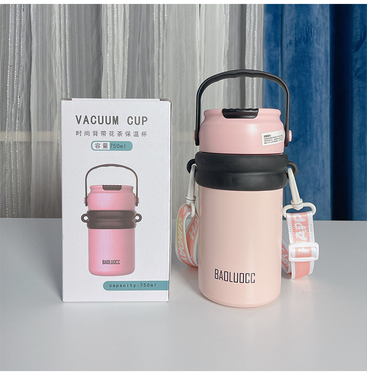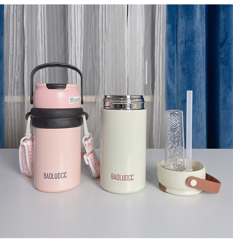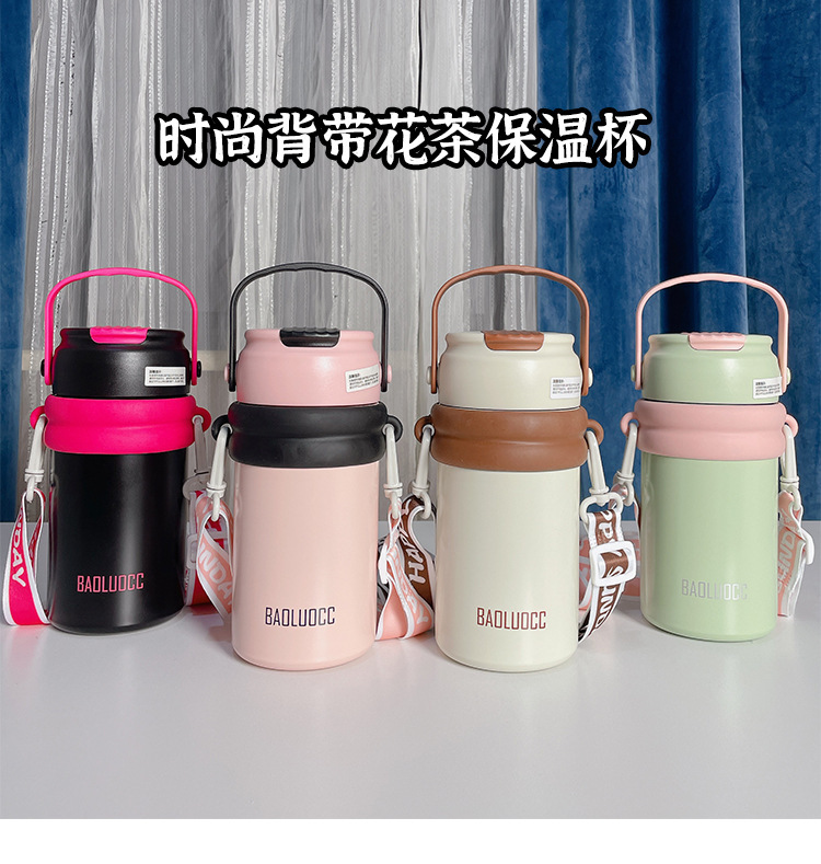 tea water separation vacuum cup large capacity girls good-looking with tea infuser straw cup portable lanyard strap flower tea cup 中文版