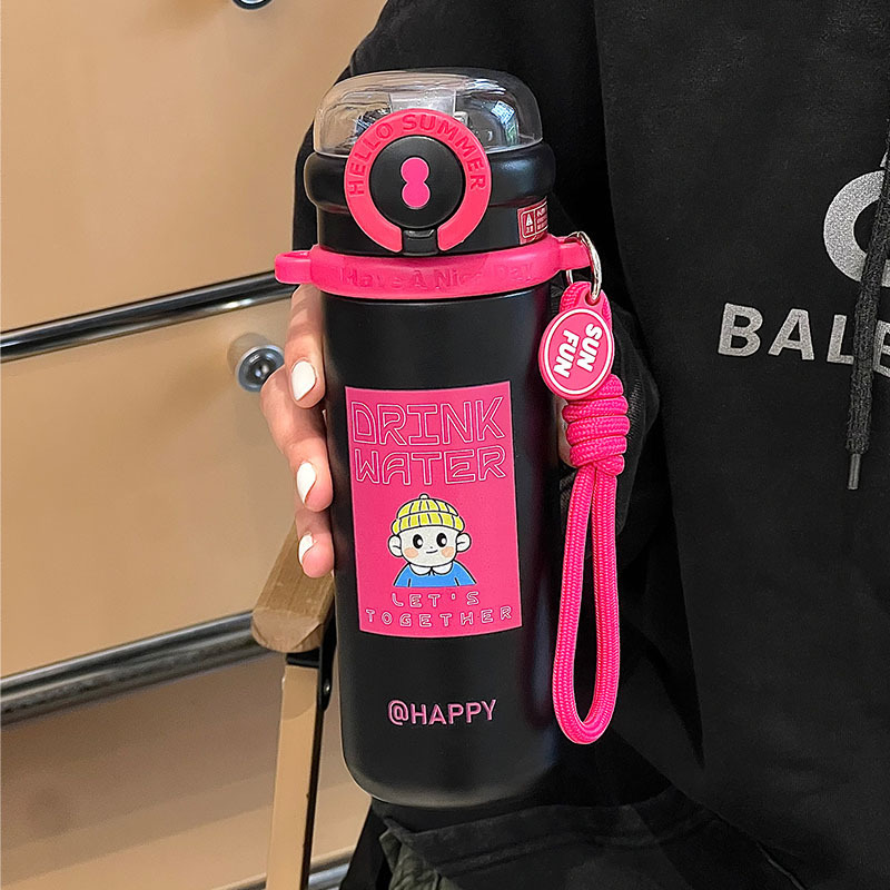 thermos cup girls good-looking cup with suction tubes cute children's cups college students school water bottle