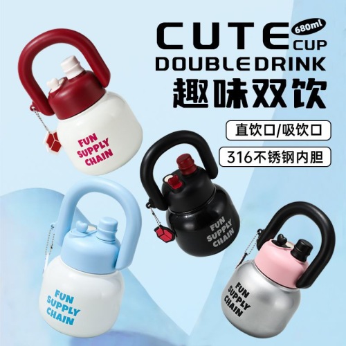 good-looking carrying pot thermos cup female student water cup large capacity straw cup portable creative big belly cup wholesale 中文版