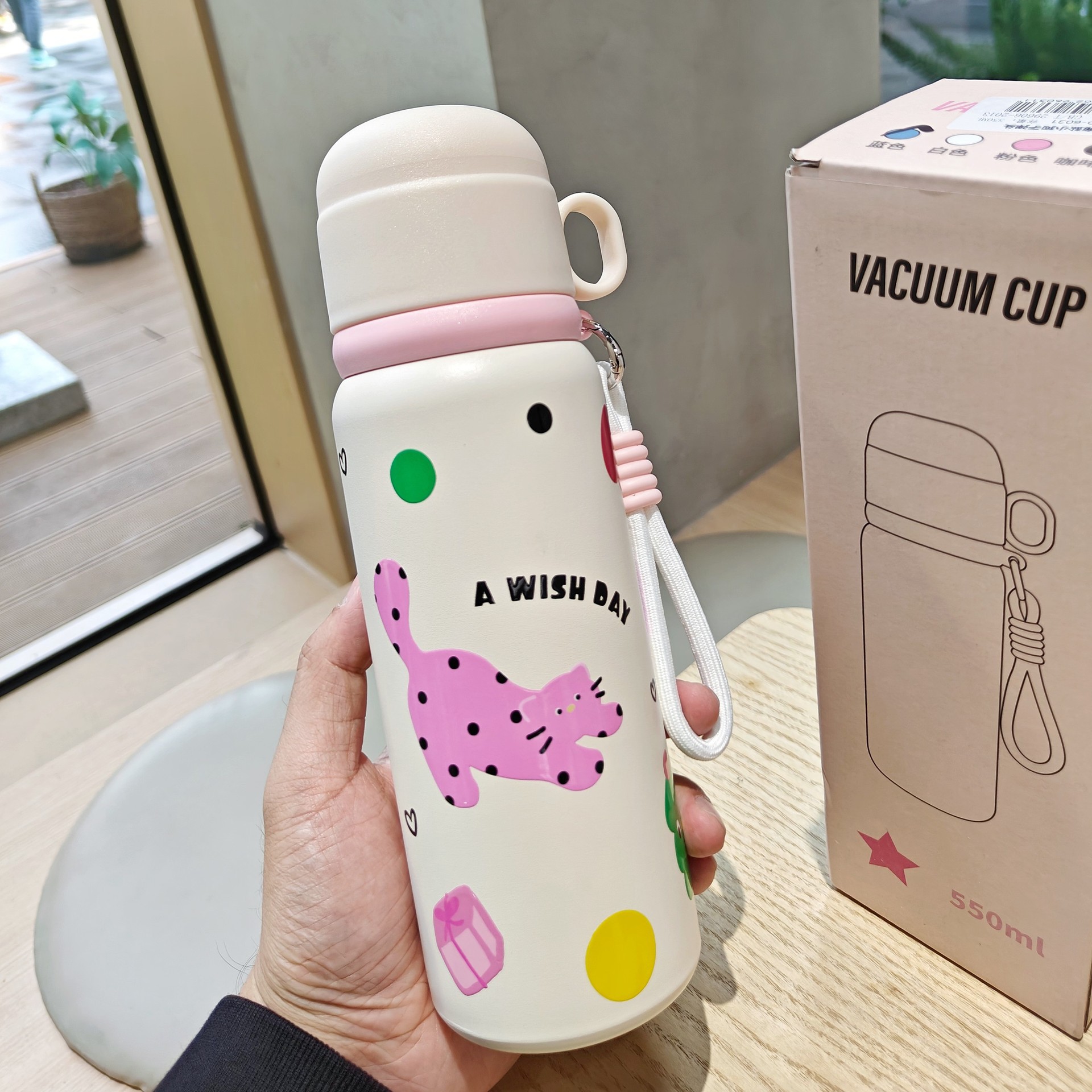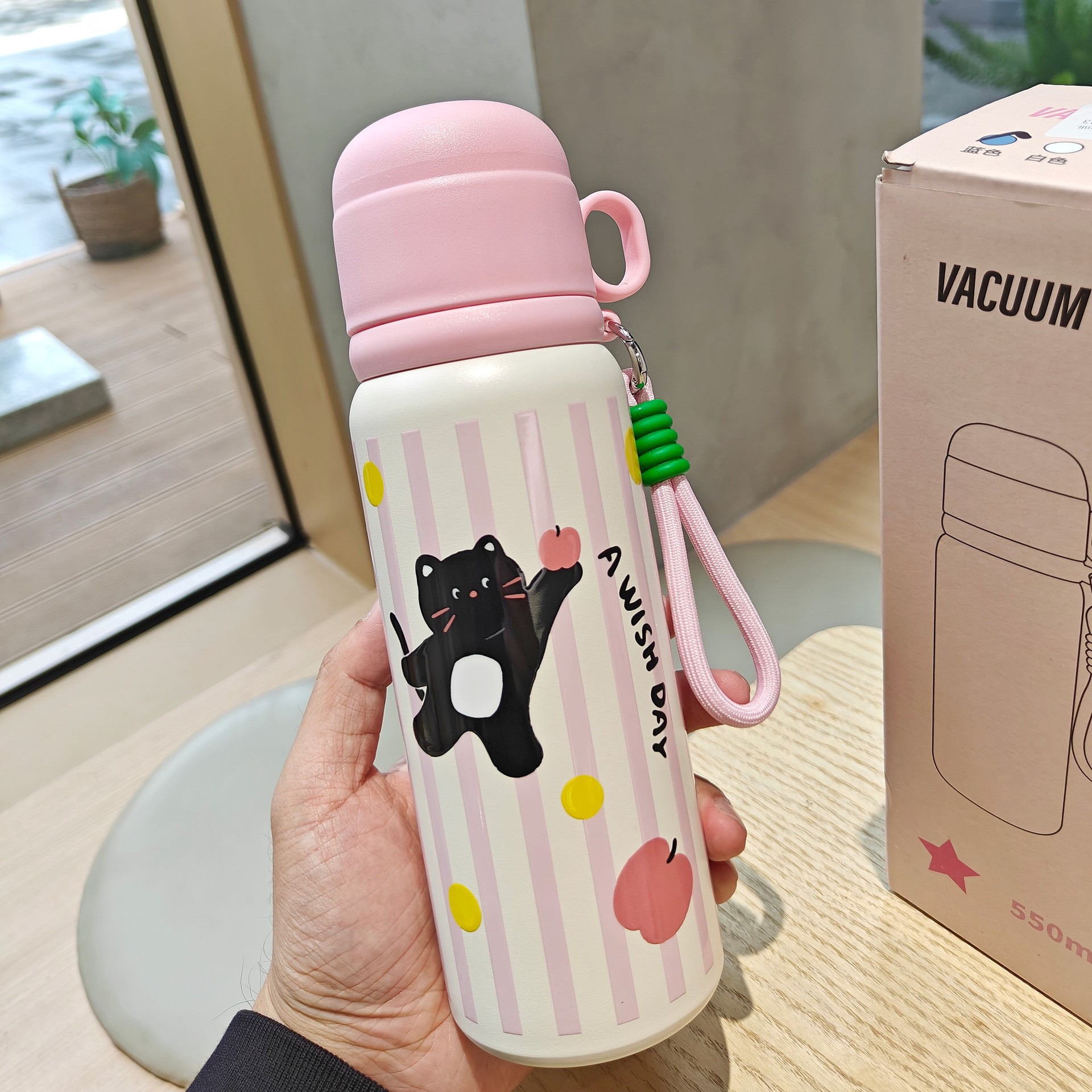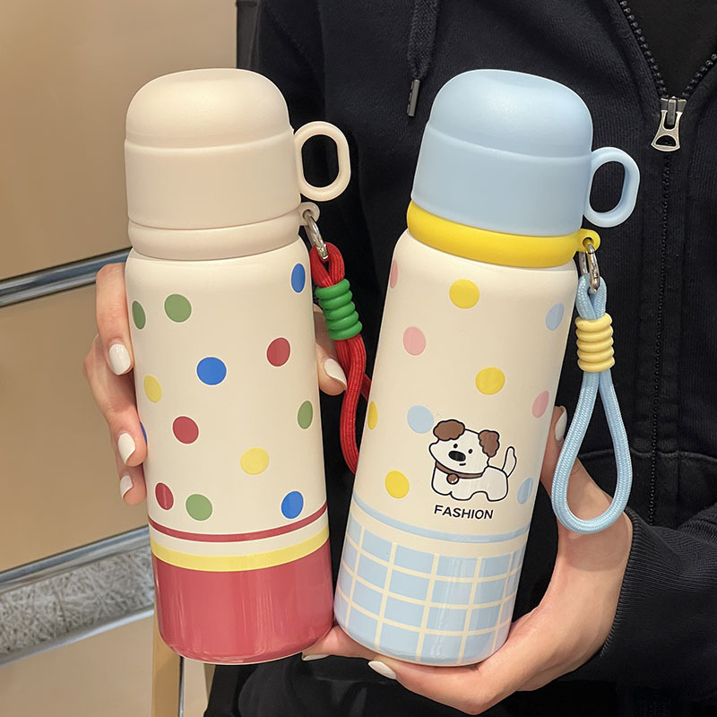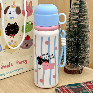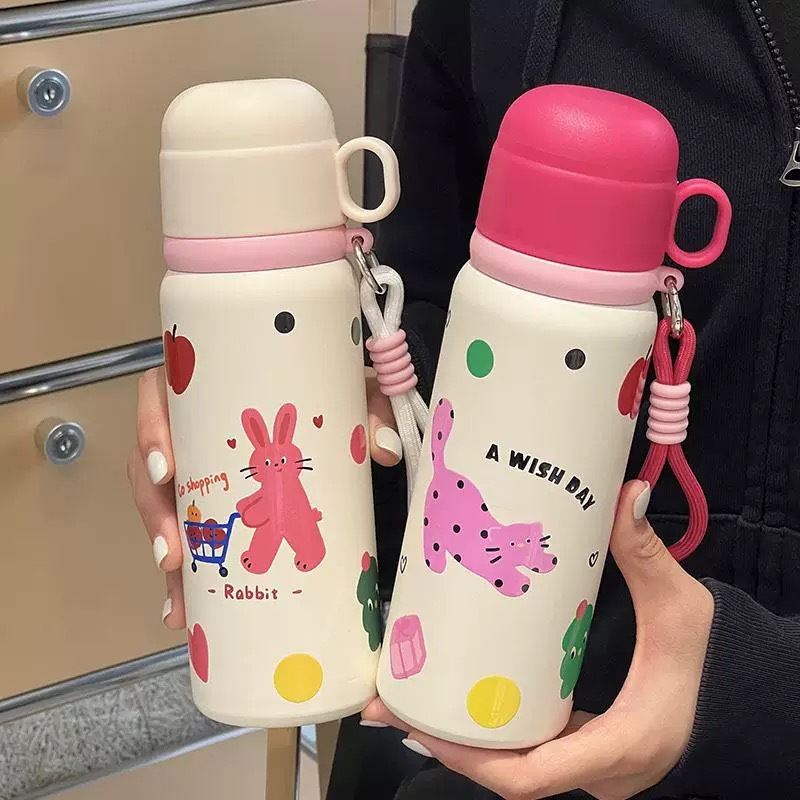 cartoon bullet thermos mug with rope handle portable vacuum water cup cartoon student stainless steel cup 中文版