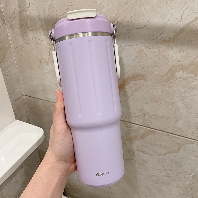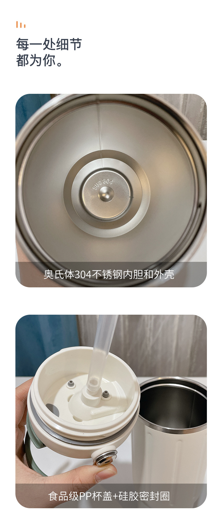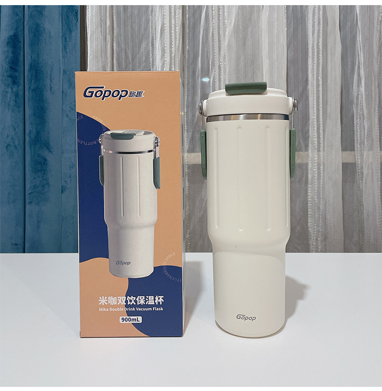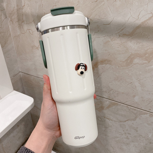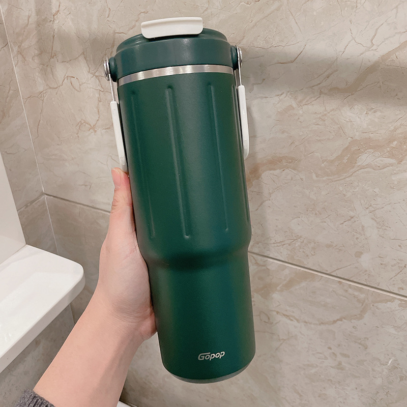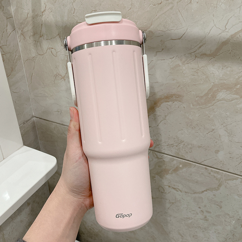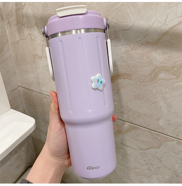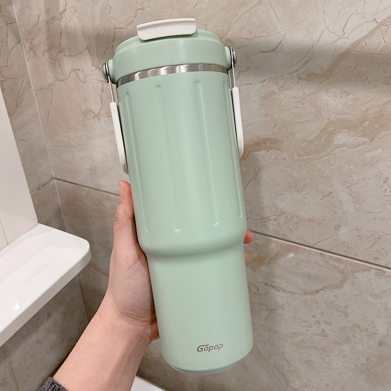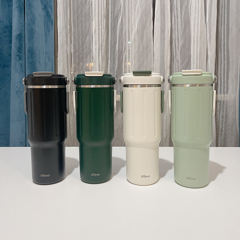 straw thermal insulation cup large capacity girl 2023 new minimalist water cup 304 stainless steel double drink cup portable 中文版