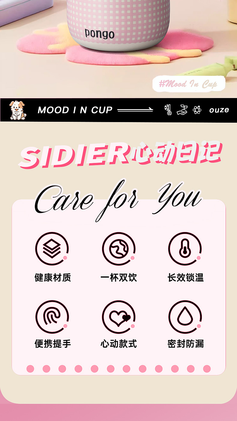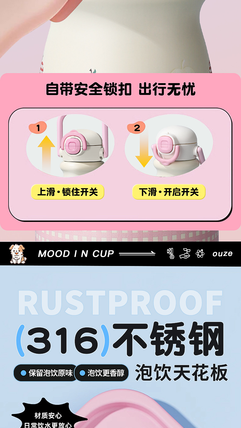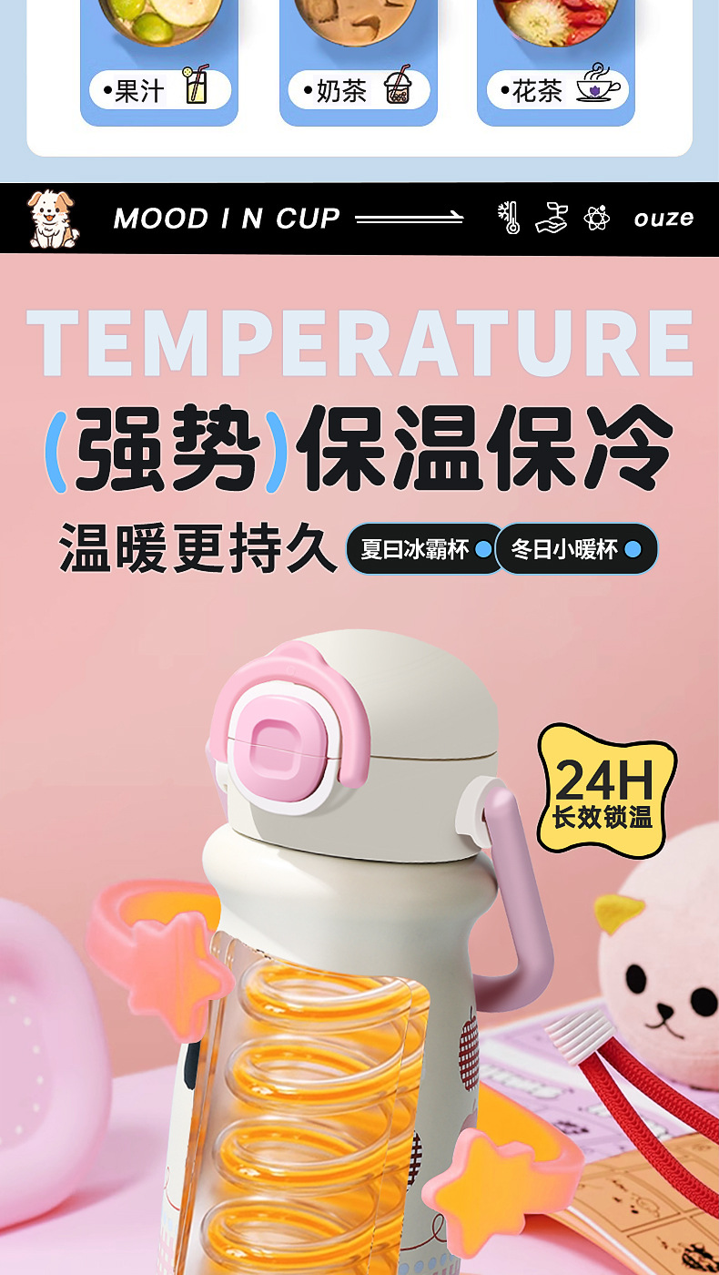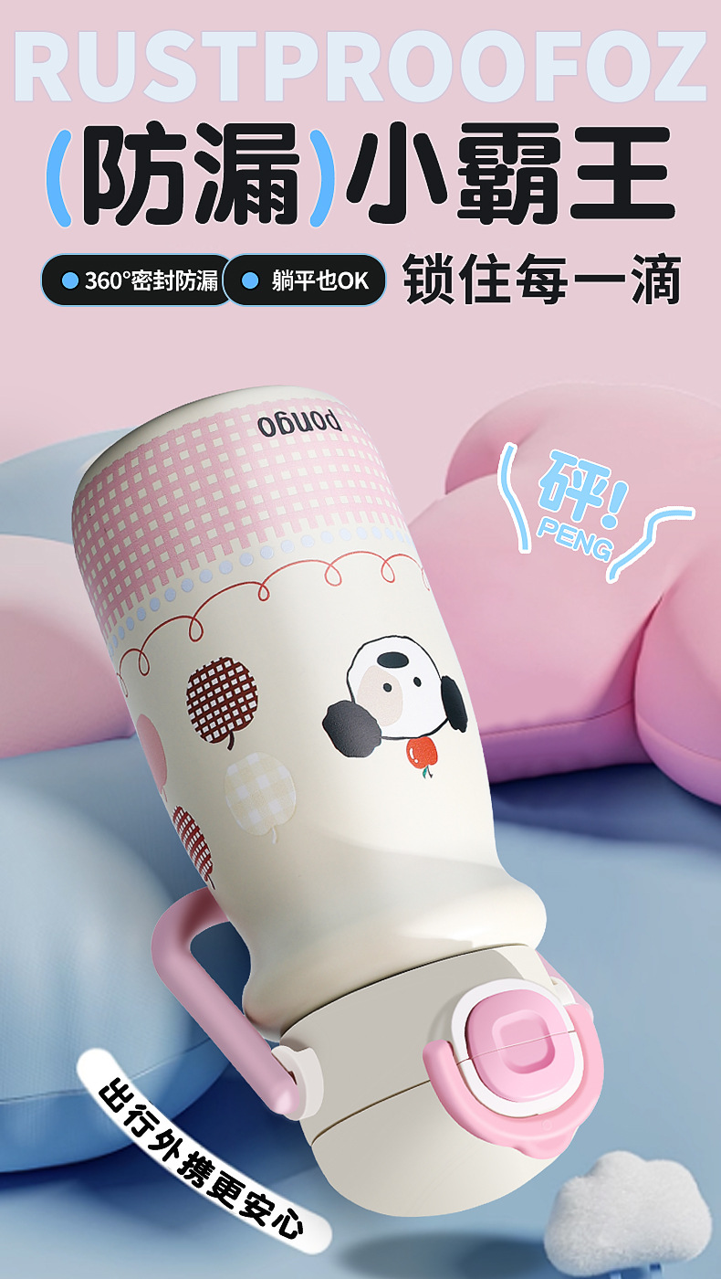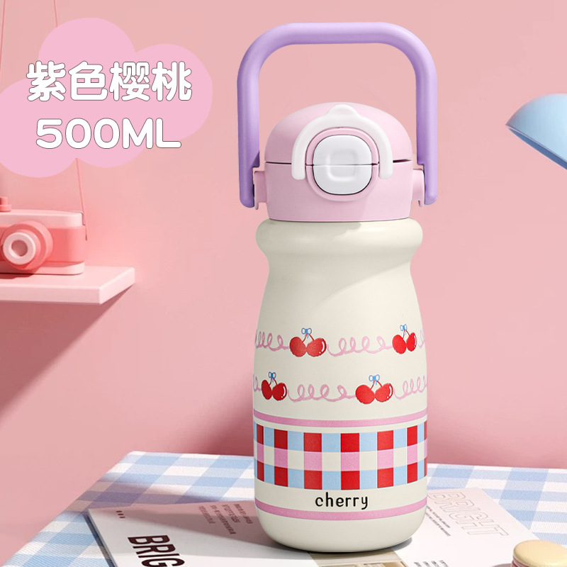 vacuum cup small portable and cute good-looking girls portable belt straw cup stainless steel outer band portable cup