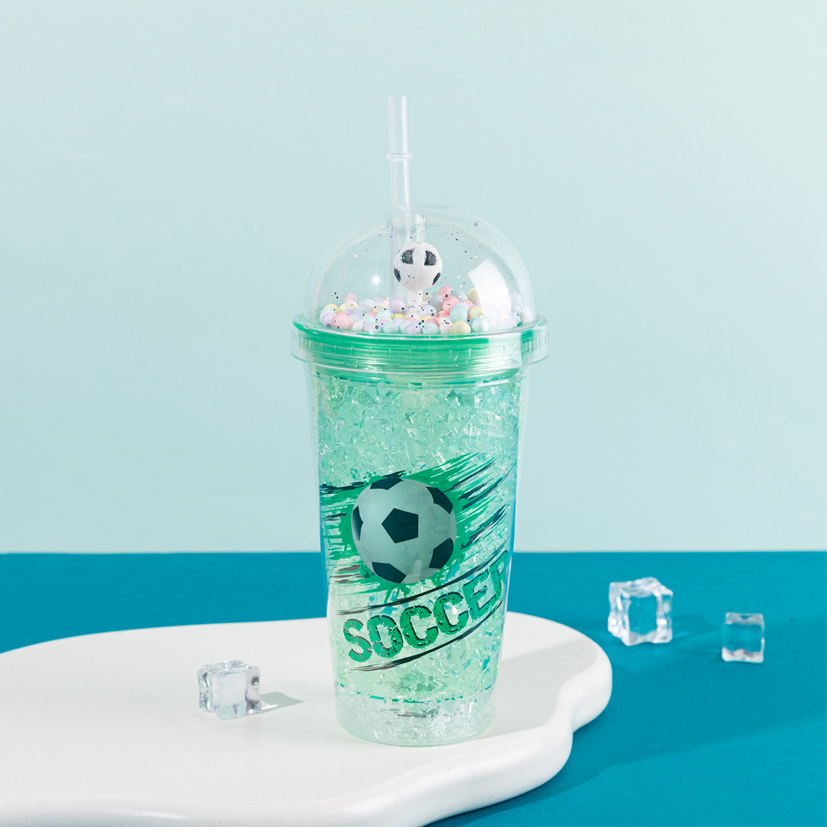 foreign trade hot selling football cup wholesale internet celebrity large capacity portable double plastic straw cup creative gift cup
