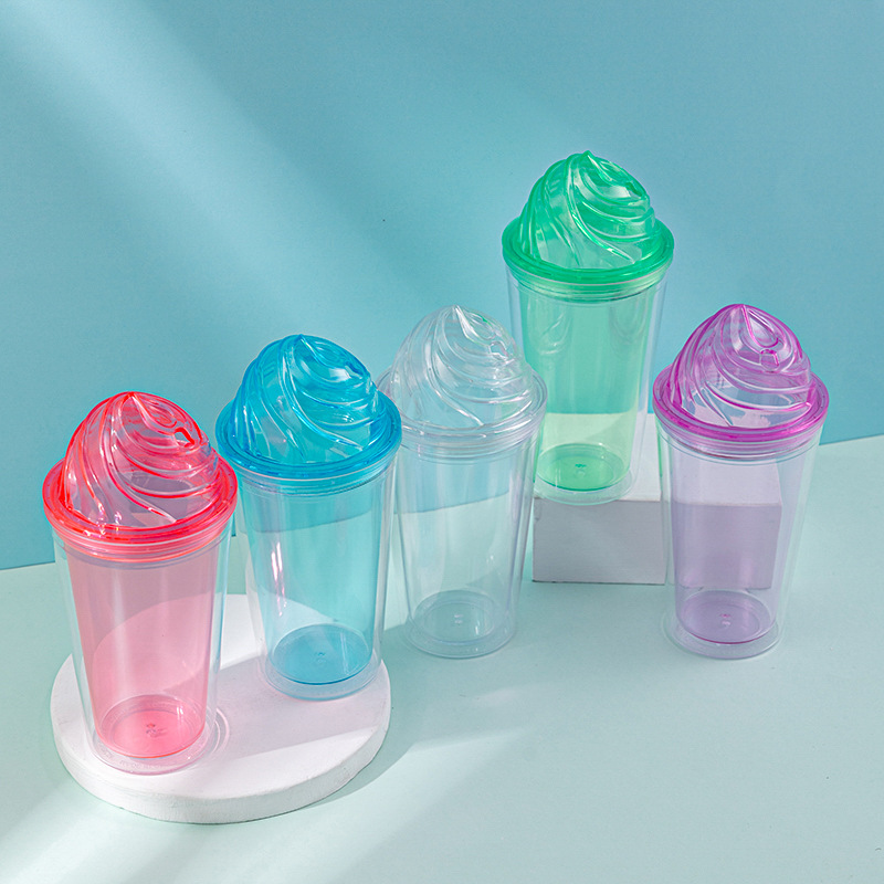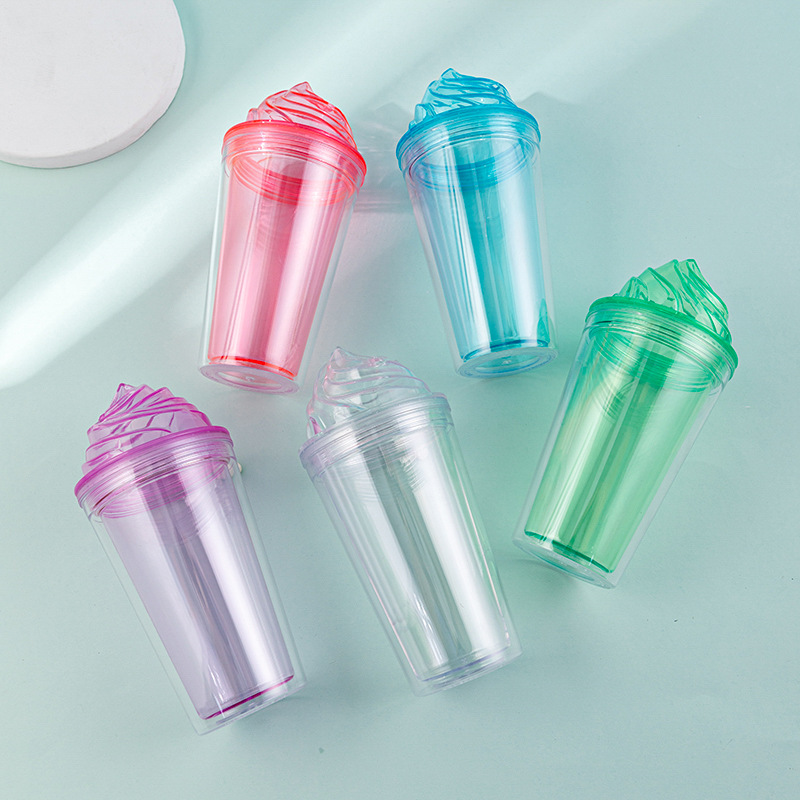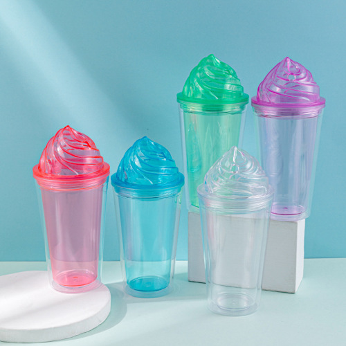 foreign trade new ice cream cup wholesale creative trending summer crushed ice cup portable double layer plastic straw cup