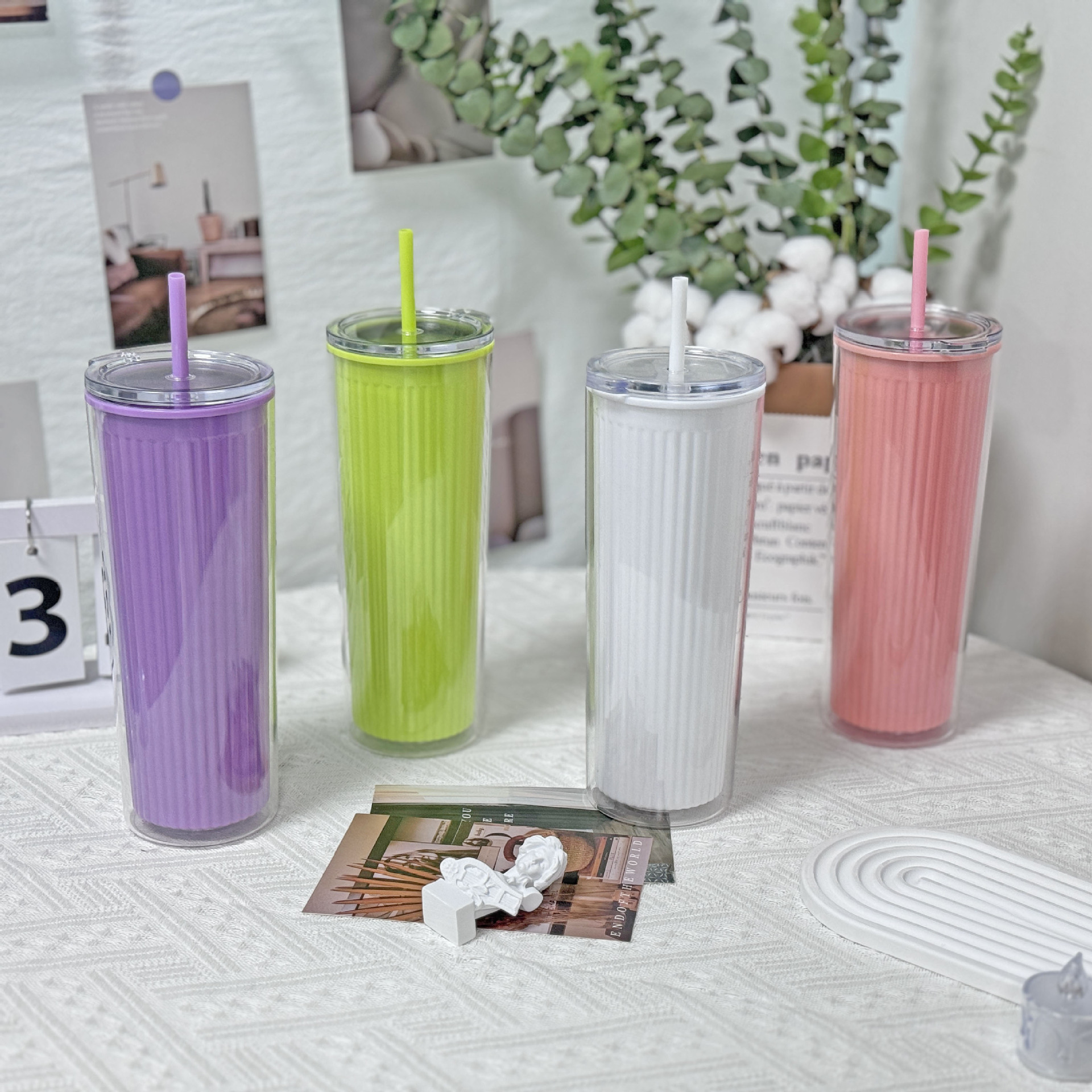 foreign trade new vertical straight cup summer good-looking girls double plastic straw cup insert paper large capacity couple's cups