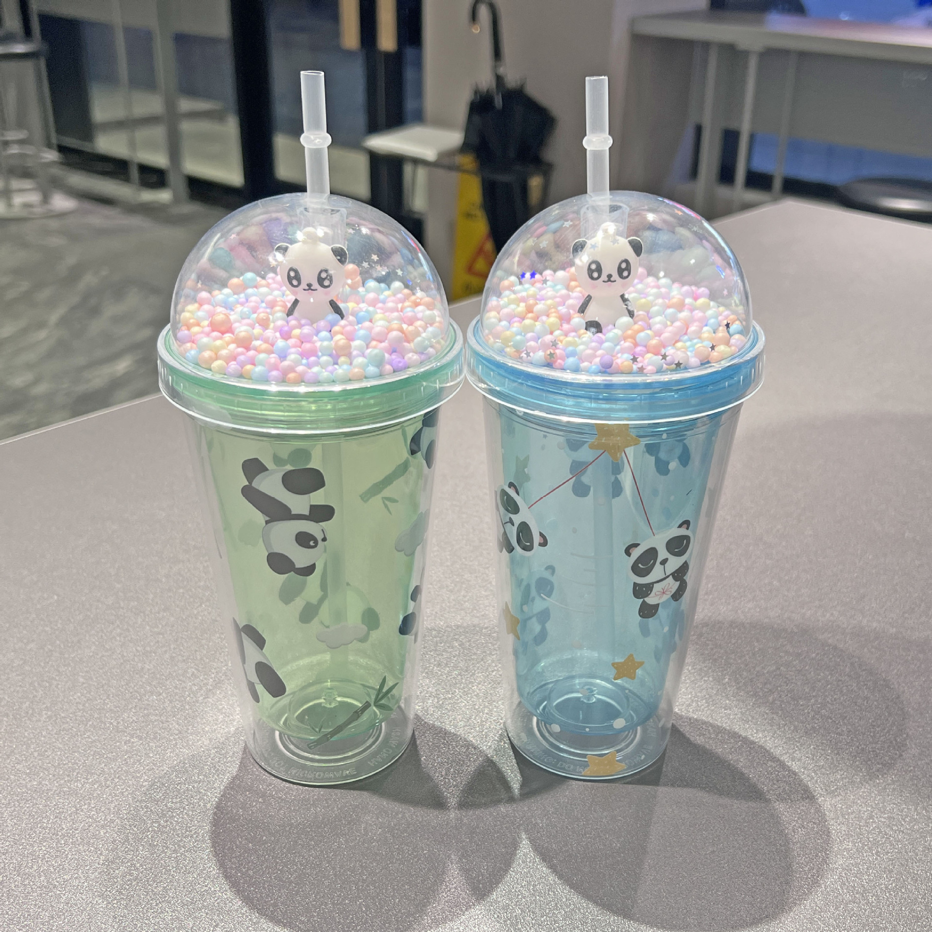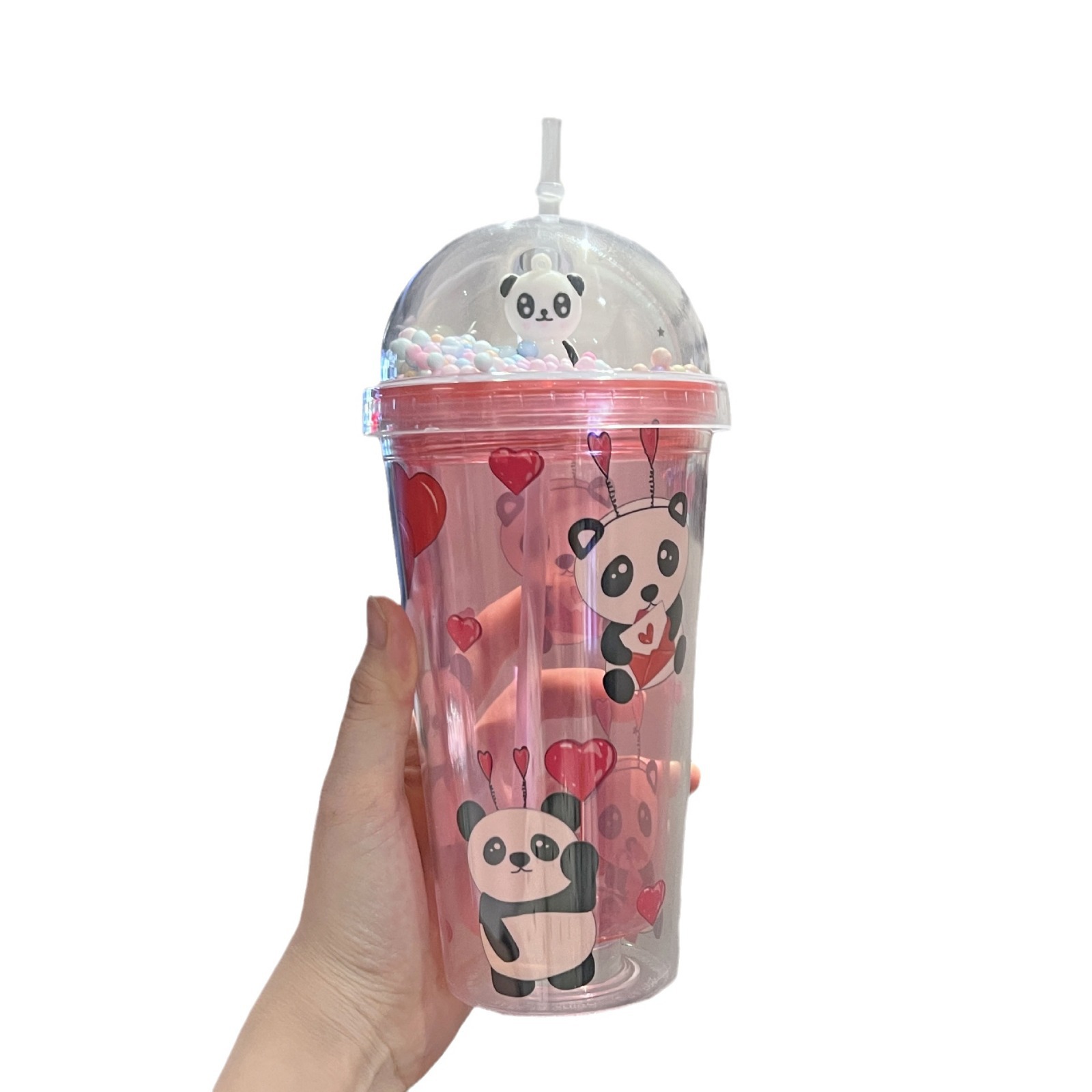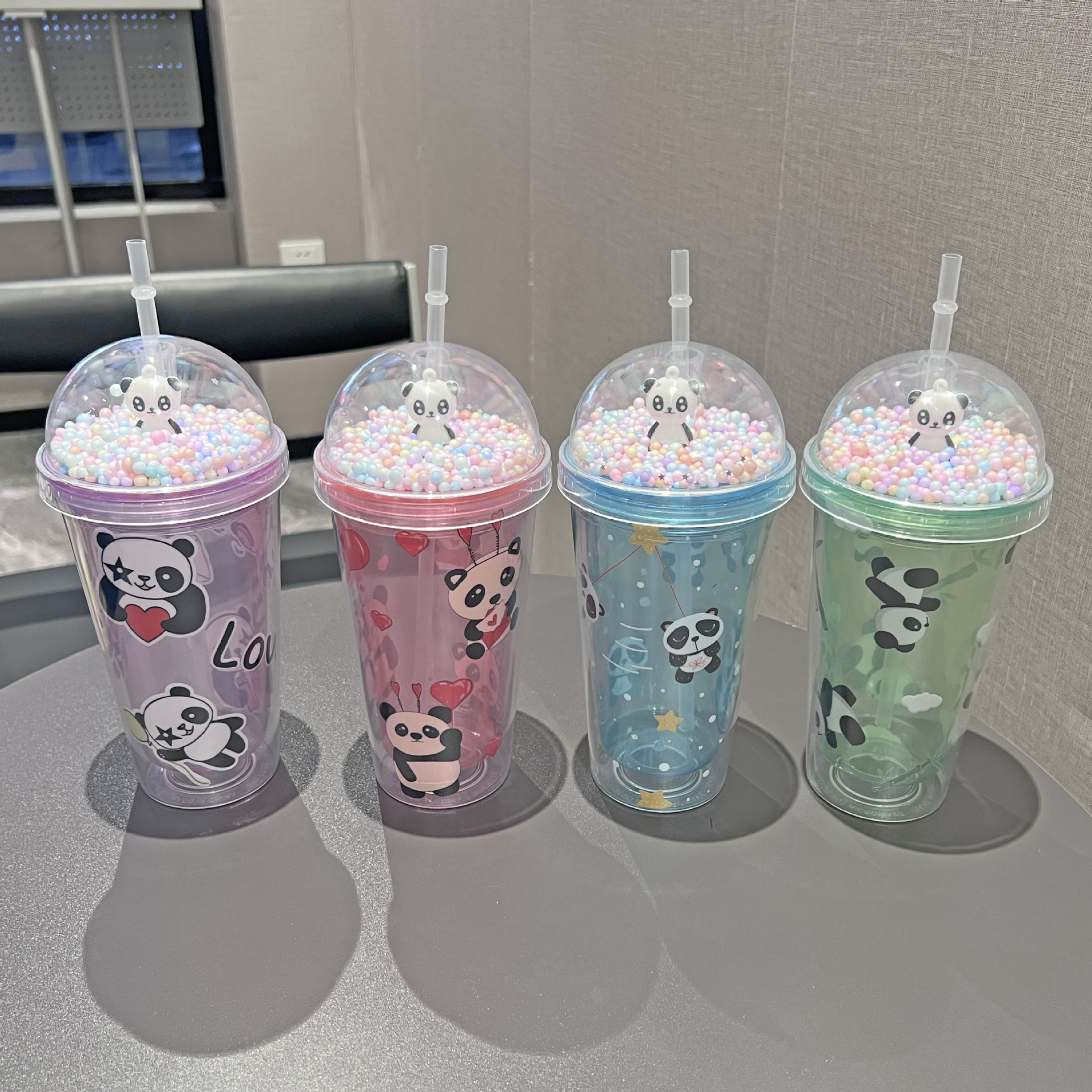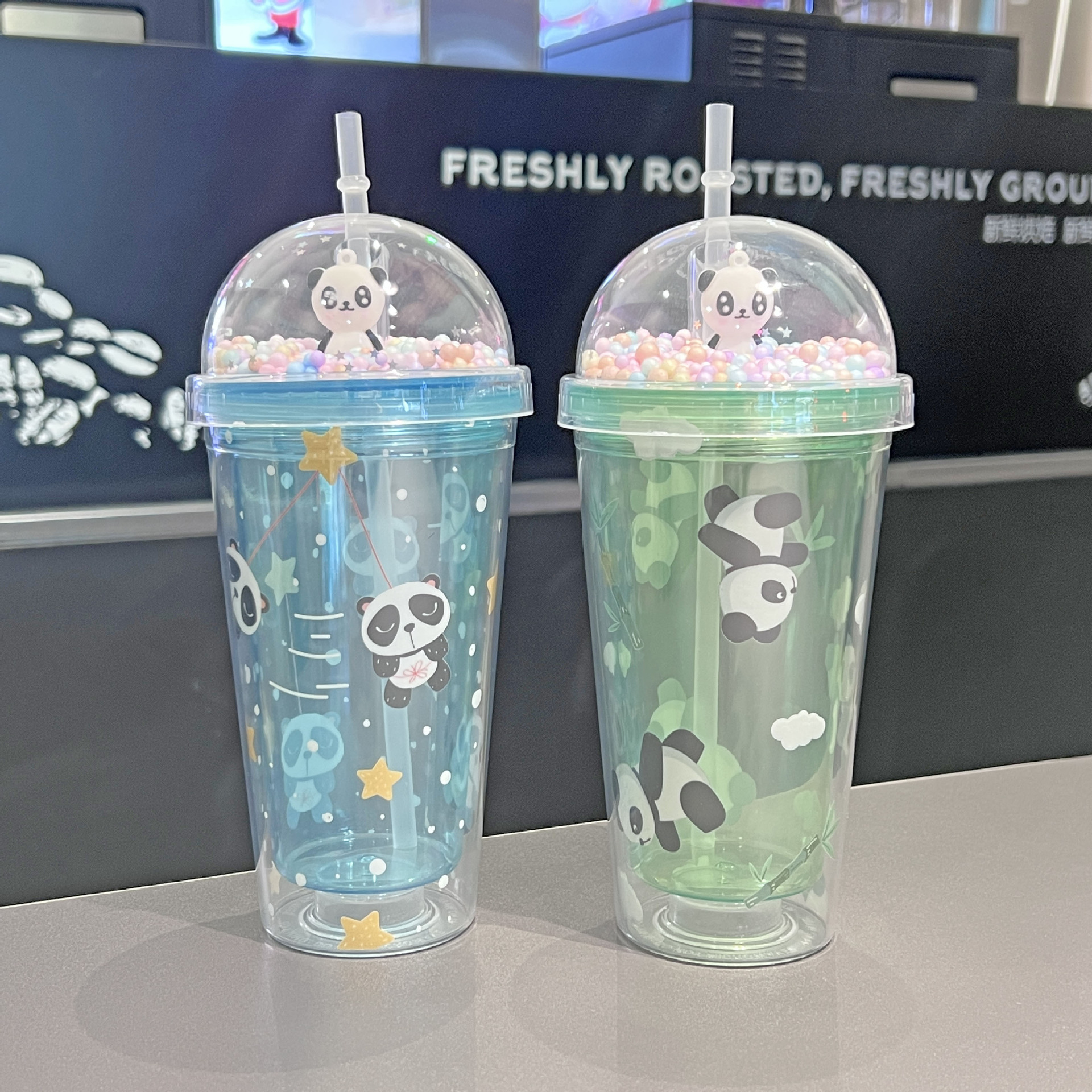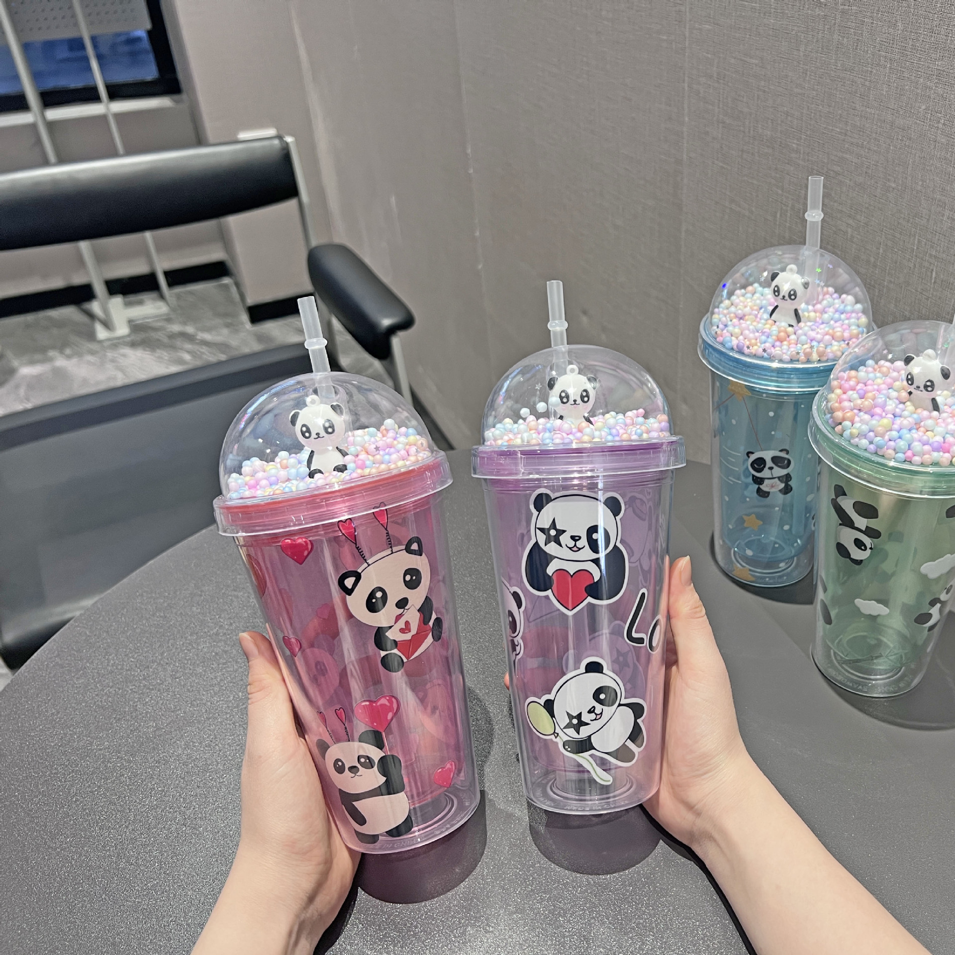 cross-border new arrival panda water cup double-layer ice crack crushed ice cup plastic cup wholesale large capacity cartoon portable straw cup