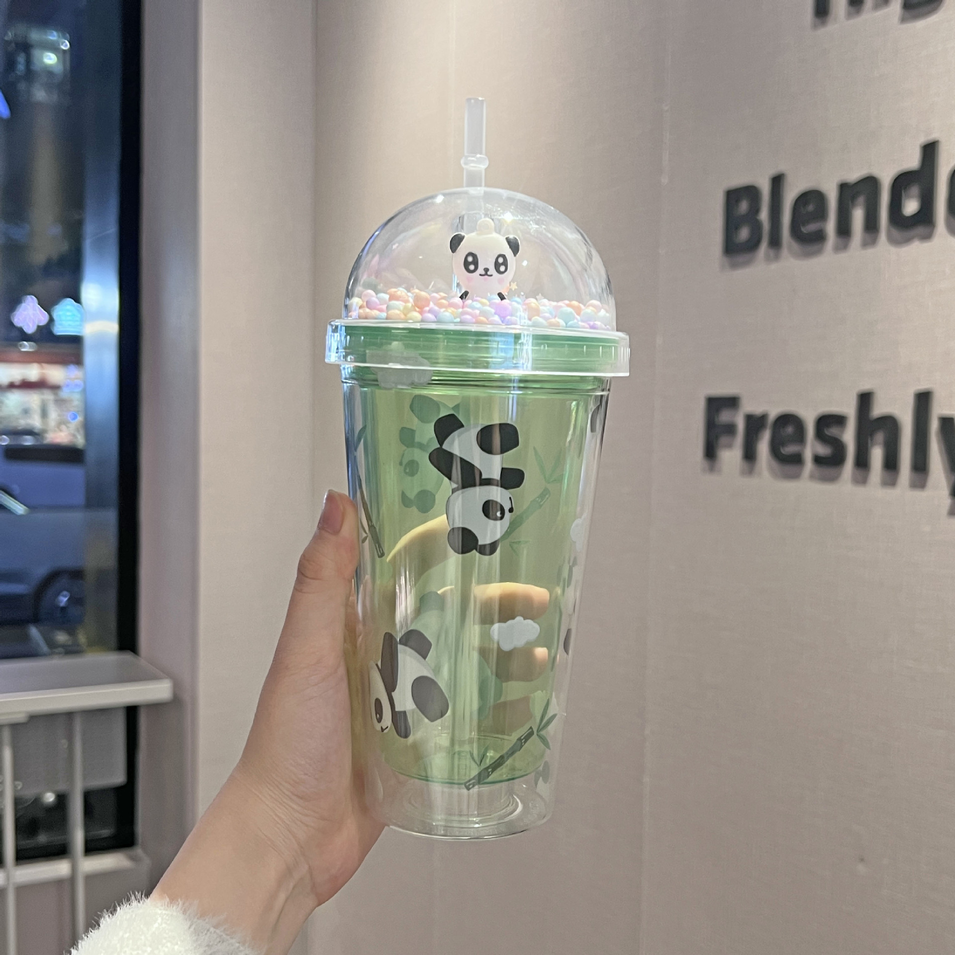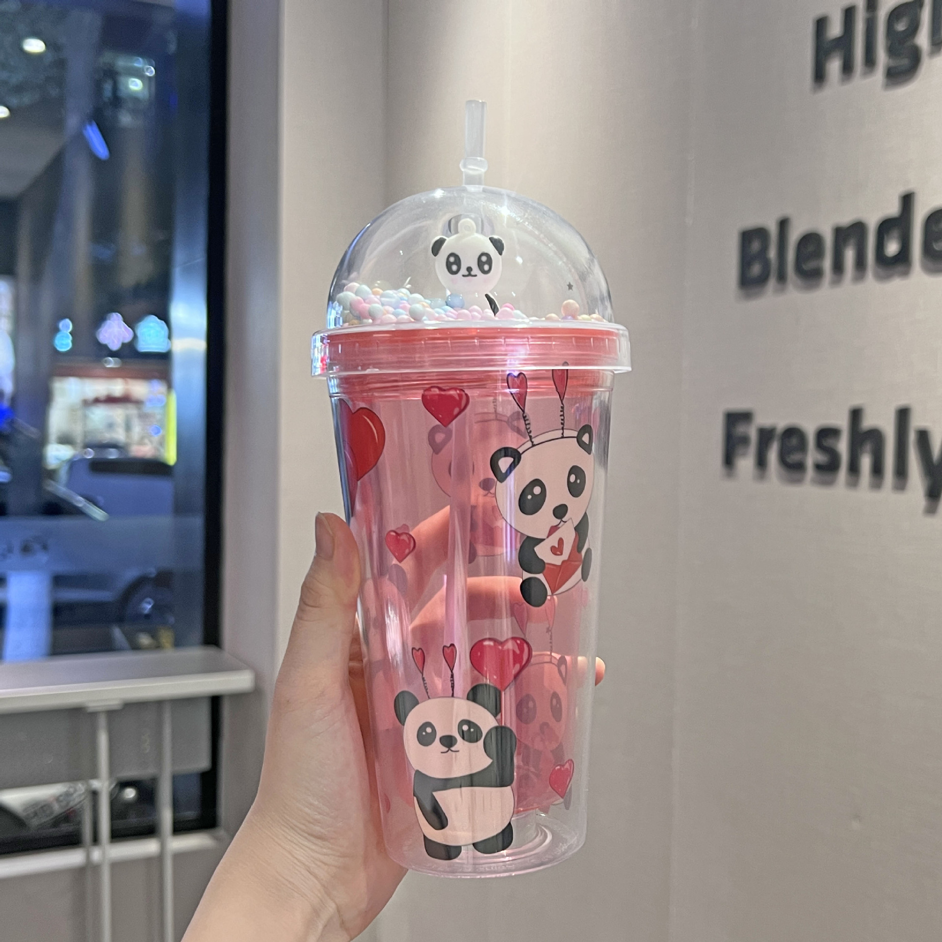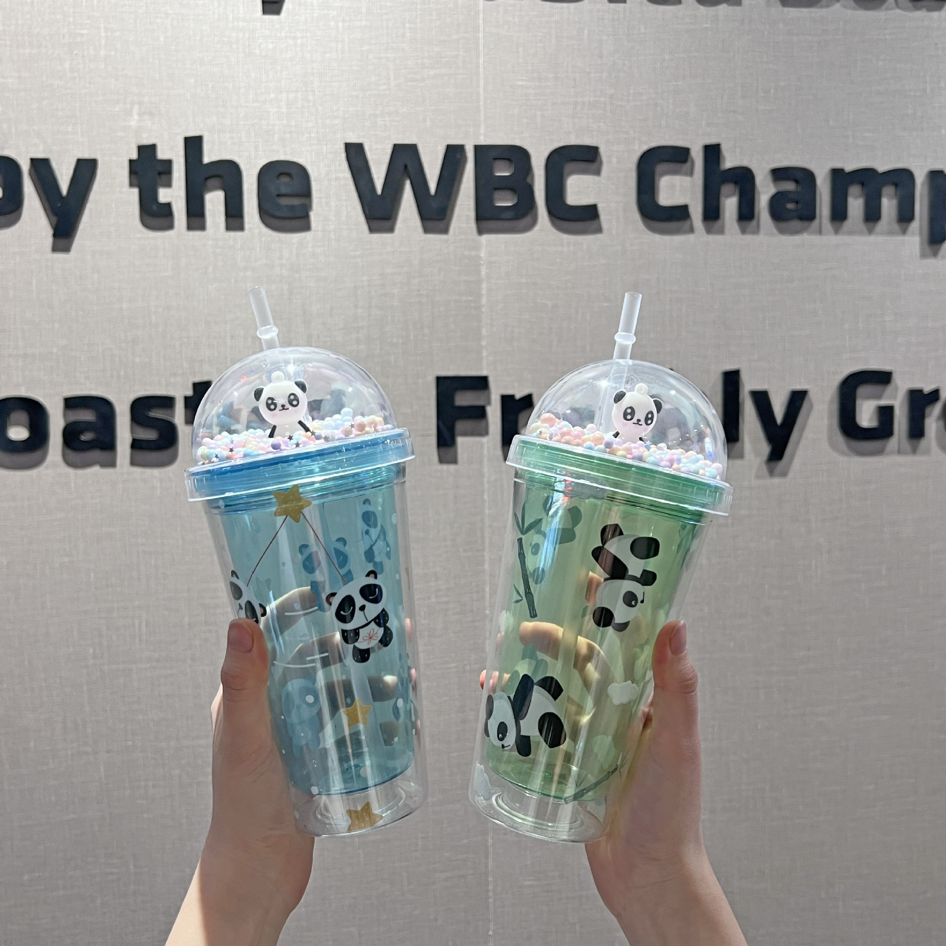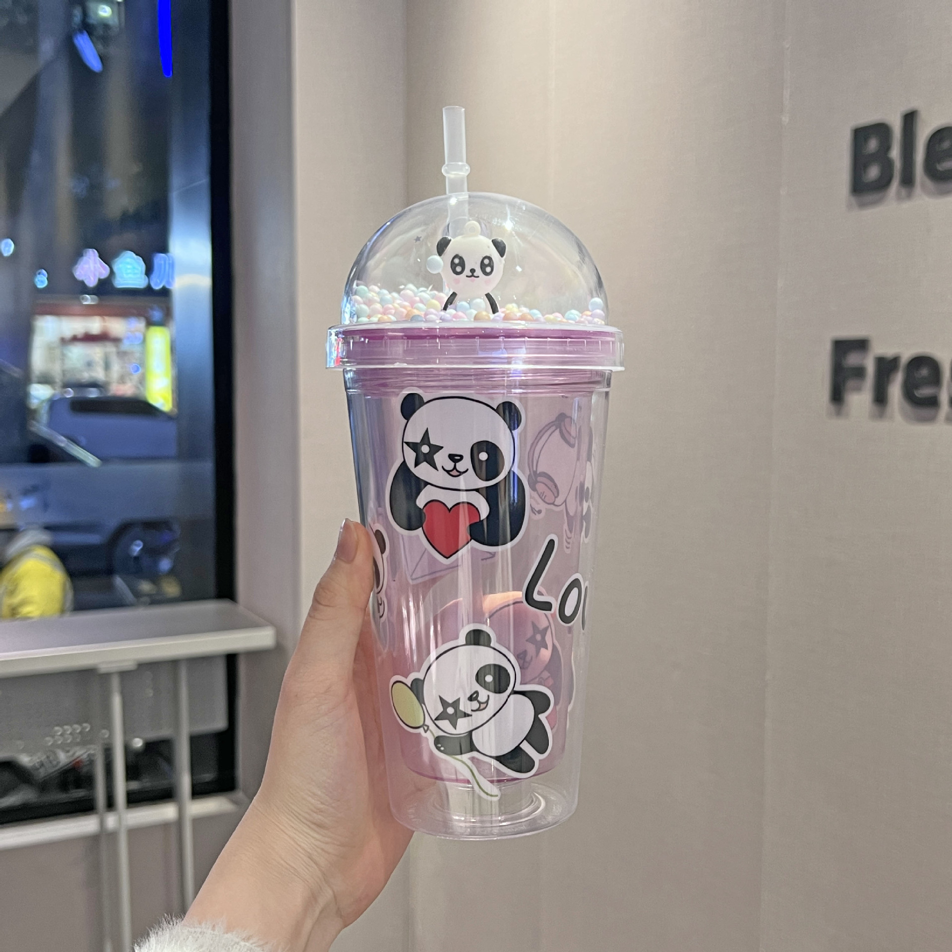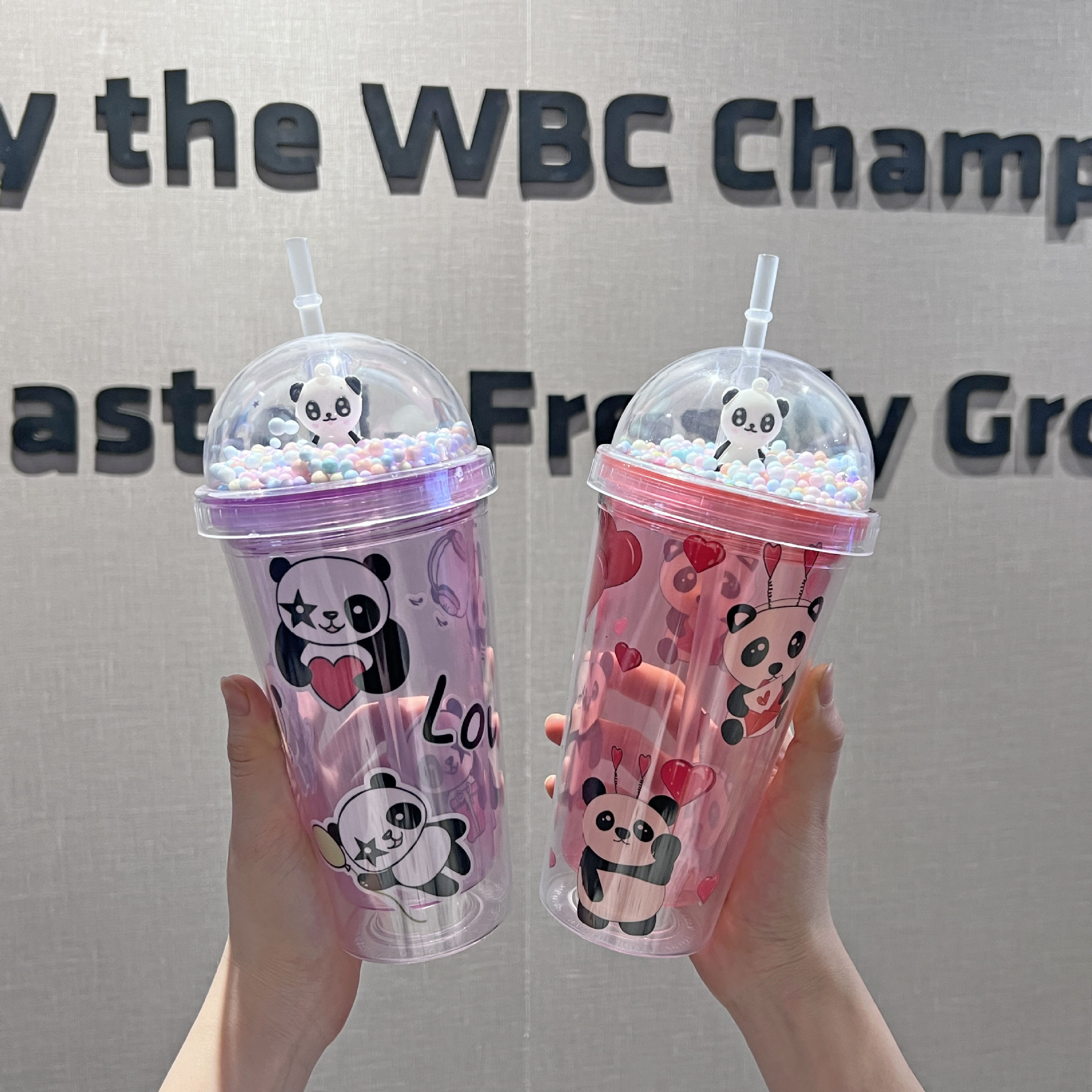 cross-border new arrival panda water cup double-layer ice crack crushed ice cup plastic cup wholesale large capacity cartoon portable straw cup