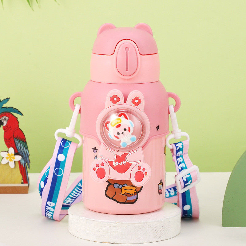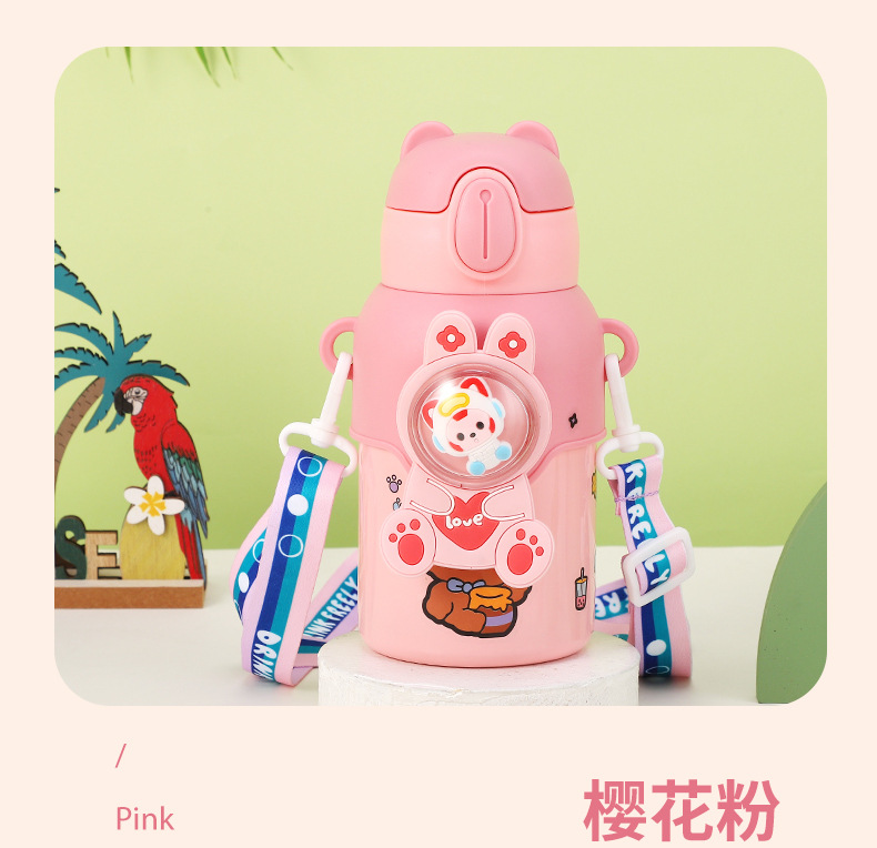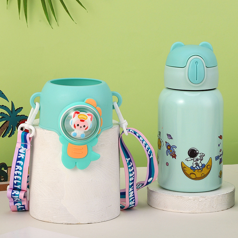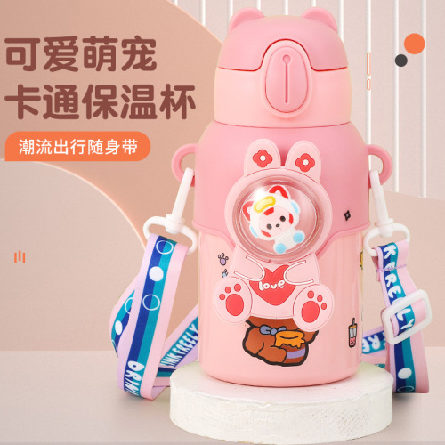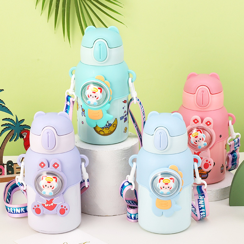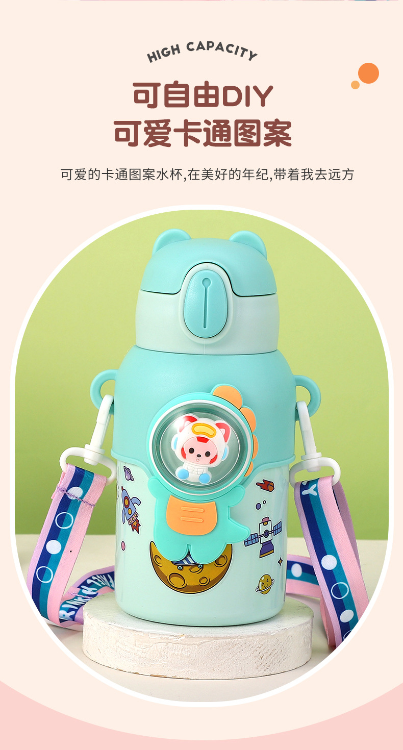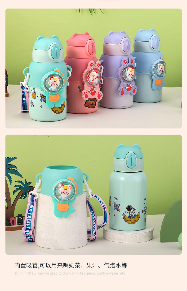 316 stainless steel cup with straw children's thermos mug kindergarten baby school cute water cup outdoor sports bottle