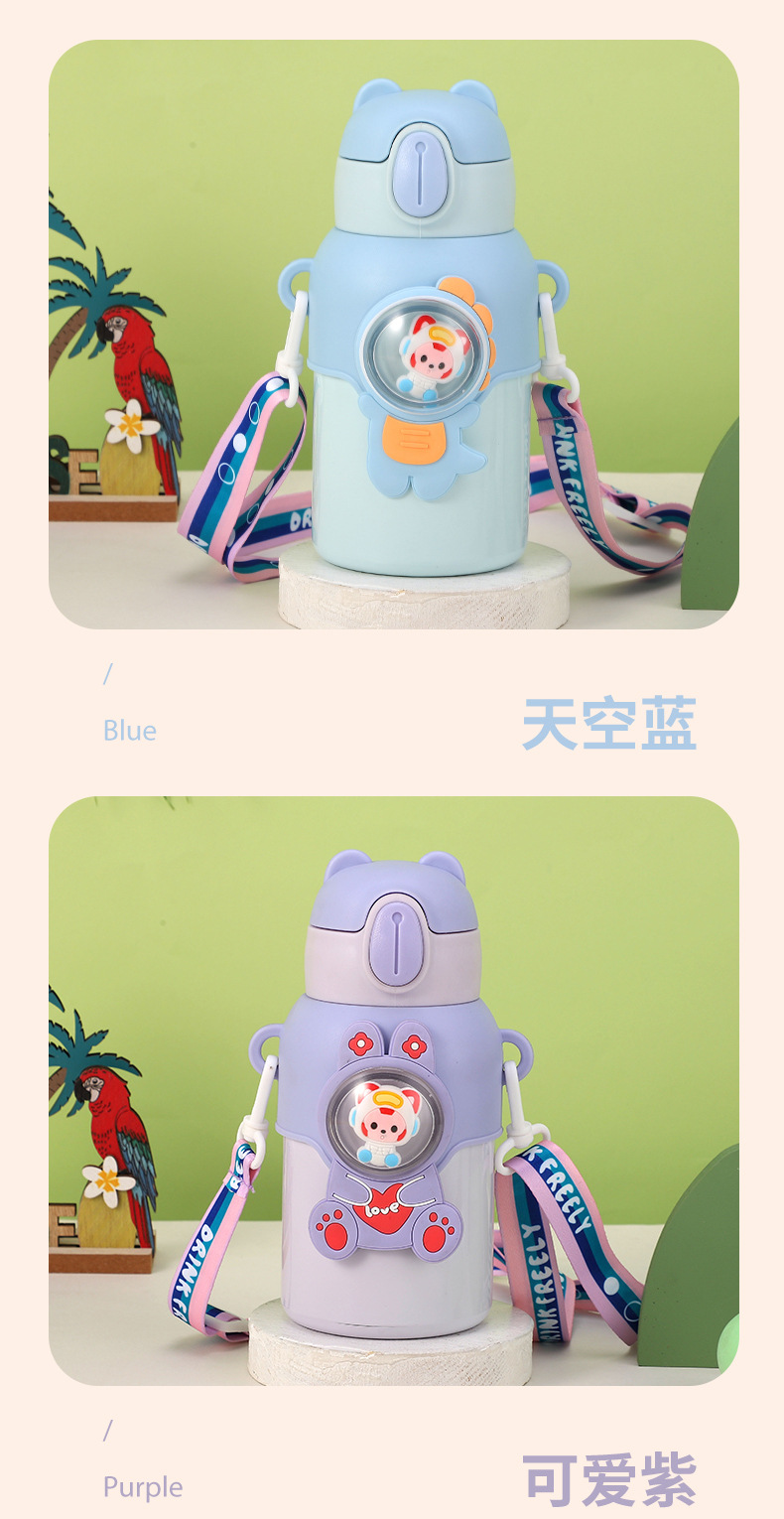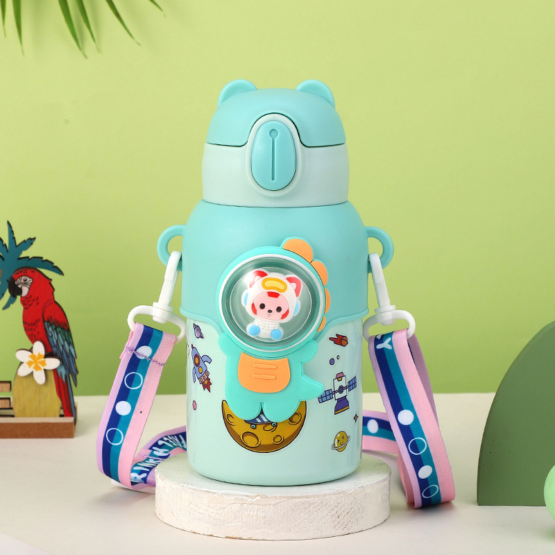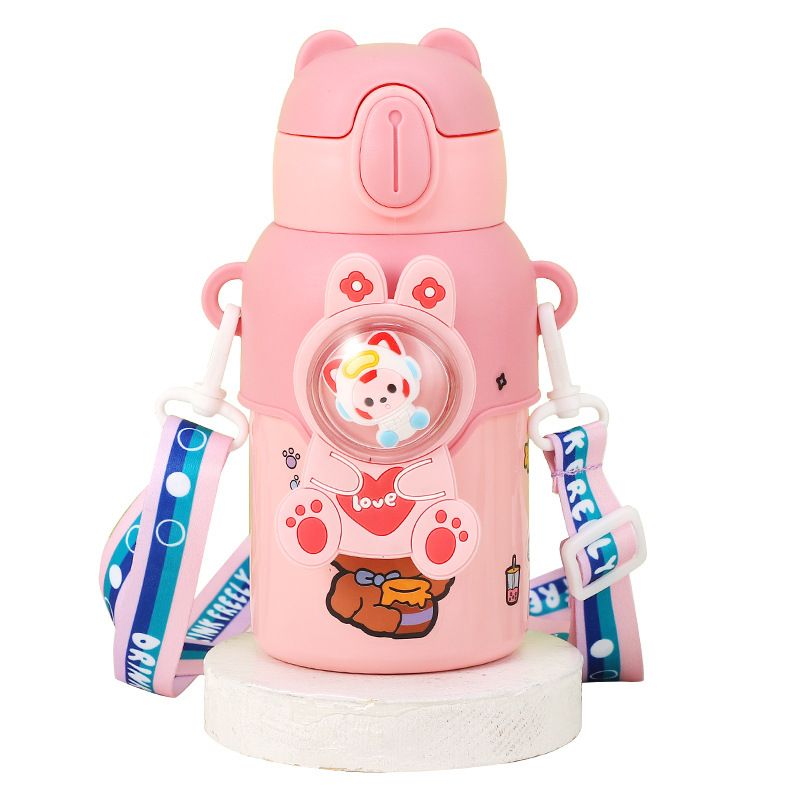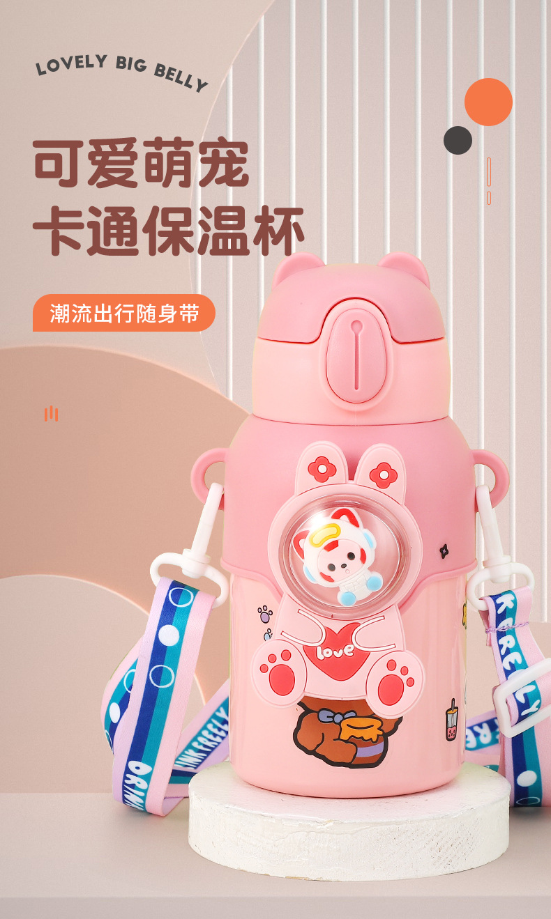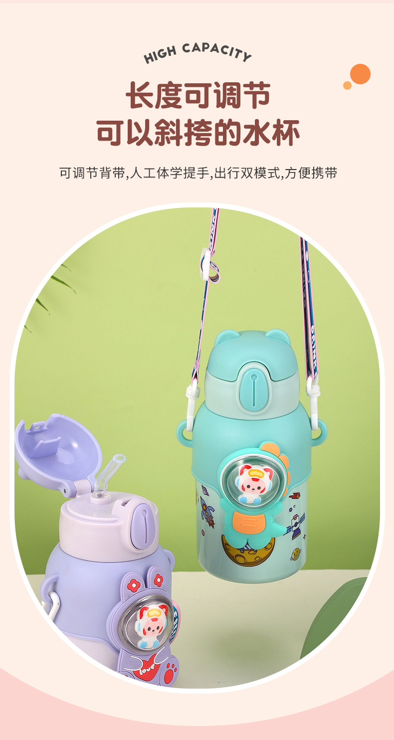 316 stainless steel cup with straw children's thermos mug kindergarten baby school cute water cup outdoor sports bottle