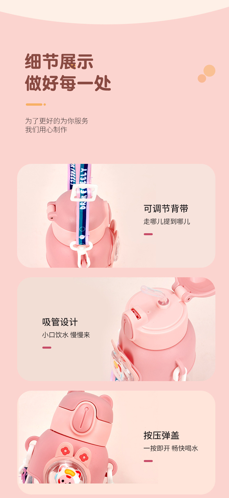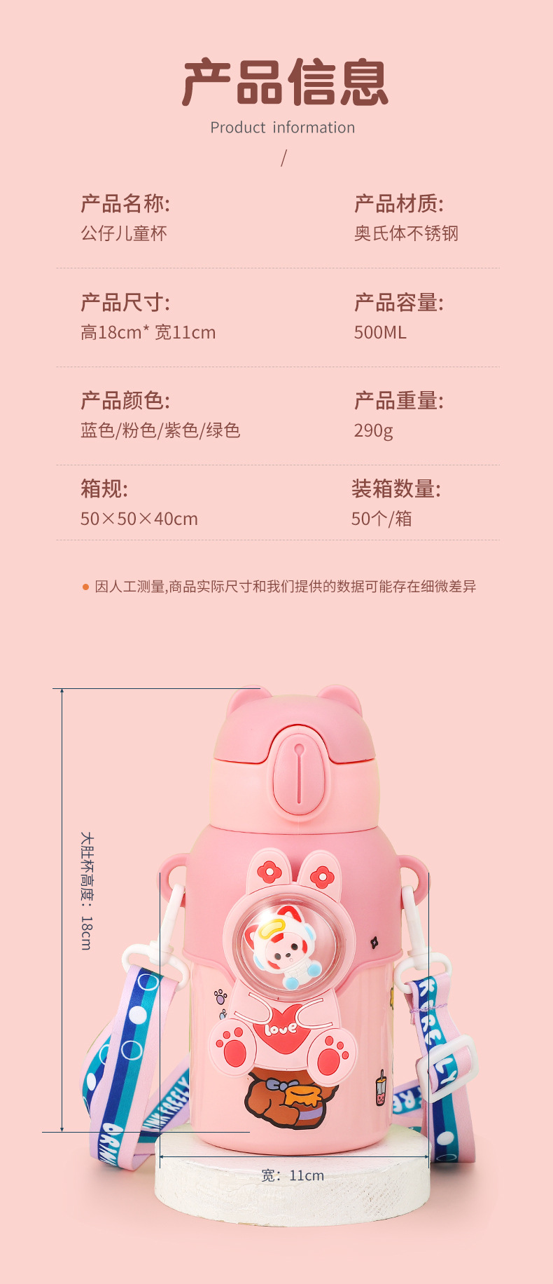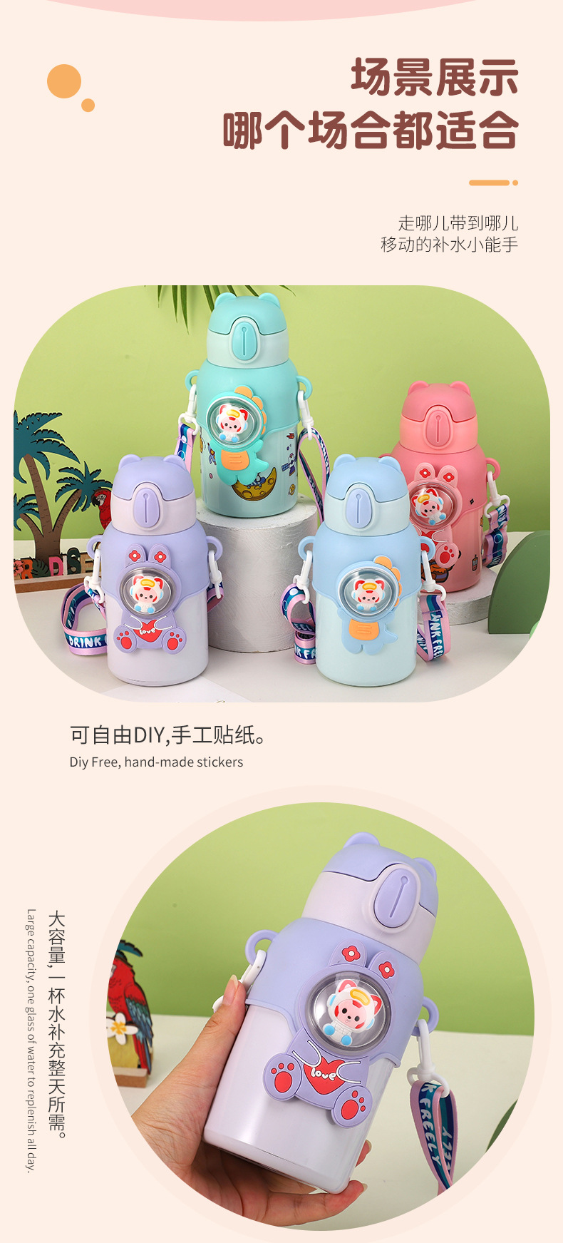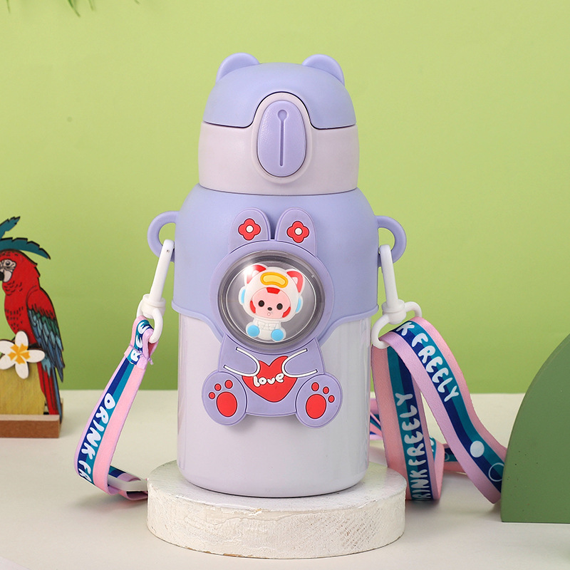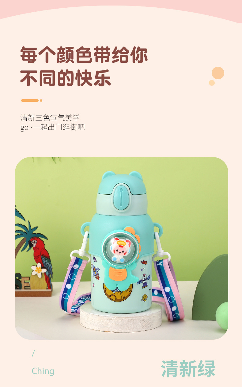 316 stainless steel cup with straw children's thermos mug kindergarten baby school cute water cup outdoor sports bottle