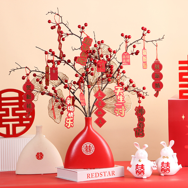 (plastic) red bottle + hollyberry + ginkgo leaf [send ornaments]]