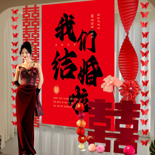 big hanging cloth, we are married