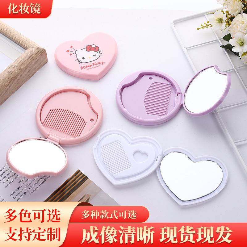 korean simple love mirror and comb round mirror wholesale folding makeup mirror cute portable mini student small mirror