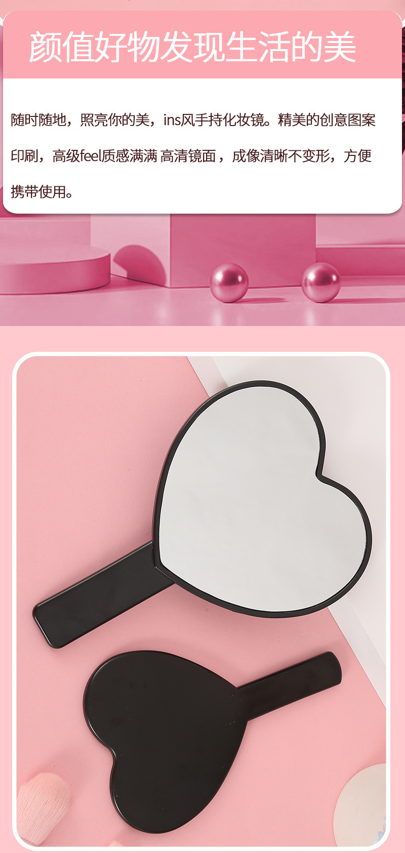 can customize handle mirror printable logo at any time makeup mirror cute portable small mirror advertising plastic