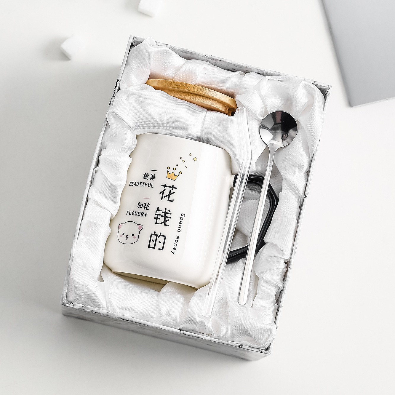 money [cup + ceramic cover + spoon + straw + gift box]]