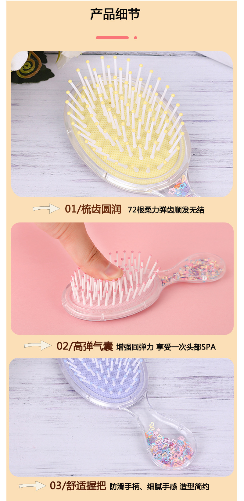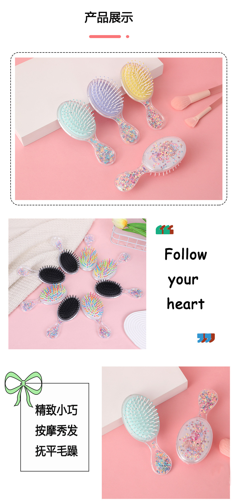 special massage meridian airbag comb creative candy color cartoon young girl small comb cute girl heart massage comb